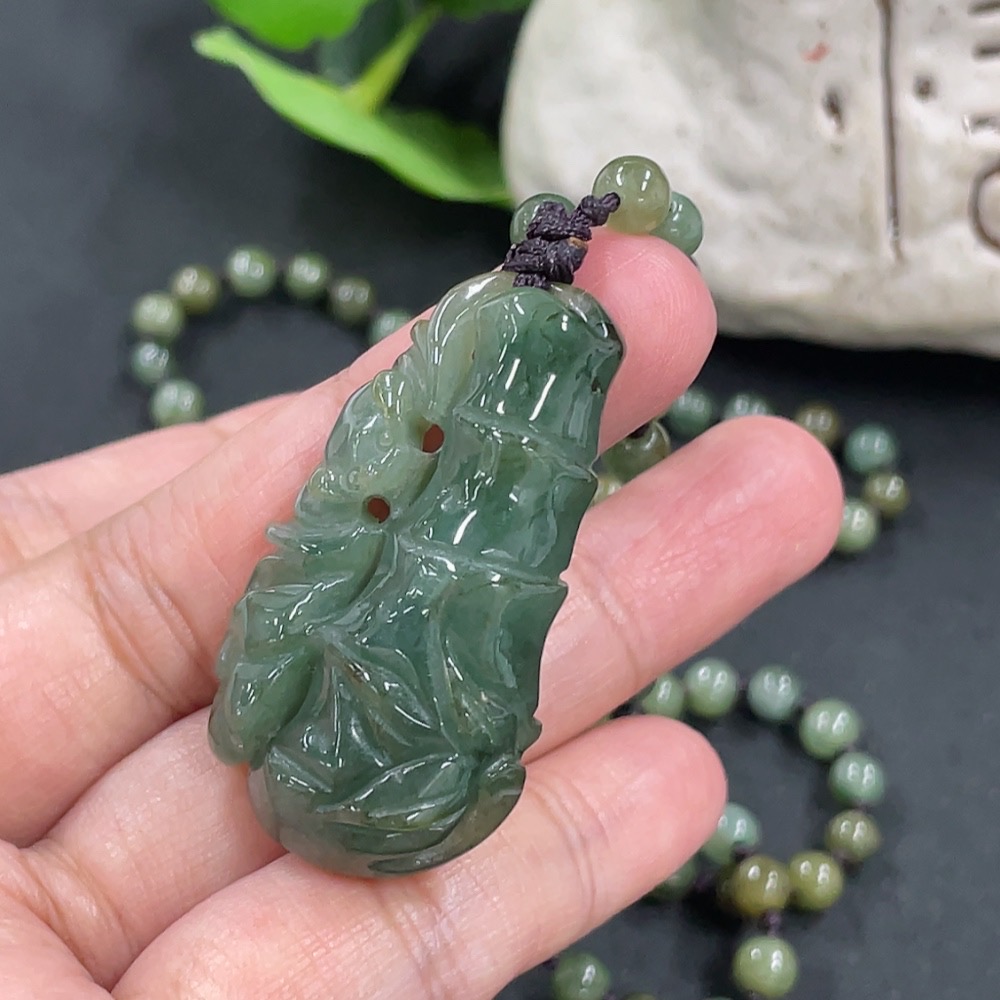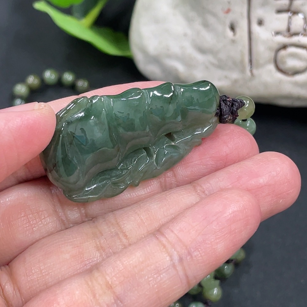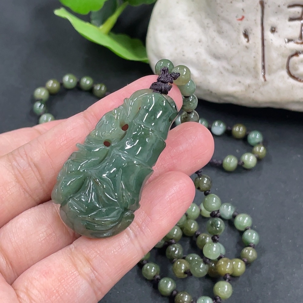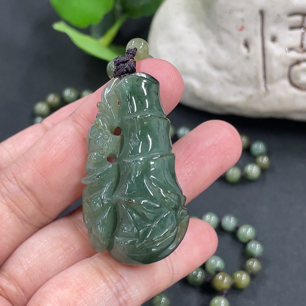 Jadeite Bamboo Pendant with Chain, approx. 5.3mm, total weight approx. 36g