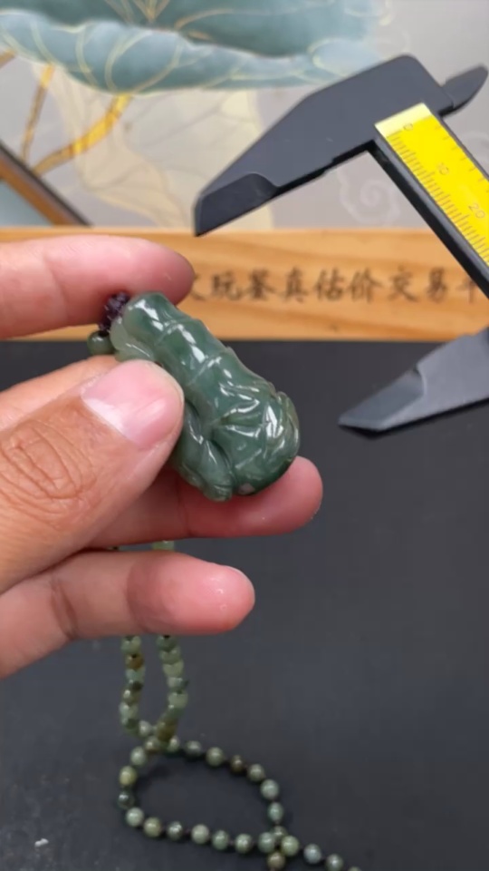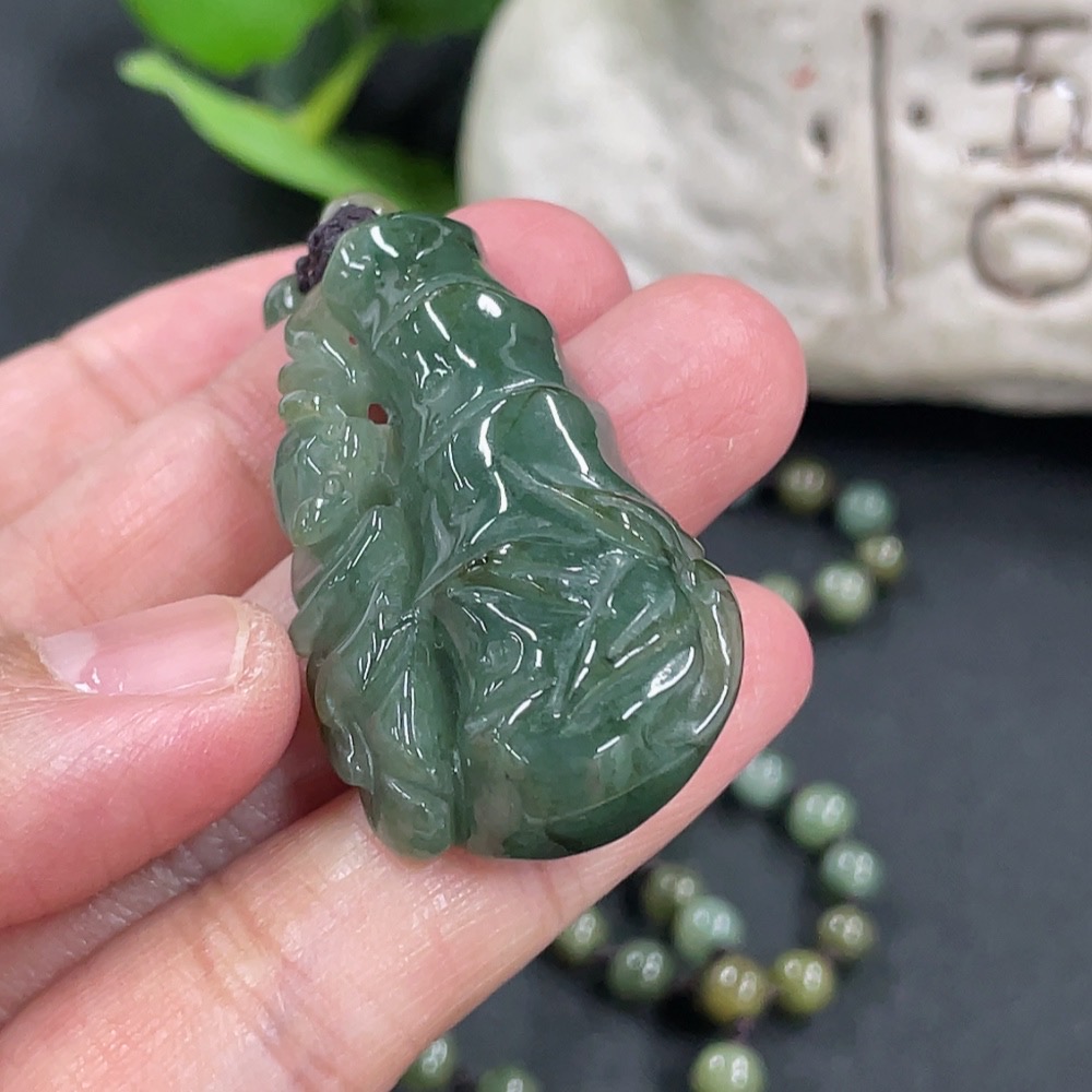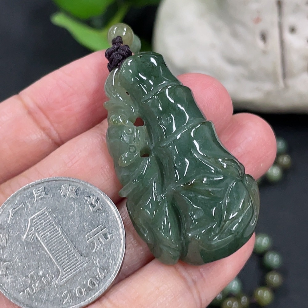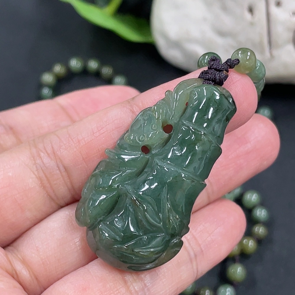Jadeite Bamboo Pendant with Chain, approx. 5.3mm, total weight approx. 36g