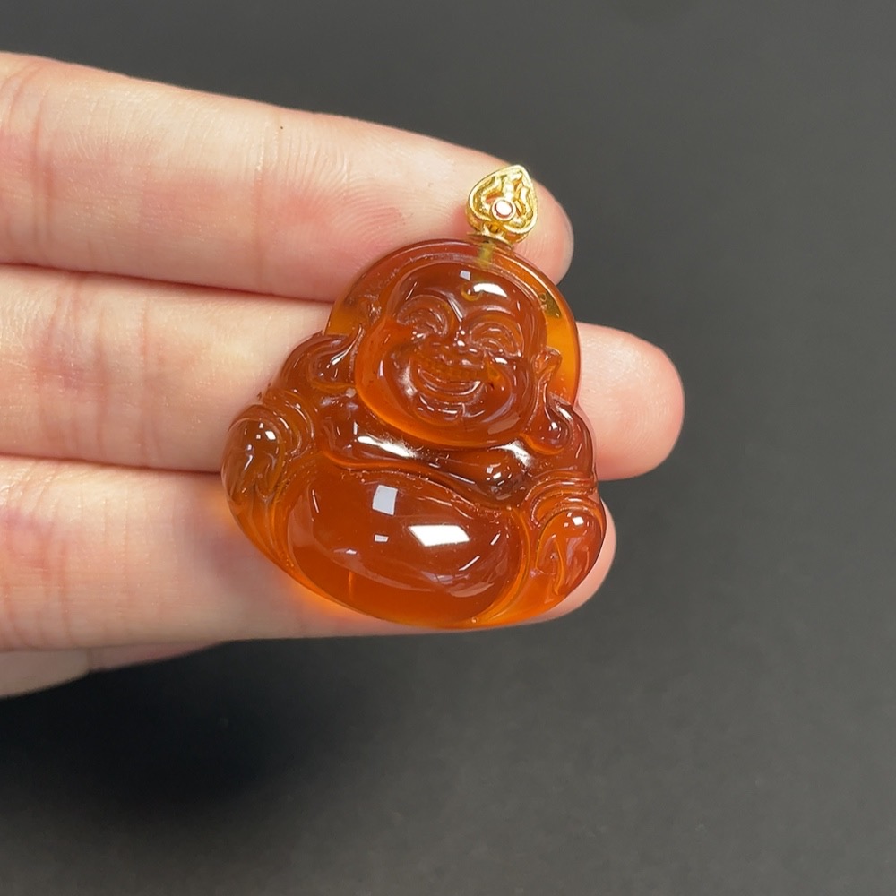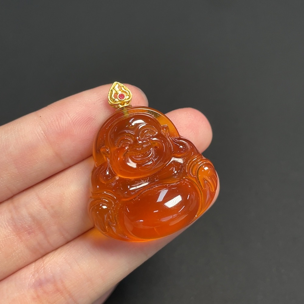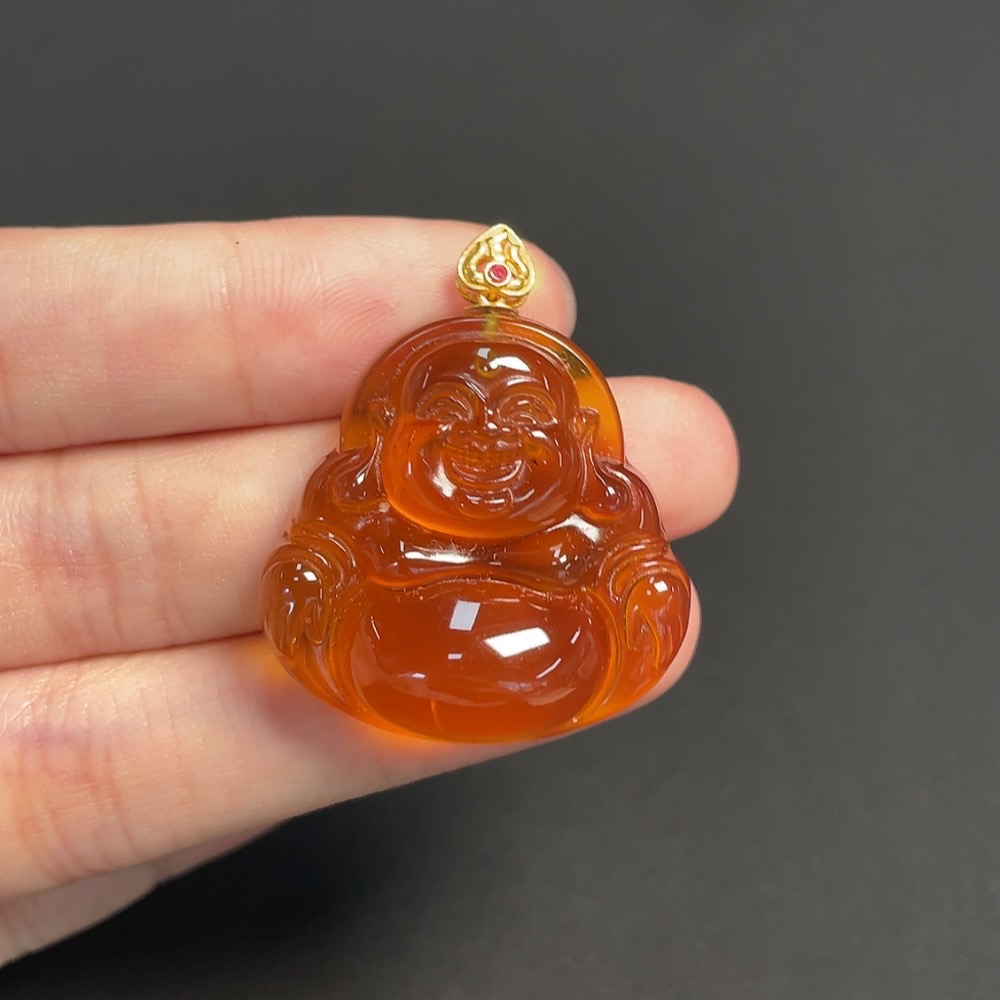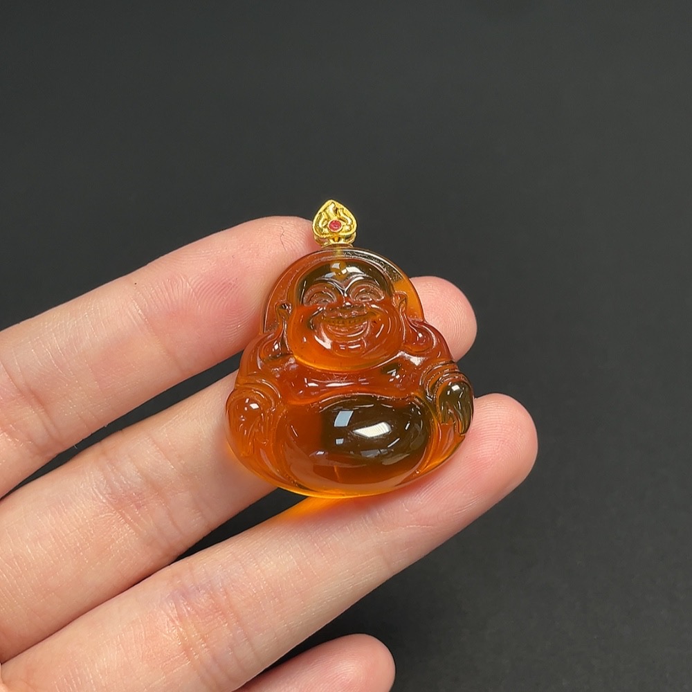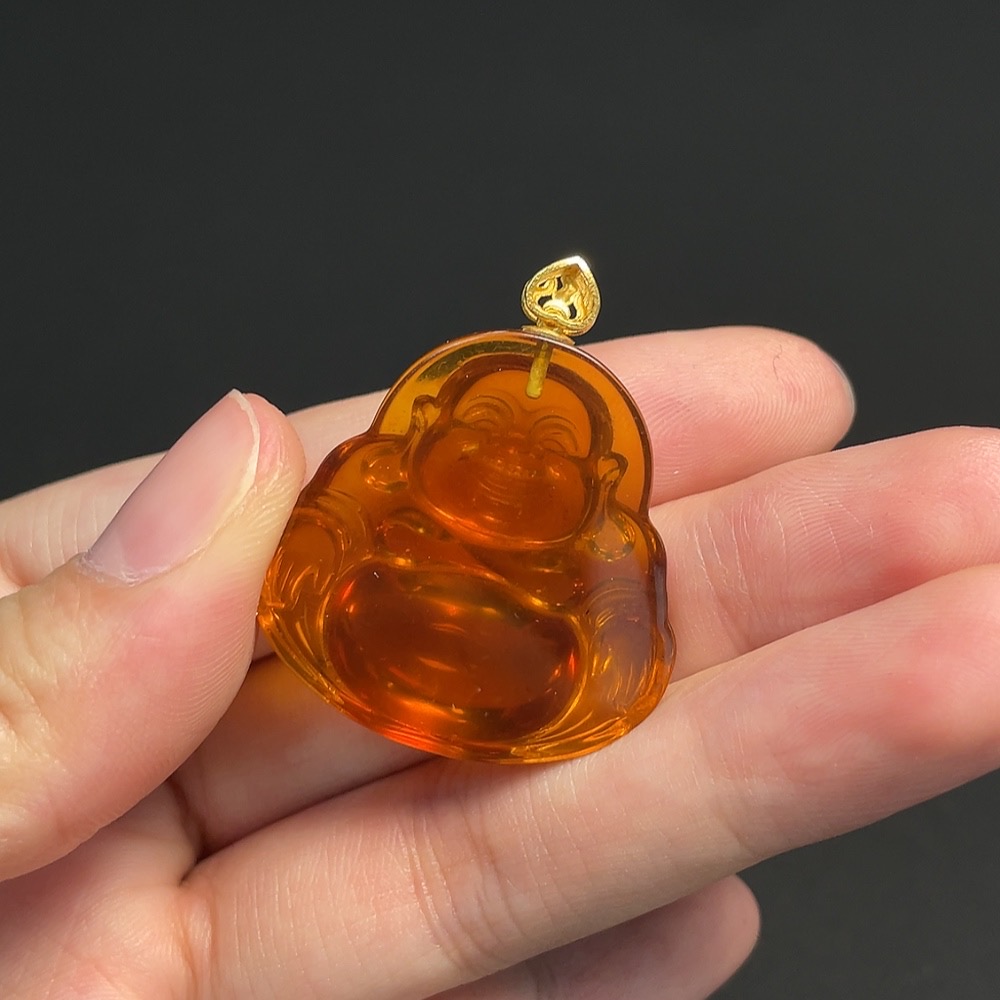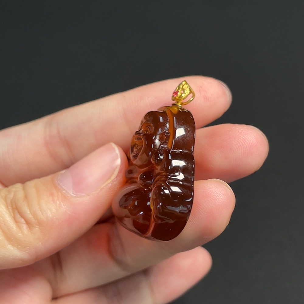 Amber and Beeswax Inlaid Pendant, 18K Gold, Total Weight Approximately 5.44g