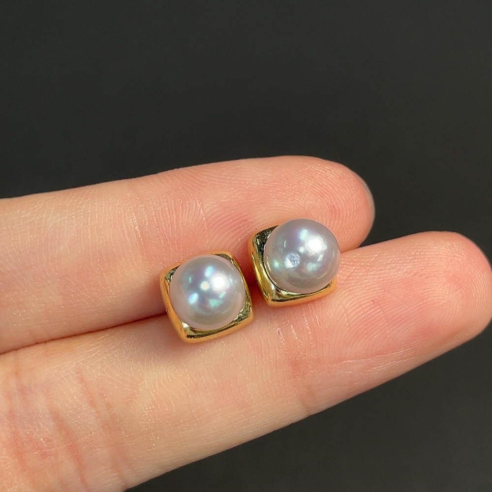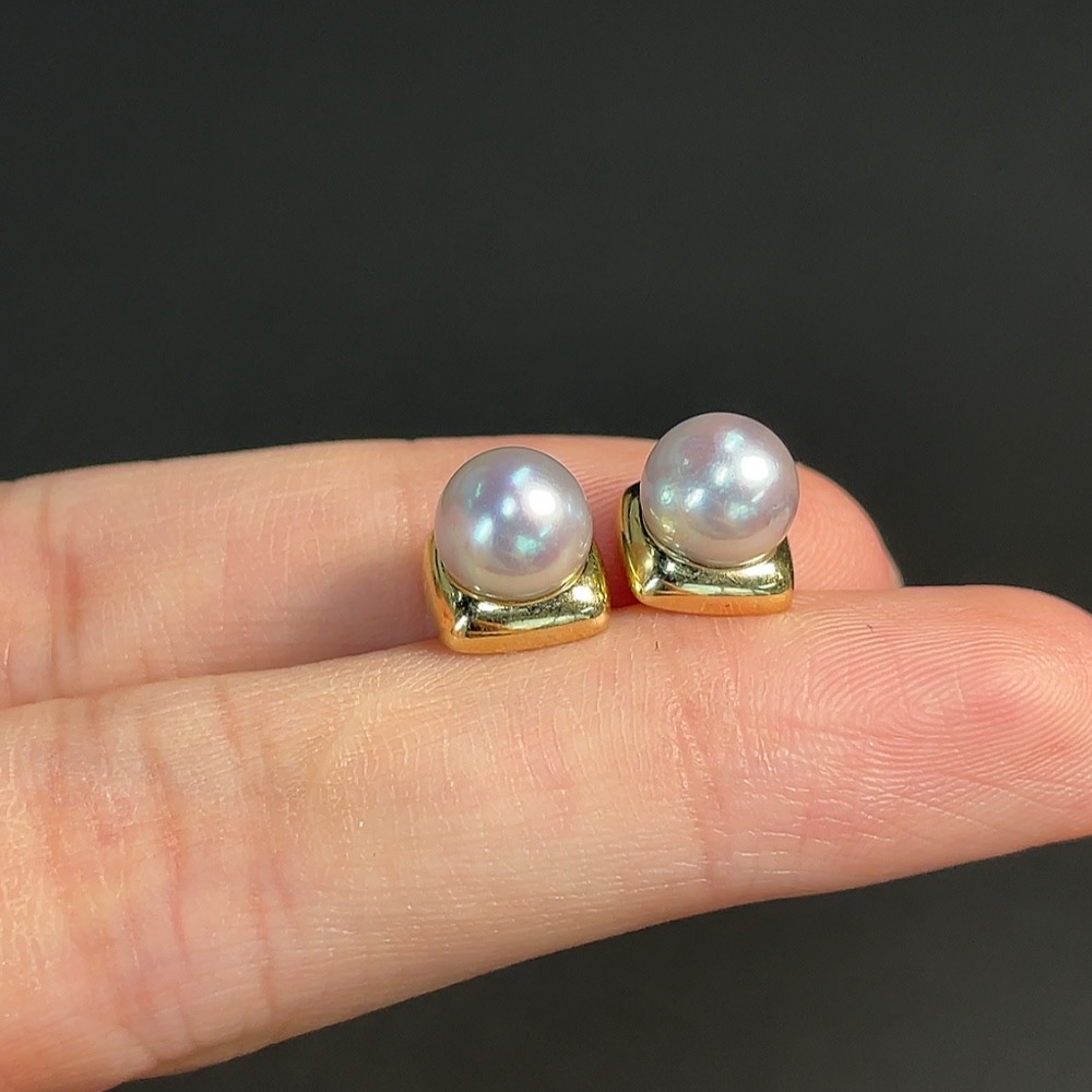 Seawater Pearl Stud Earrings Non-Gold Setting Approximately 7.1mm Total Weight About 2.53g Color Origin Undetermined