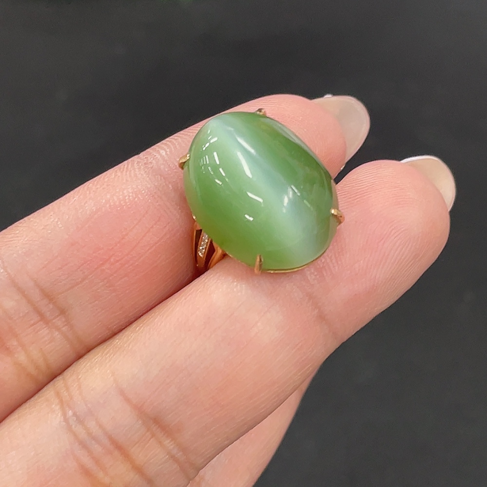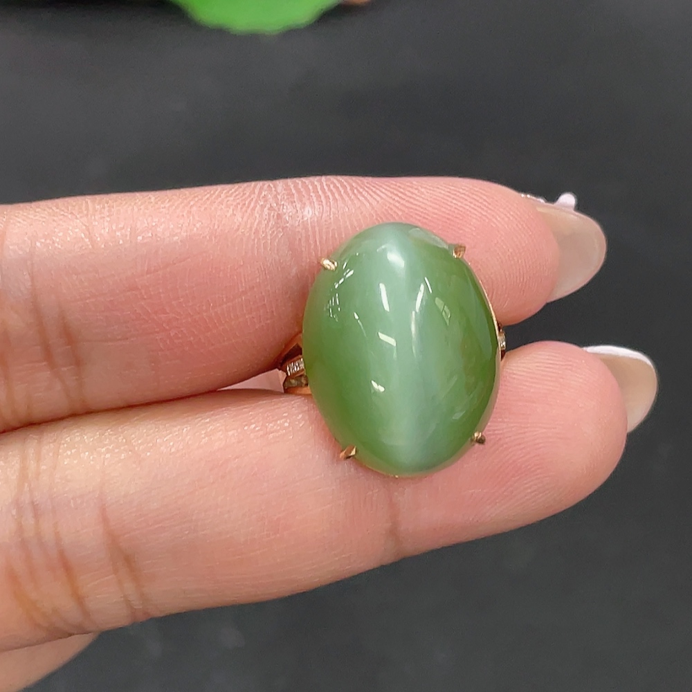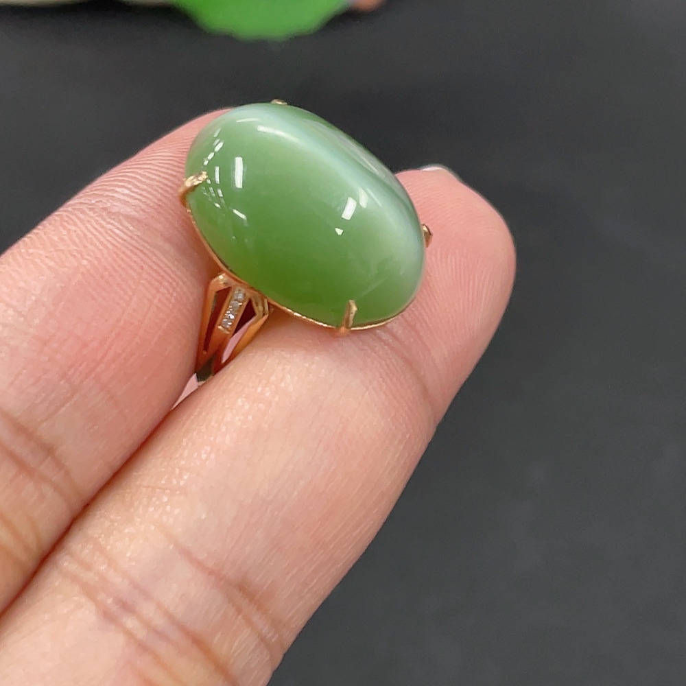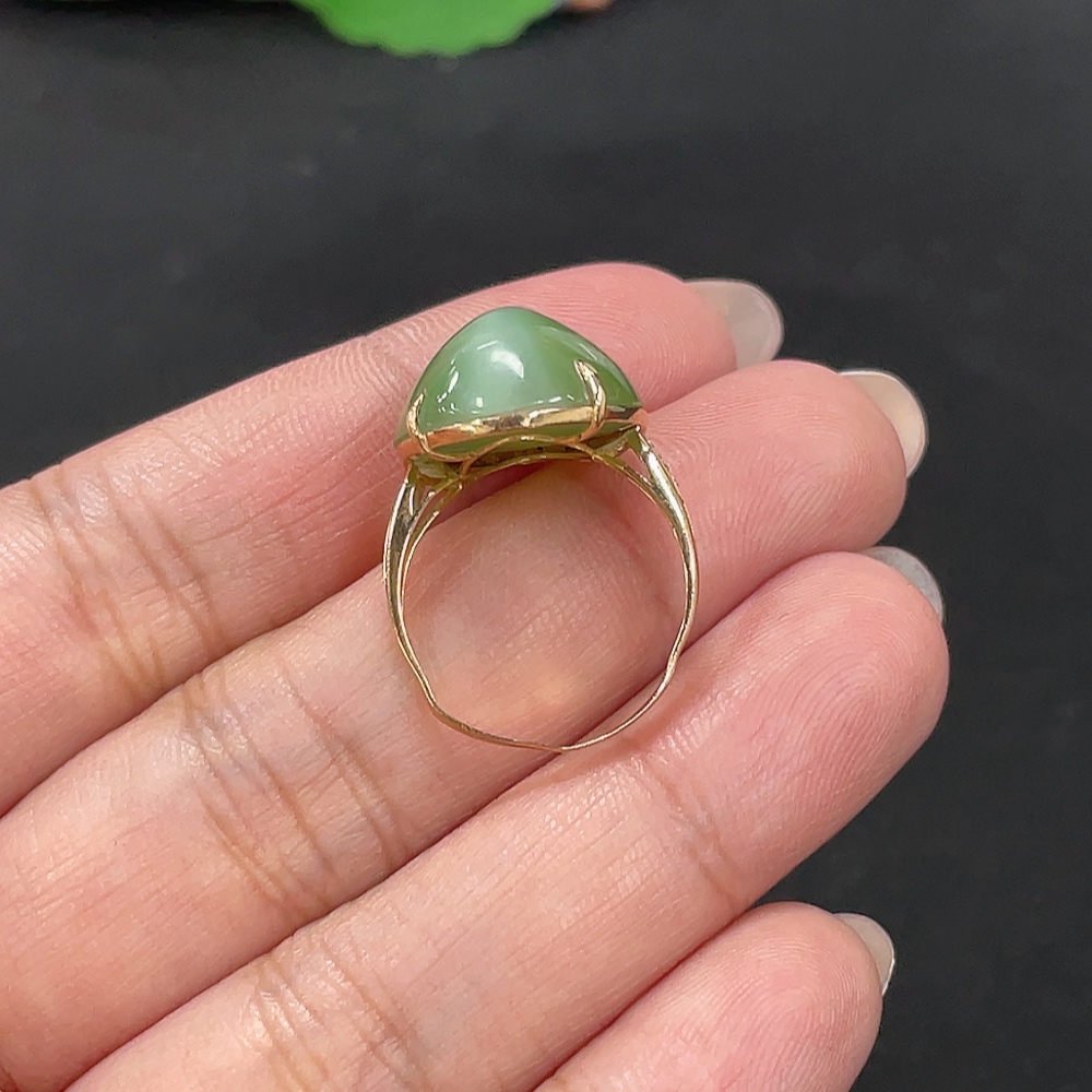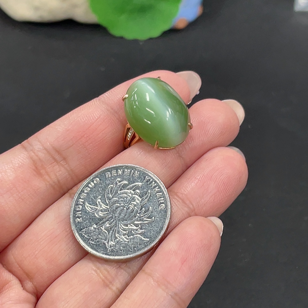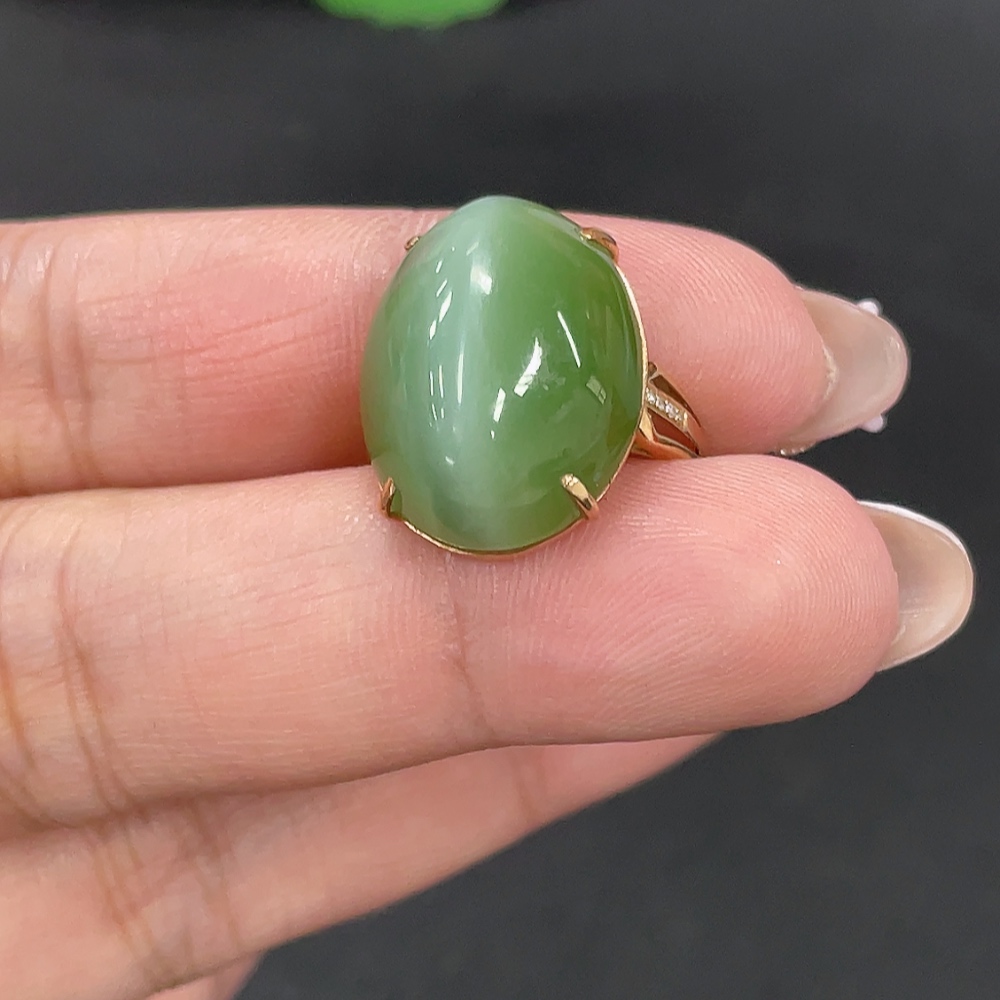 Hetian Jade Inlaid Adjustable Ring, Total Weight Approx. 4.1g, Non-Gold