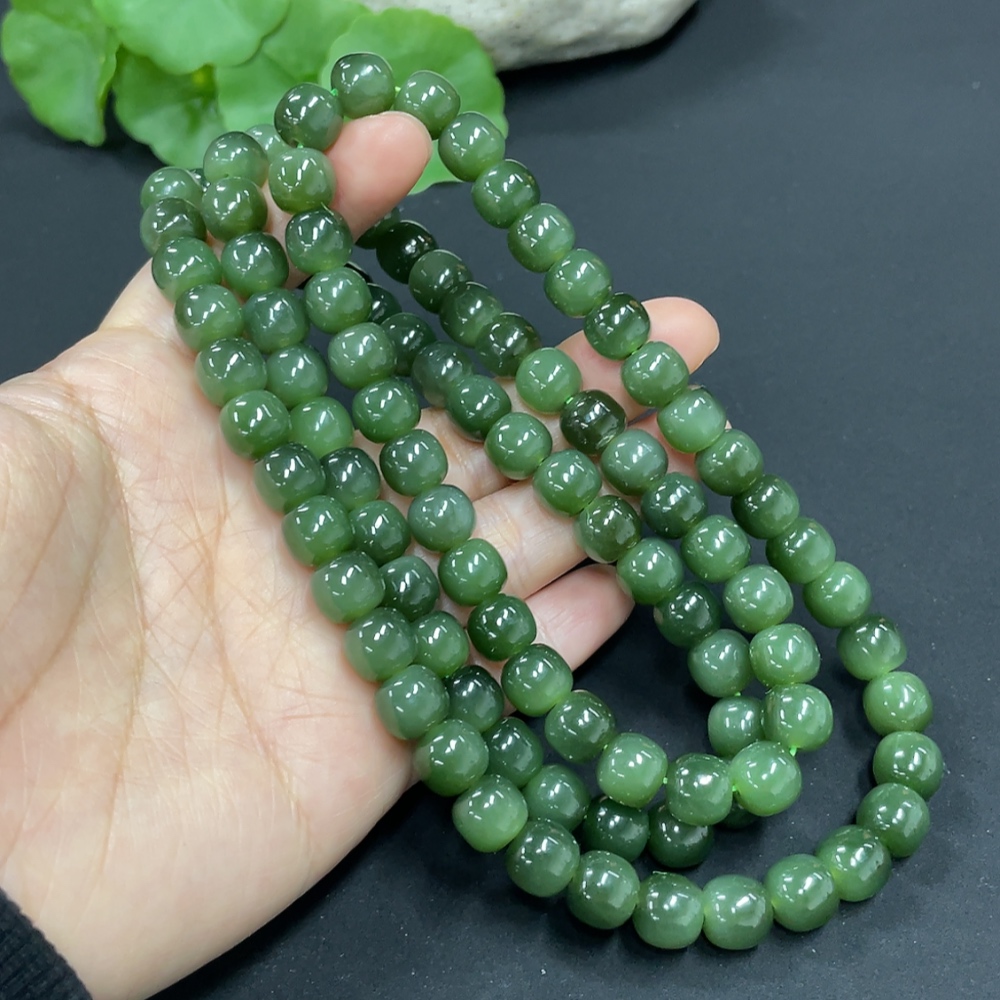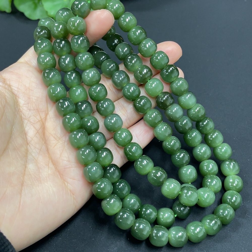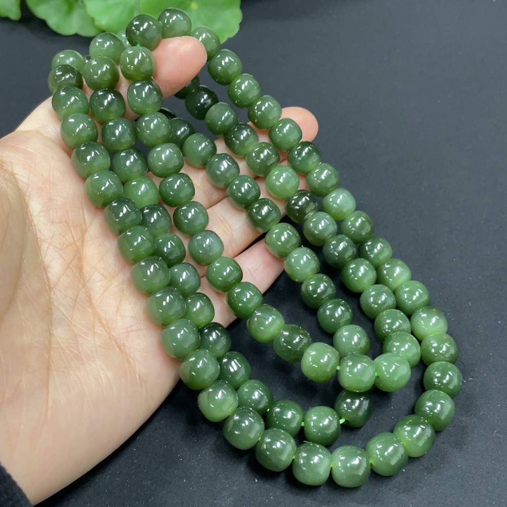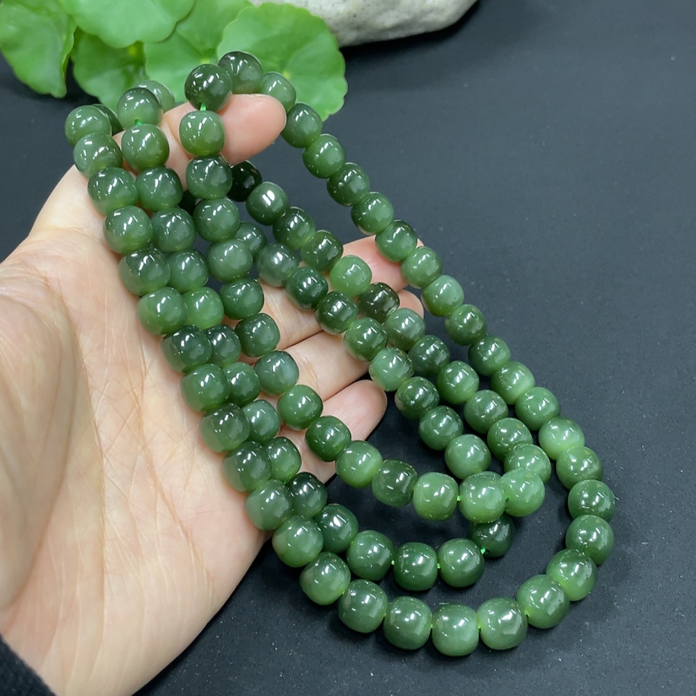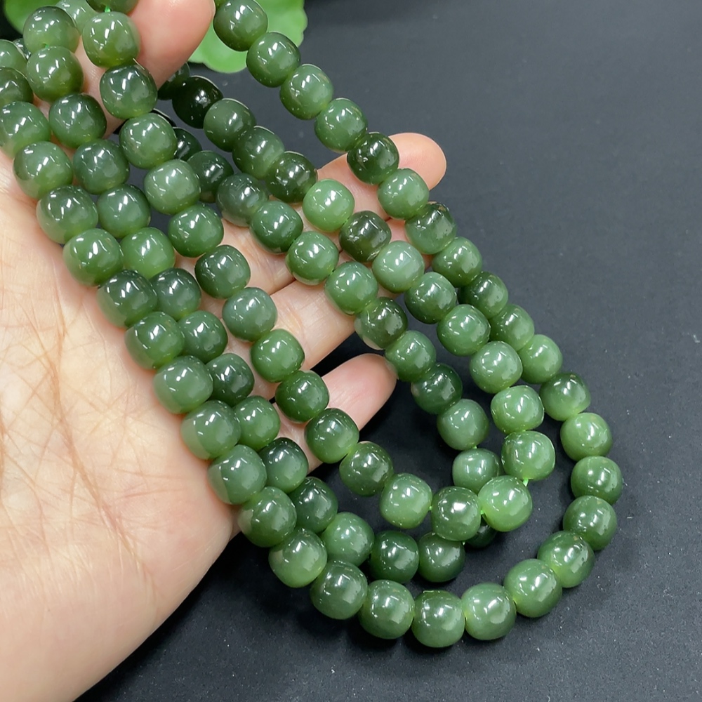Hetian Jade Jasper Bead Necklace, Approx. 8.5mm, Total Weight Approx. 114.1g