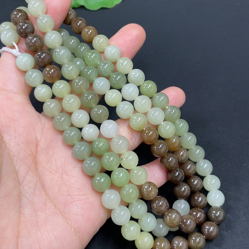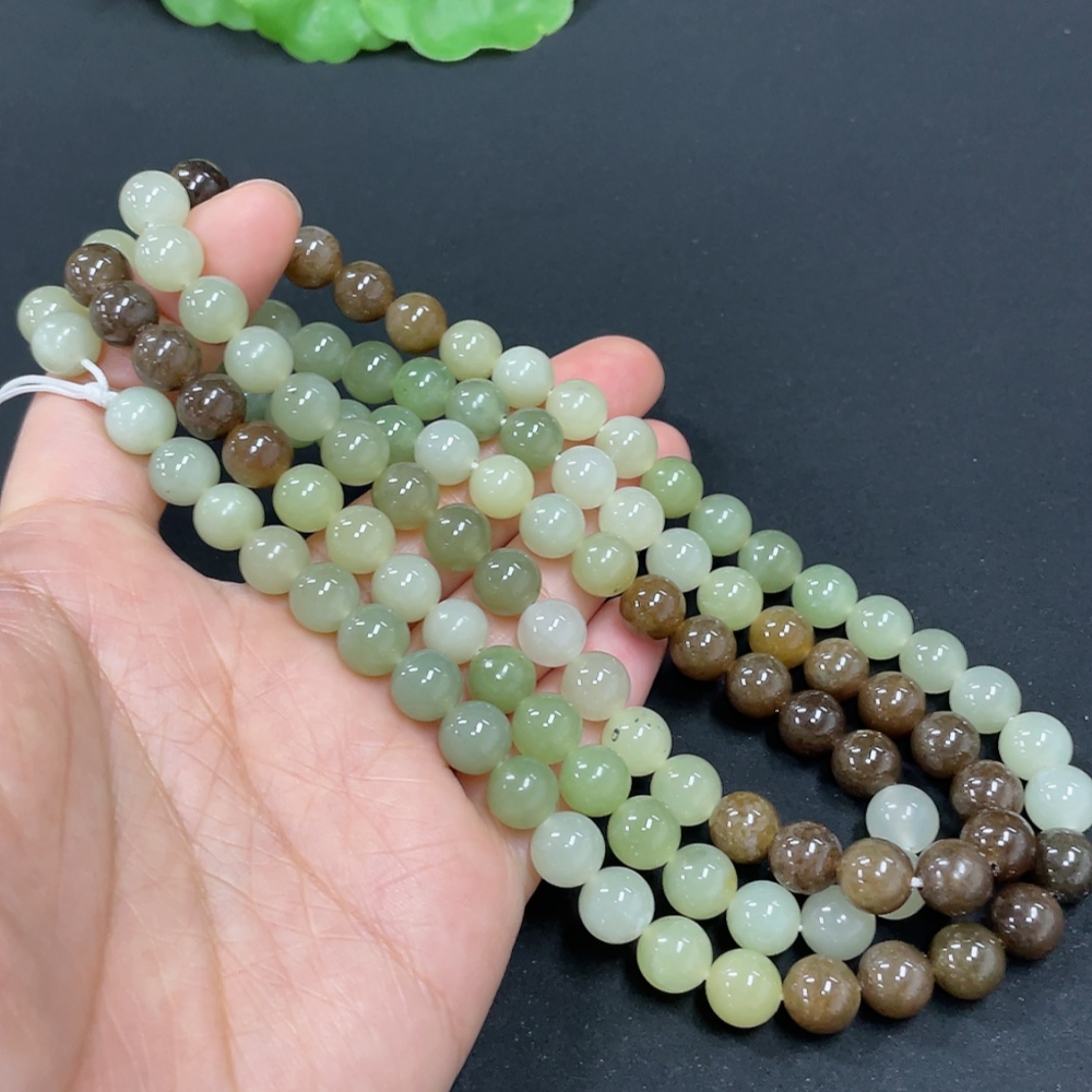 Hetian Jade Bead Necklace, approx. 7.8mm, total weight approx. 83.1g