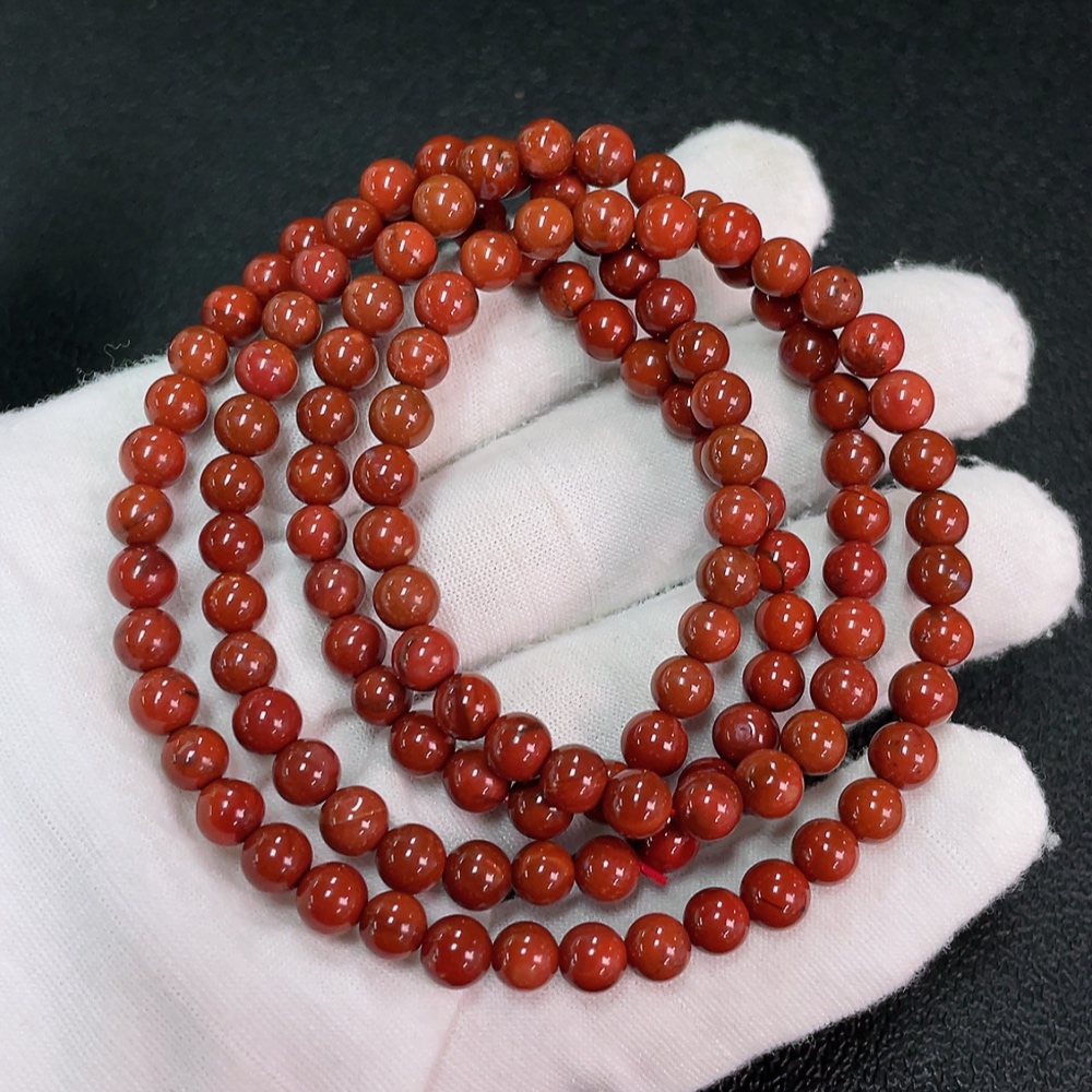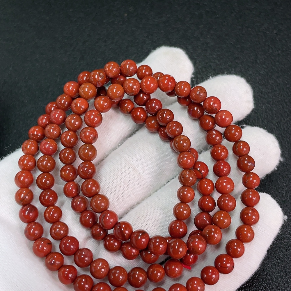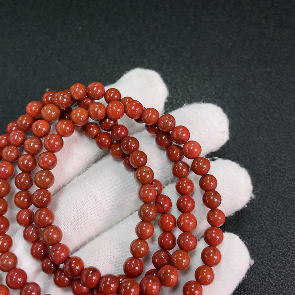 Red Agate Bead Strand with Visible Organic Matter, Total Weight Approx. 31.63g, Size ~5.7mm