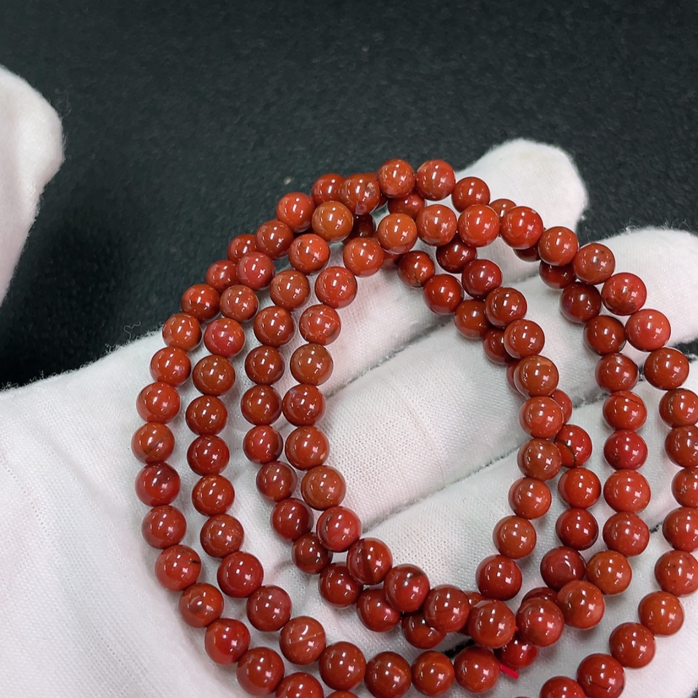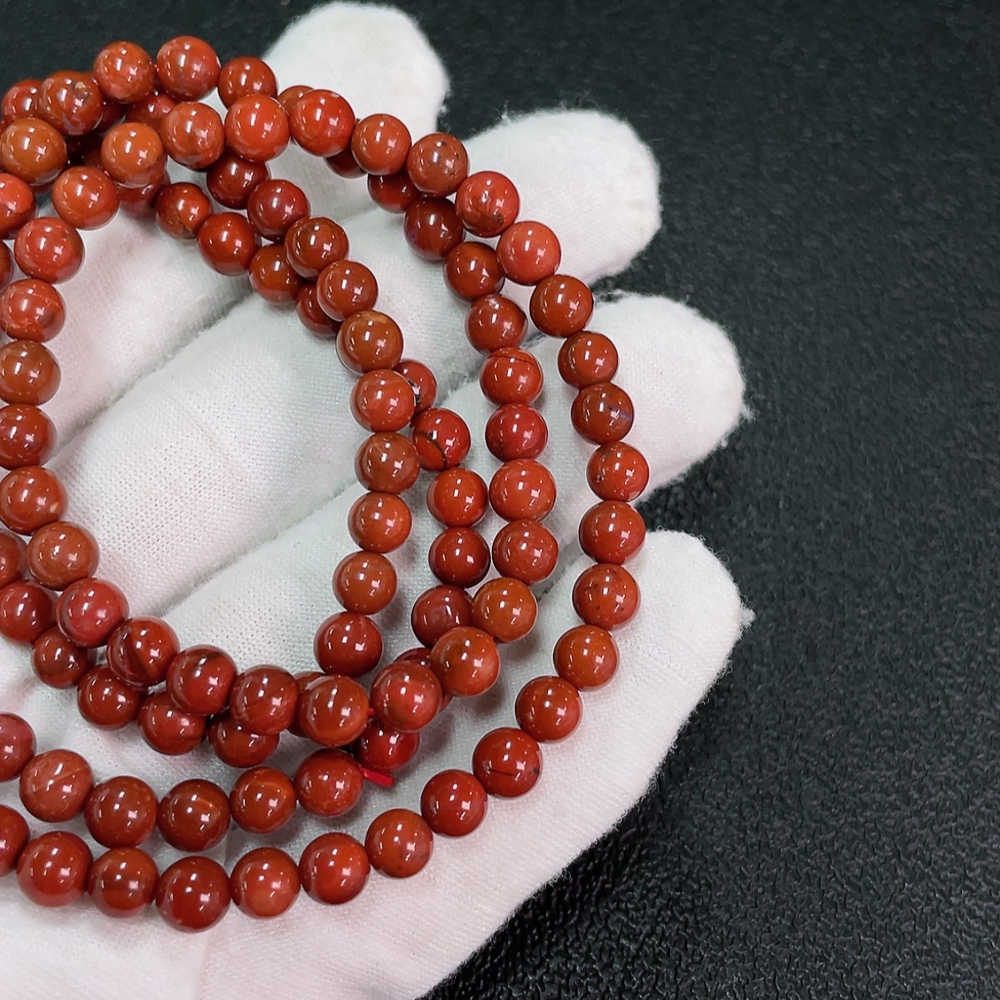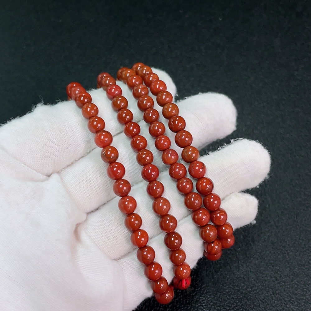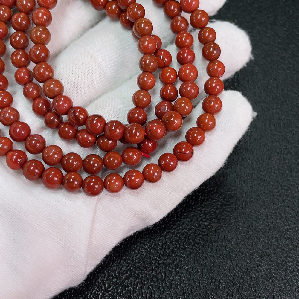 Red Agate Bead Strand with Visible Organic Matter, Total Weight Approx. 31.63g, Size ~5.7mm