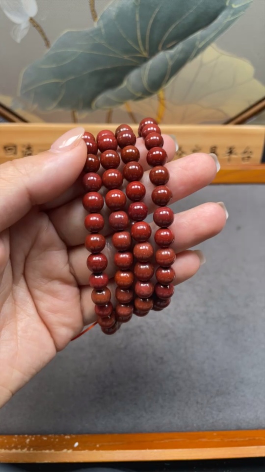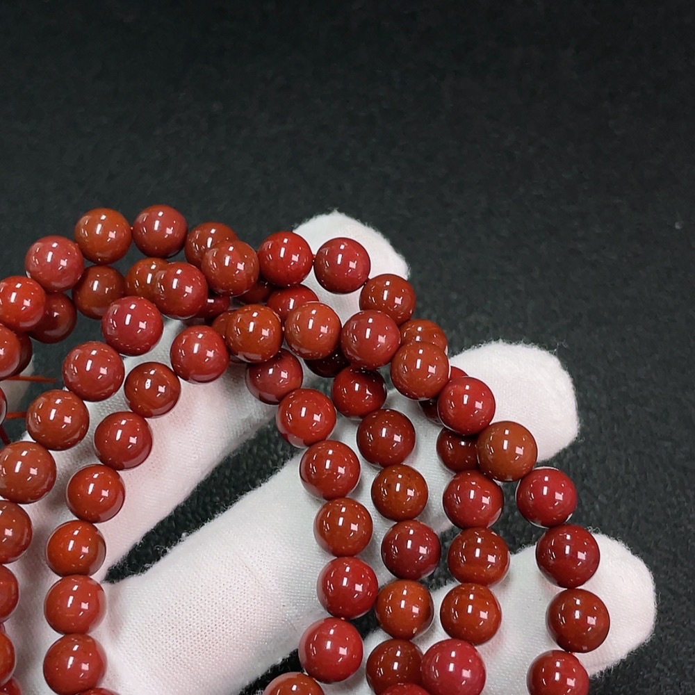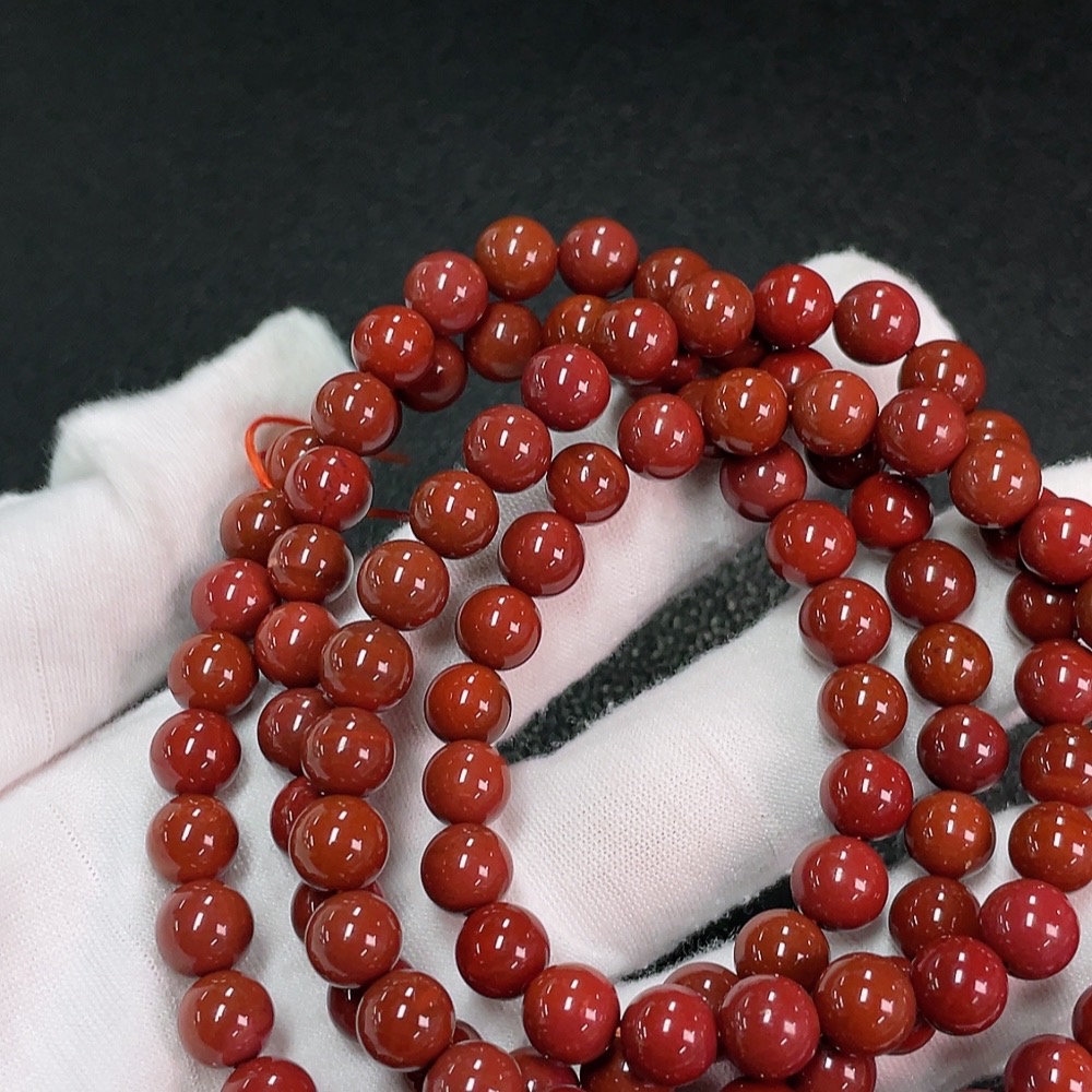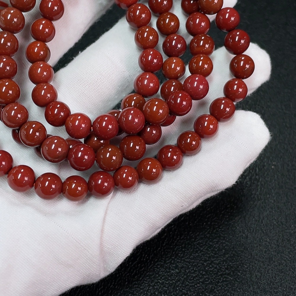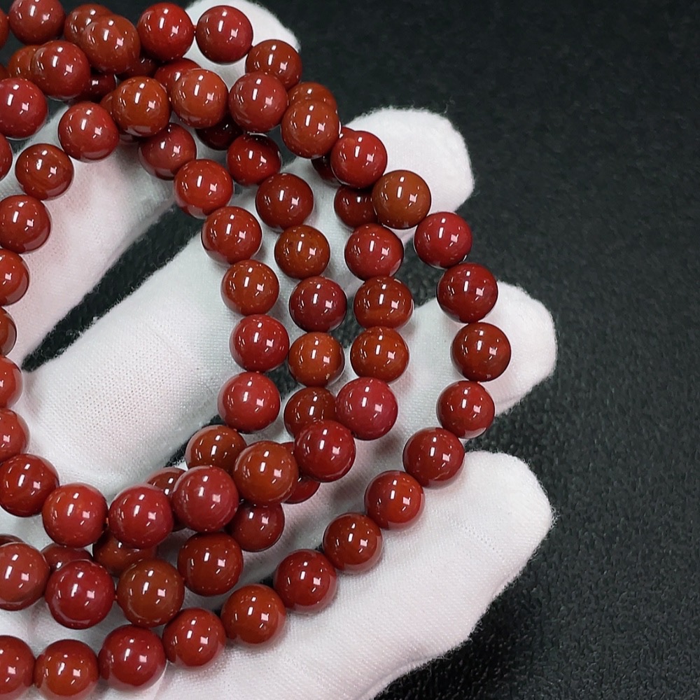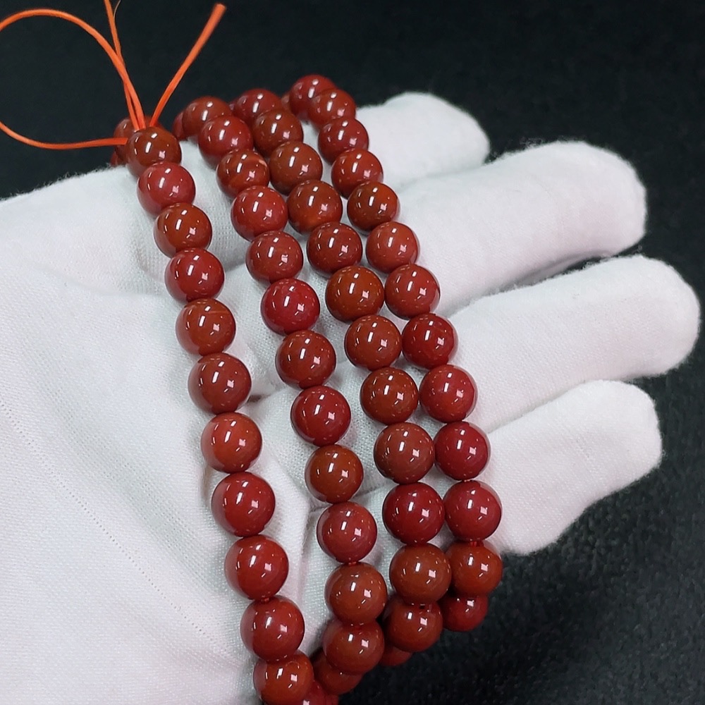 South Red Agate Bead Strand, approximately 7.6mm, total weight about 66.33g, visible organic matter