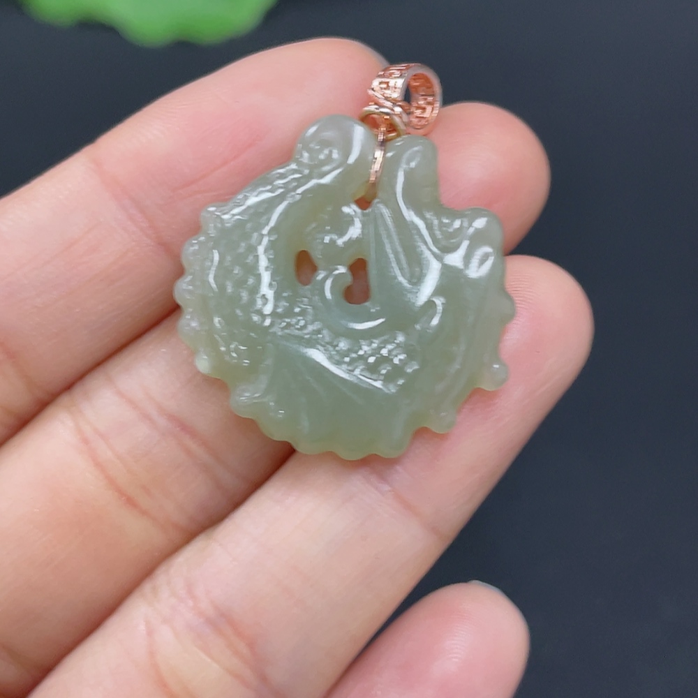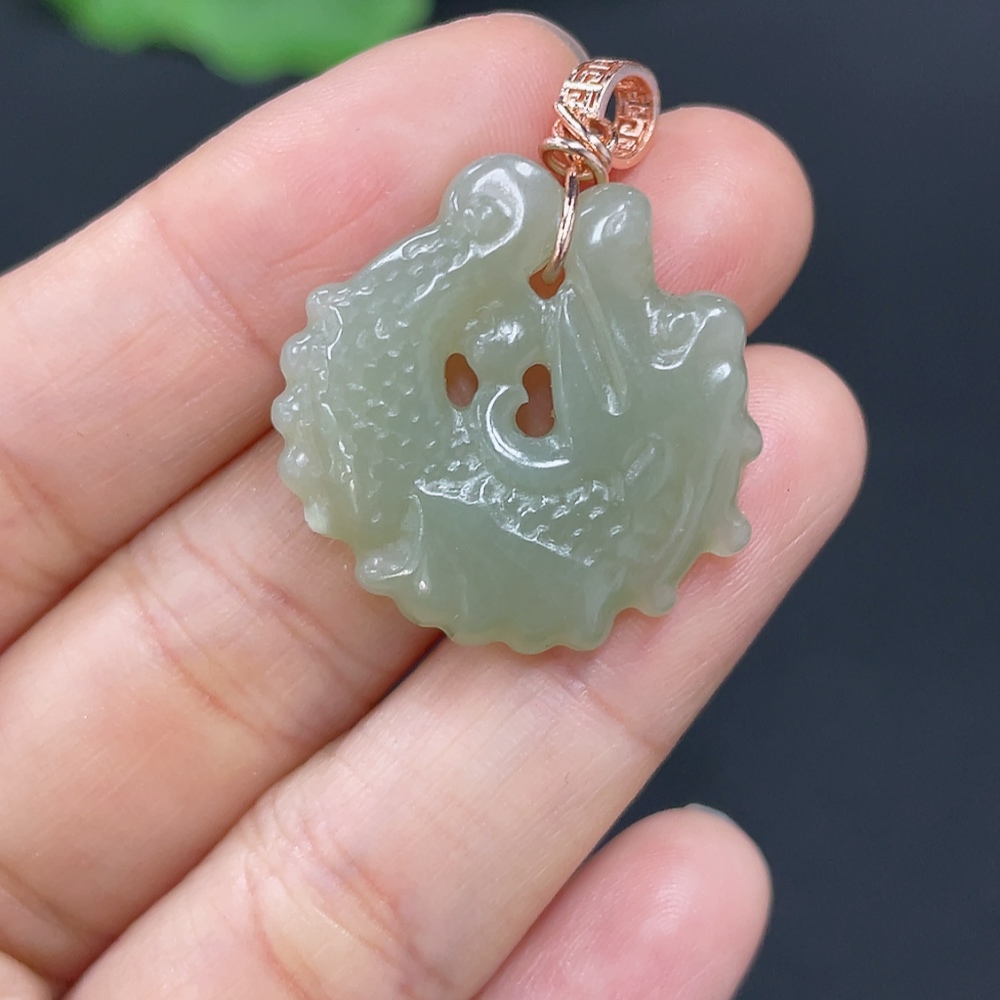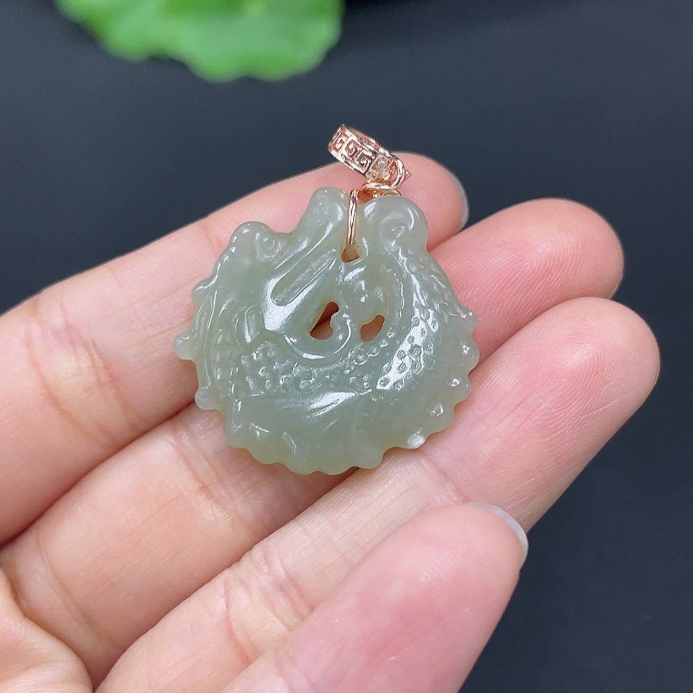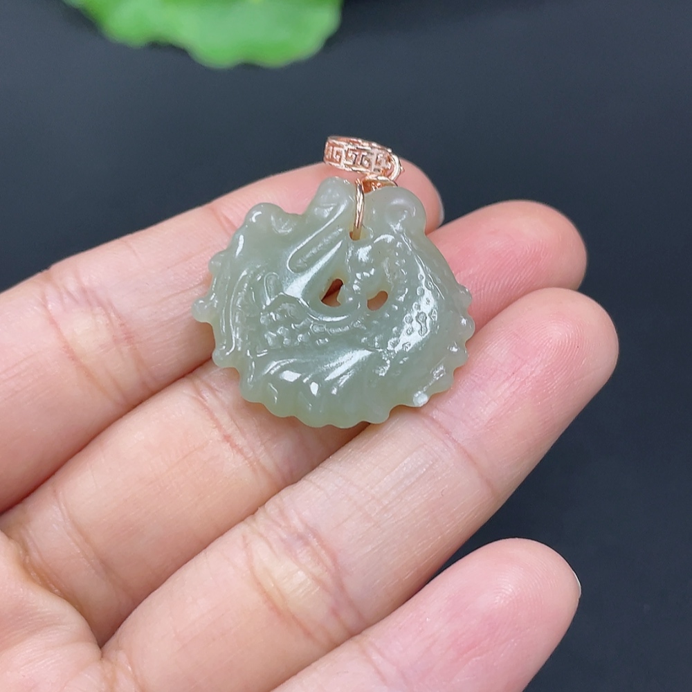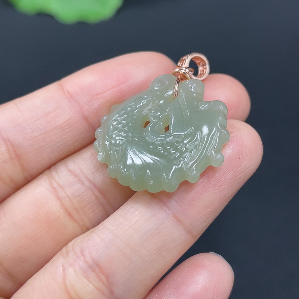Hetian Jade Pendant Dragon Fish Non-Gold Inlaid Total Weight Approx.5g