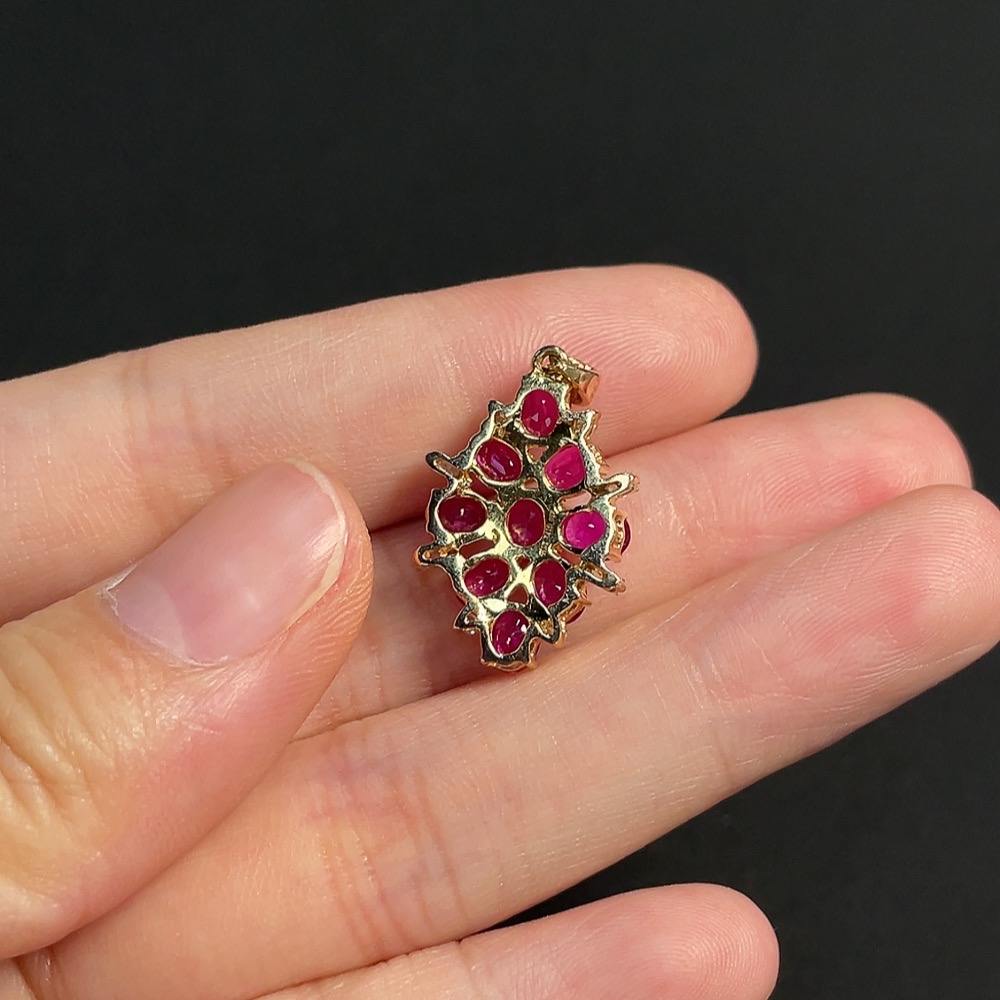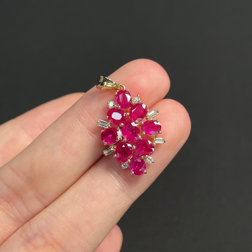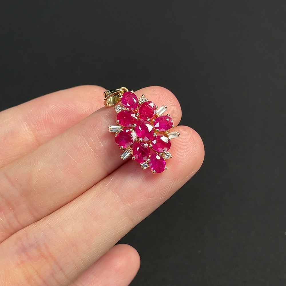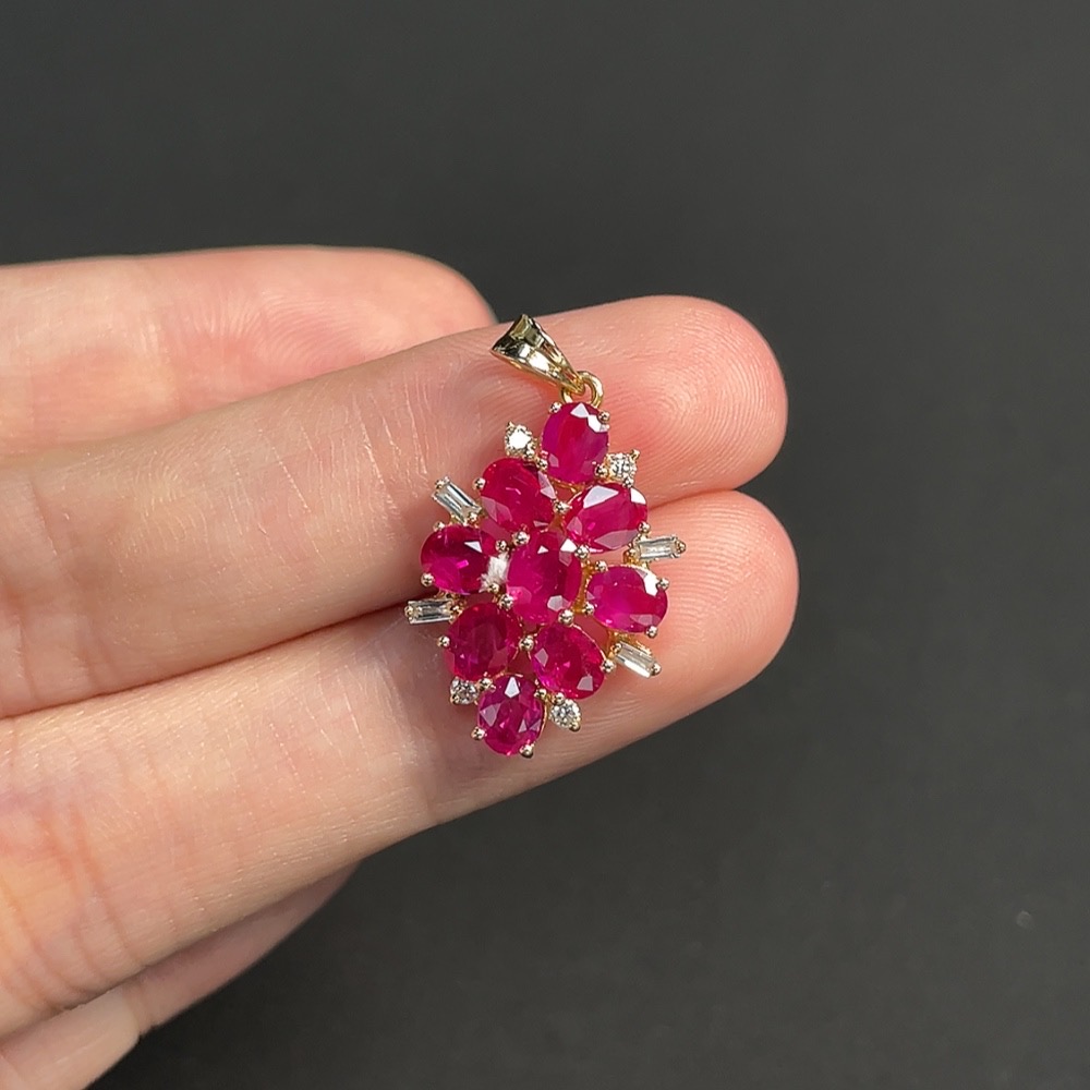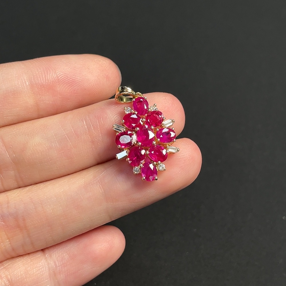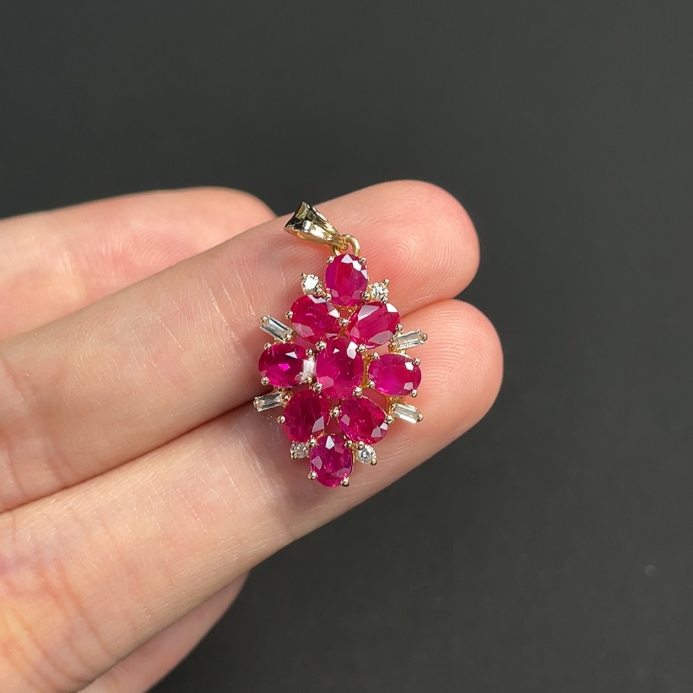 Ruby Pendant Set in 18K Gold, Total Weight Approx. 2.96g, Filled, Accented with Diamonds