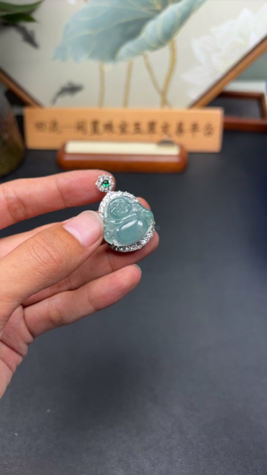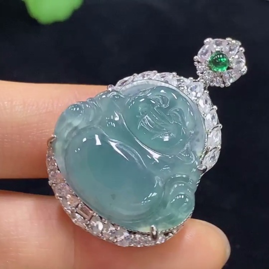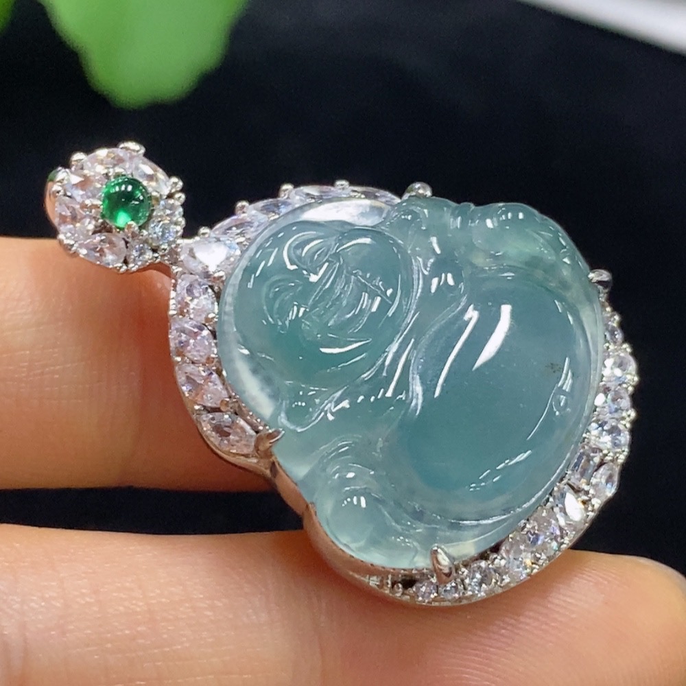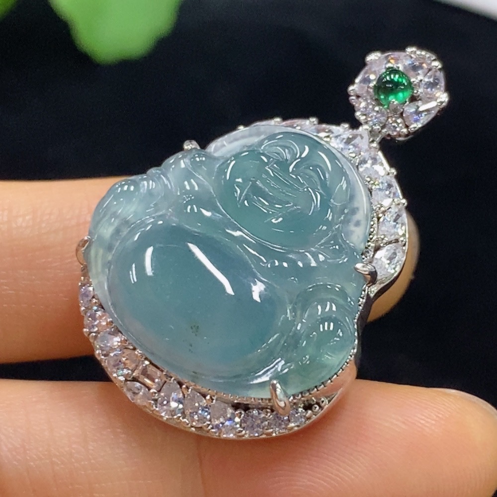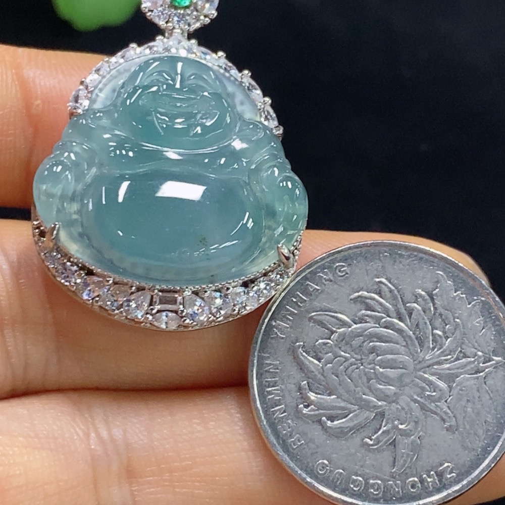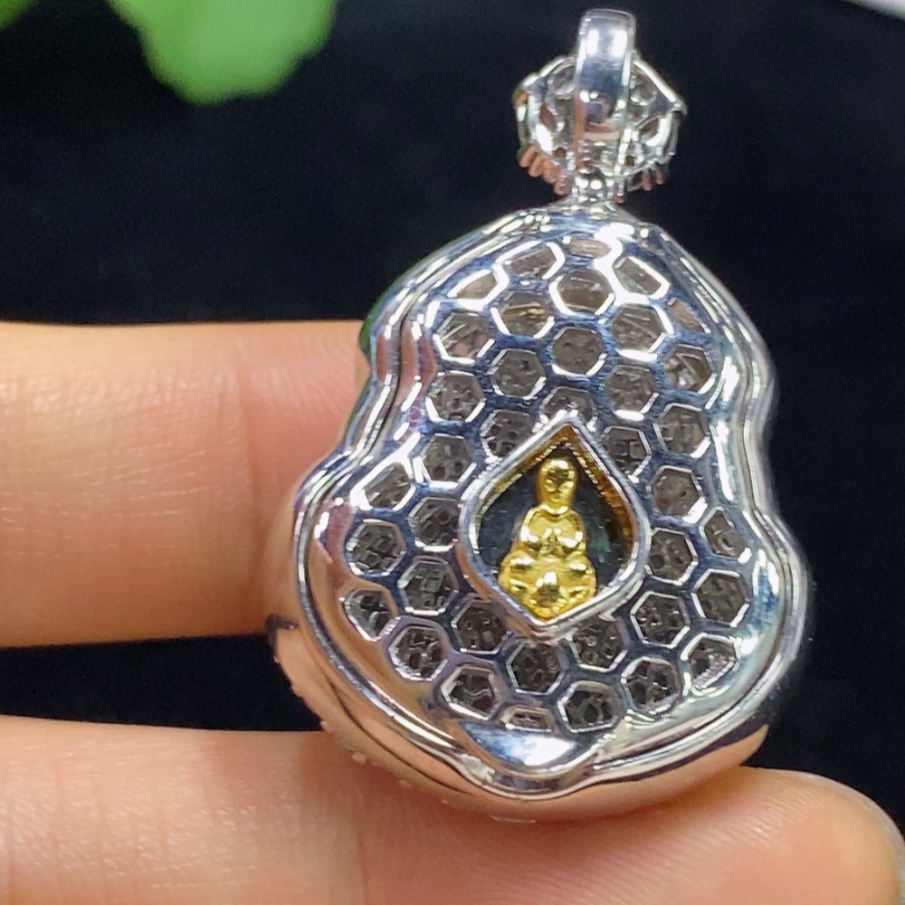 Jadeite Buddha Inlaid Pendant Non-Gold Total Weight About 13.78g Beads Non-A