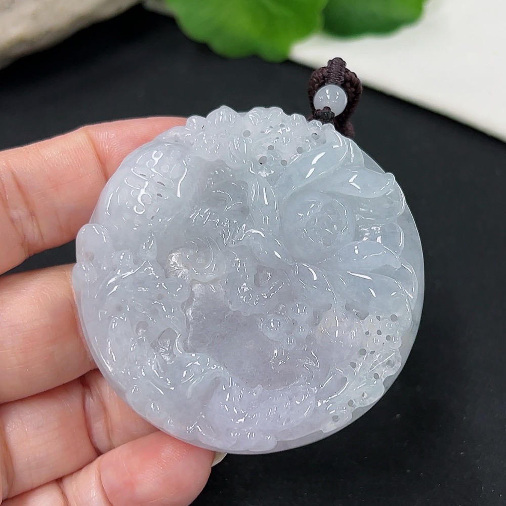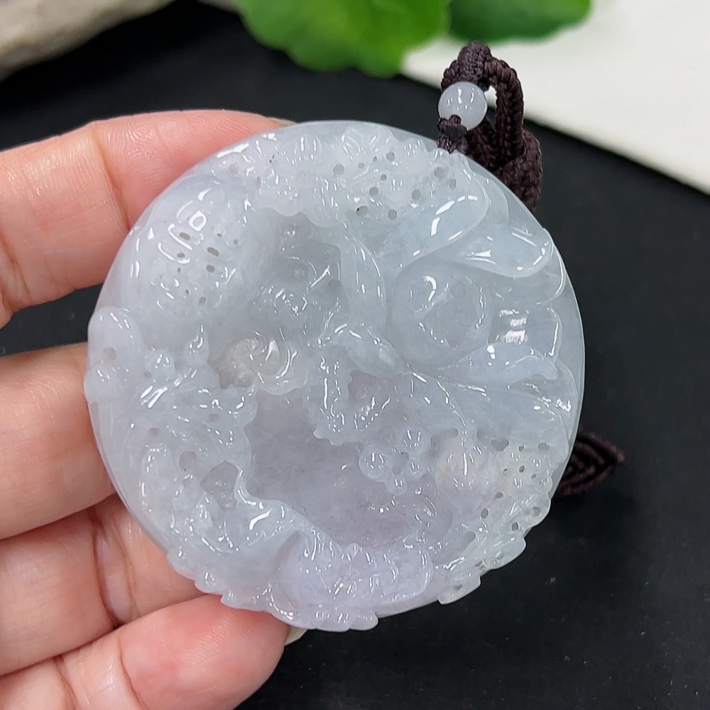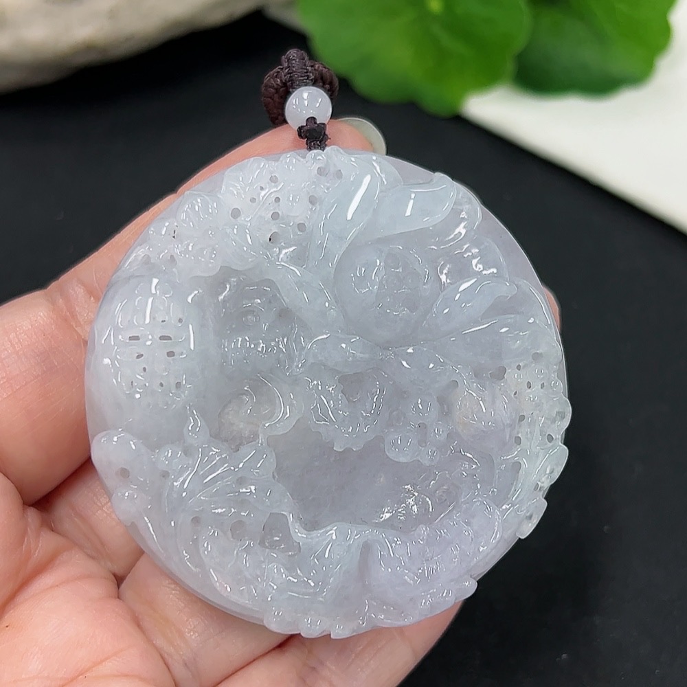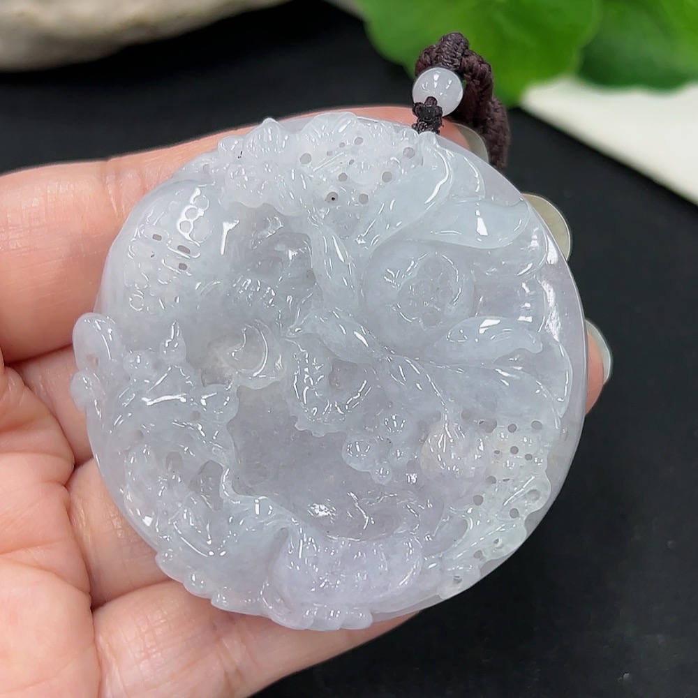 Jadeite Flower and Bird Pendant, Total Weight Approx. 68.27g