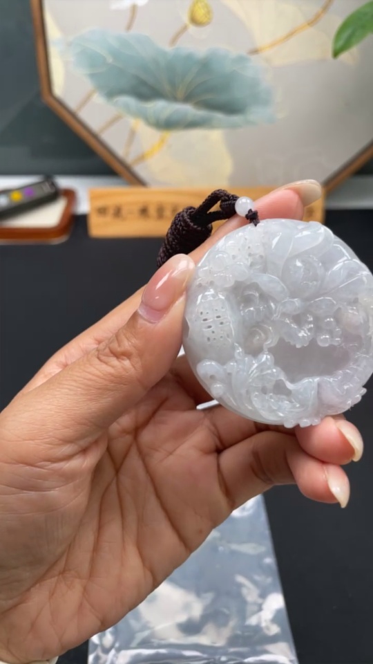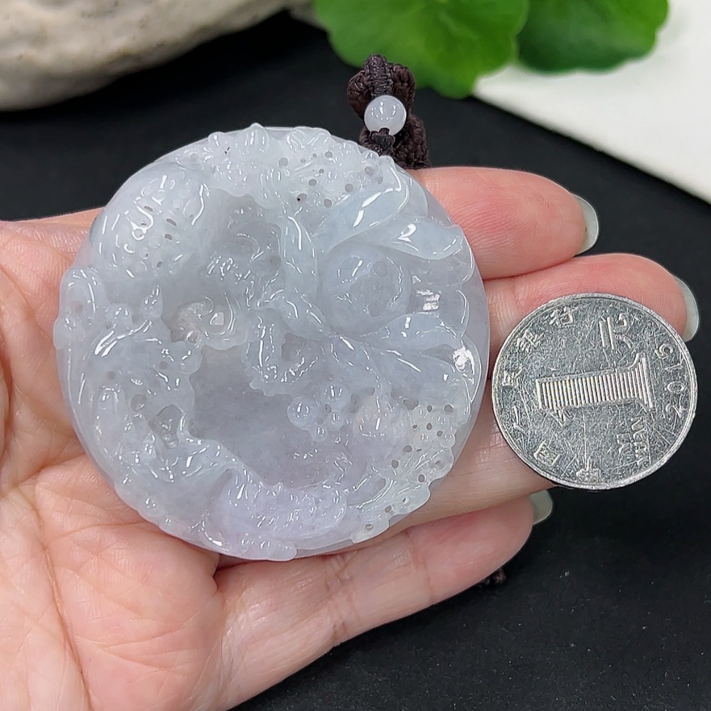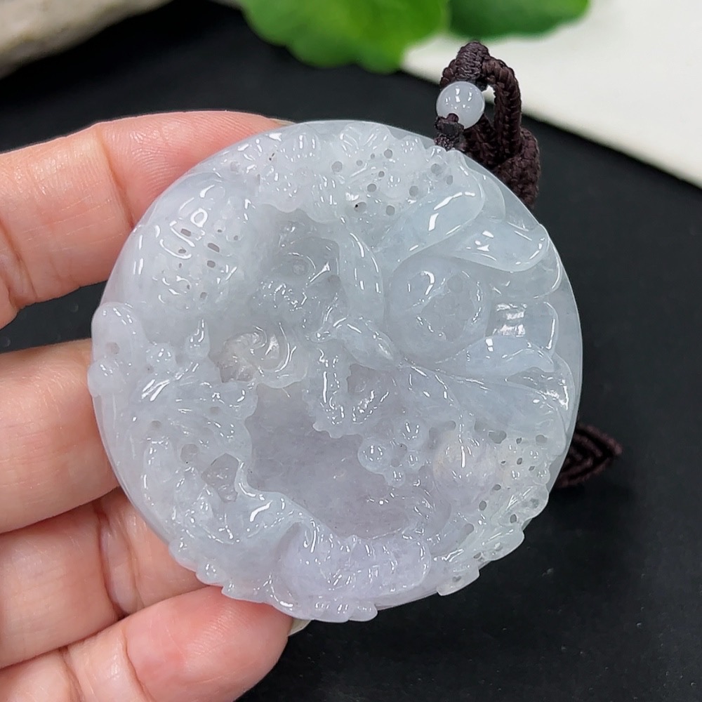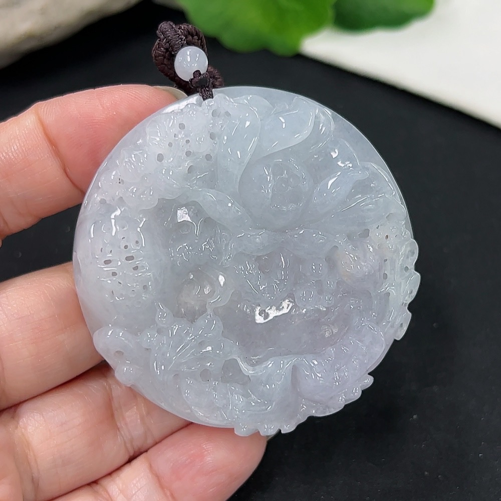 Jadeite Flower and Bird Pendant, Total Weight Approx. 68.27g