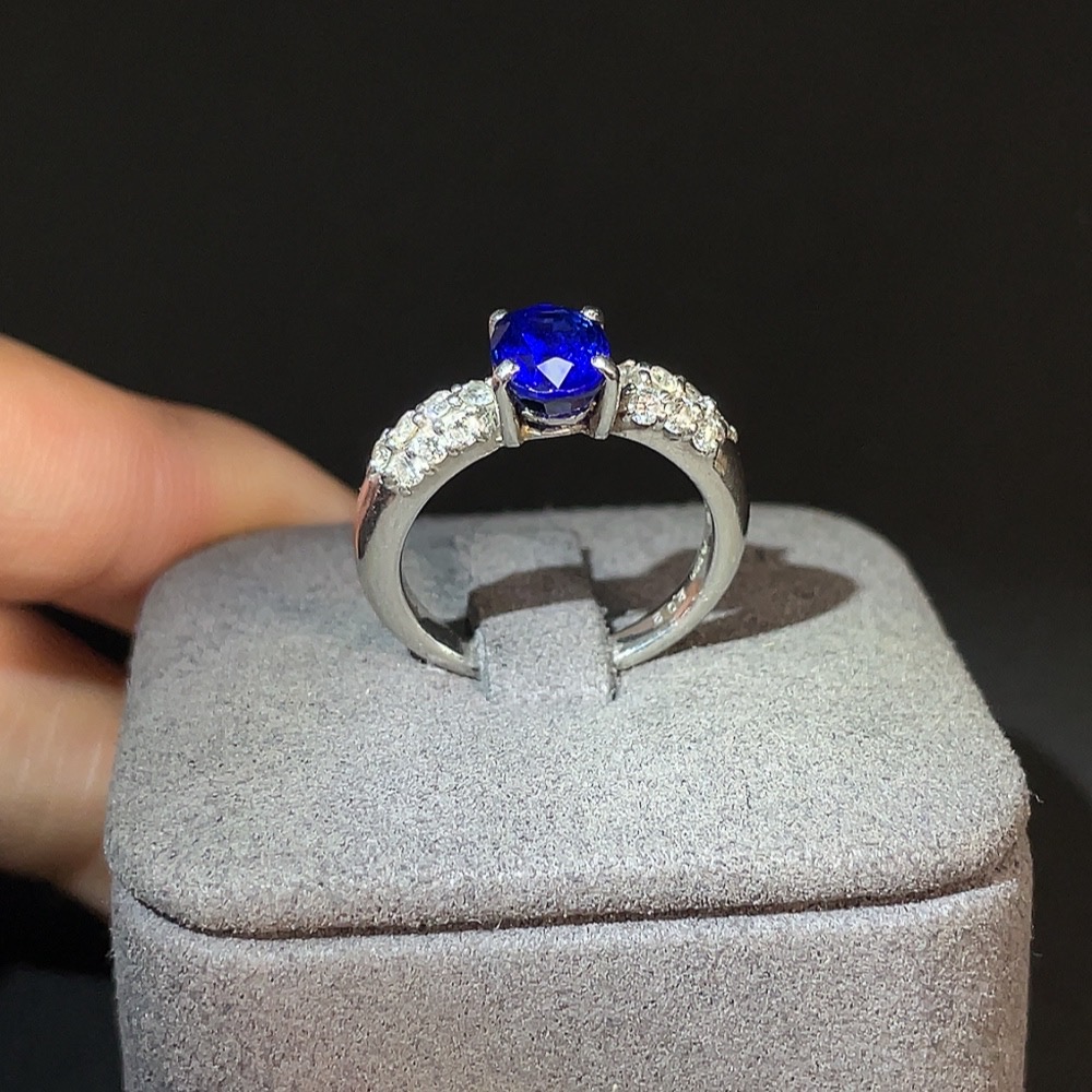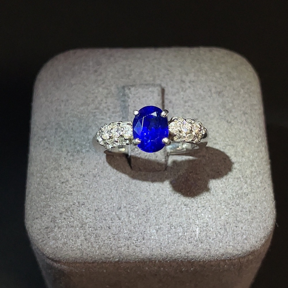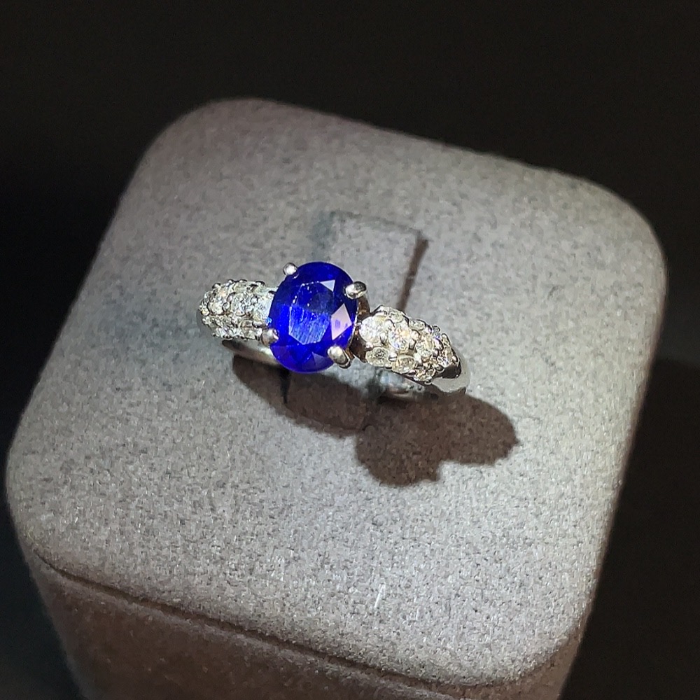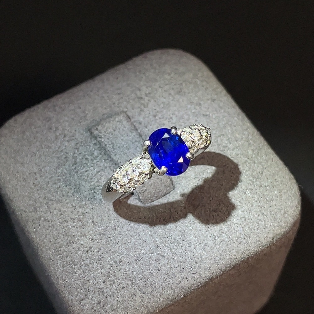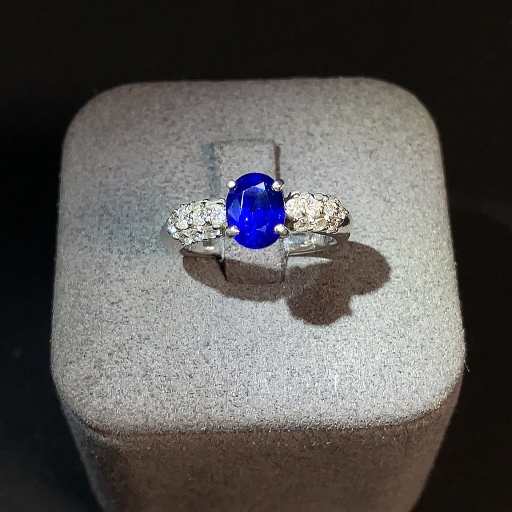 Sapphire Inlaid Ring Pt900 Size 11 Total Weight Approx. 6.27g Diamond Accents GRS Certificate: Heated Royal Blue Sri Lanka Origin
