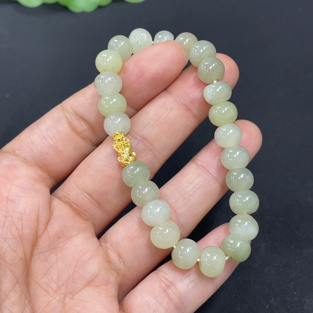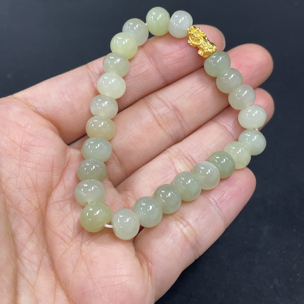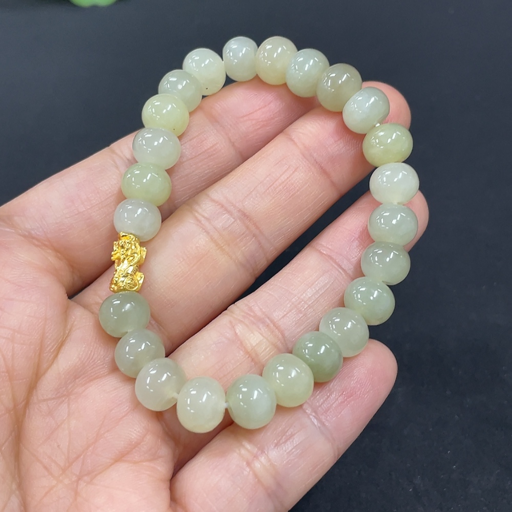 Hetian Jade Bracelet, Approx. 7.4mm, 99% Gold Content, Total Weight Approx. 14g, Hollow Gold Fragile