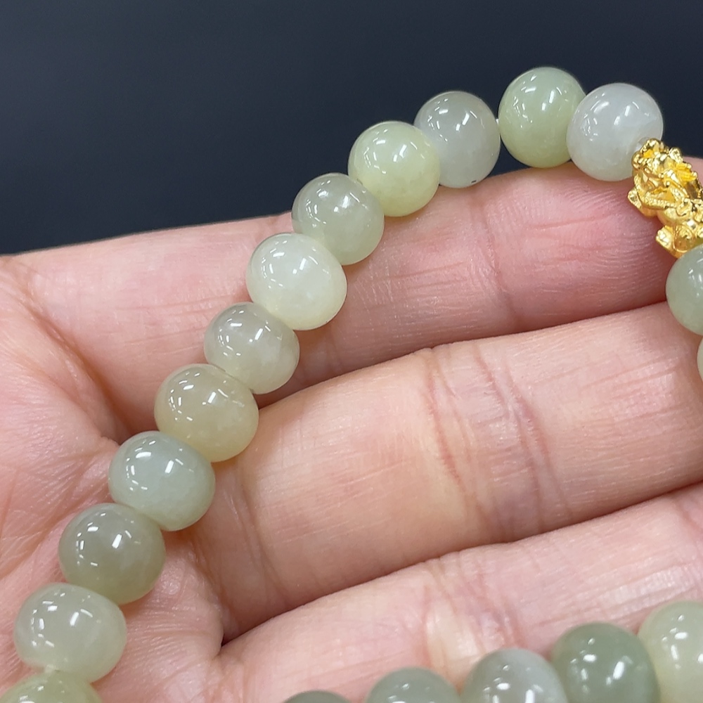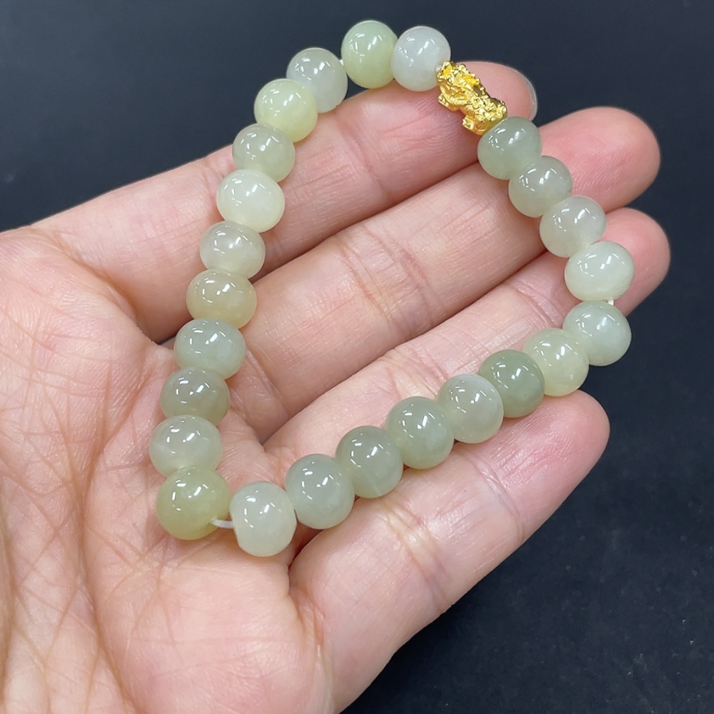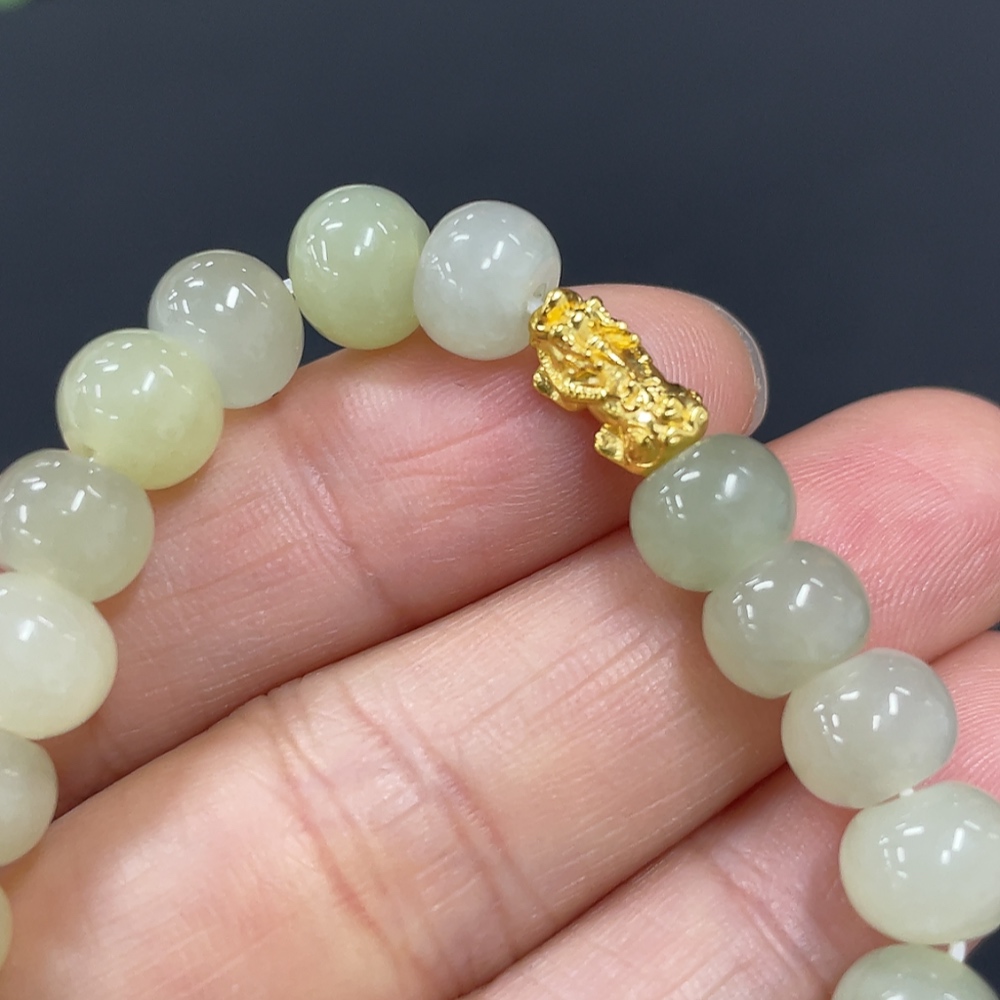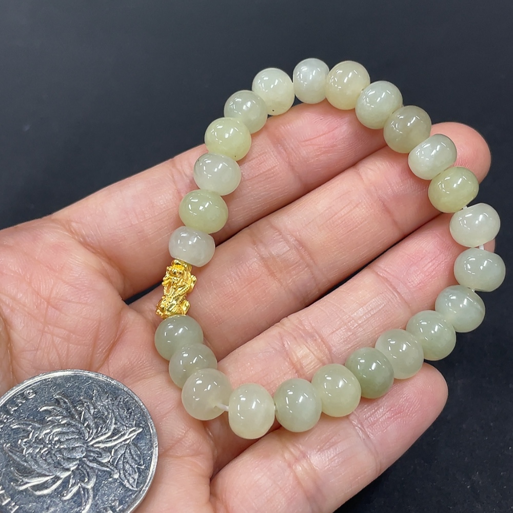 Hetian Jade Bracelet, Approx. 7.4mm, 99% Gold Content, Total Weight Approx. 14g, Hollow Gold Fragile