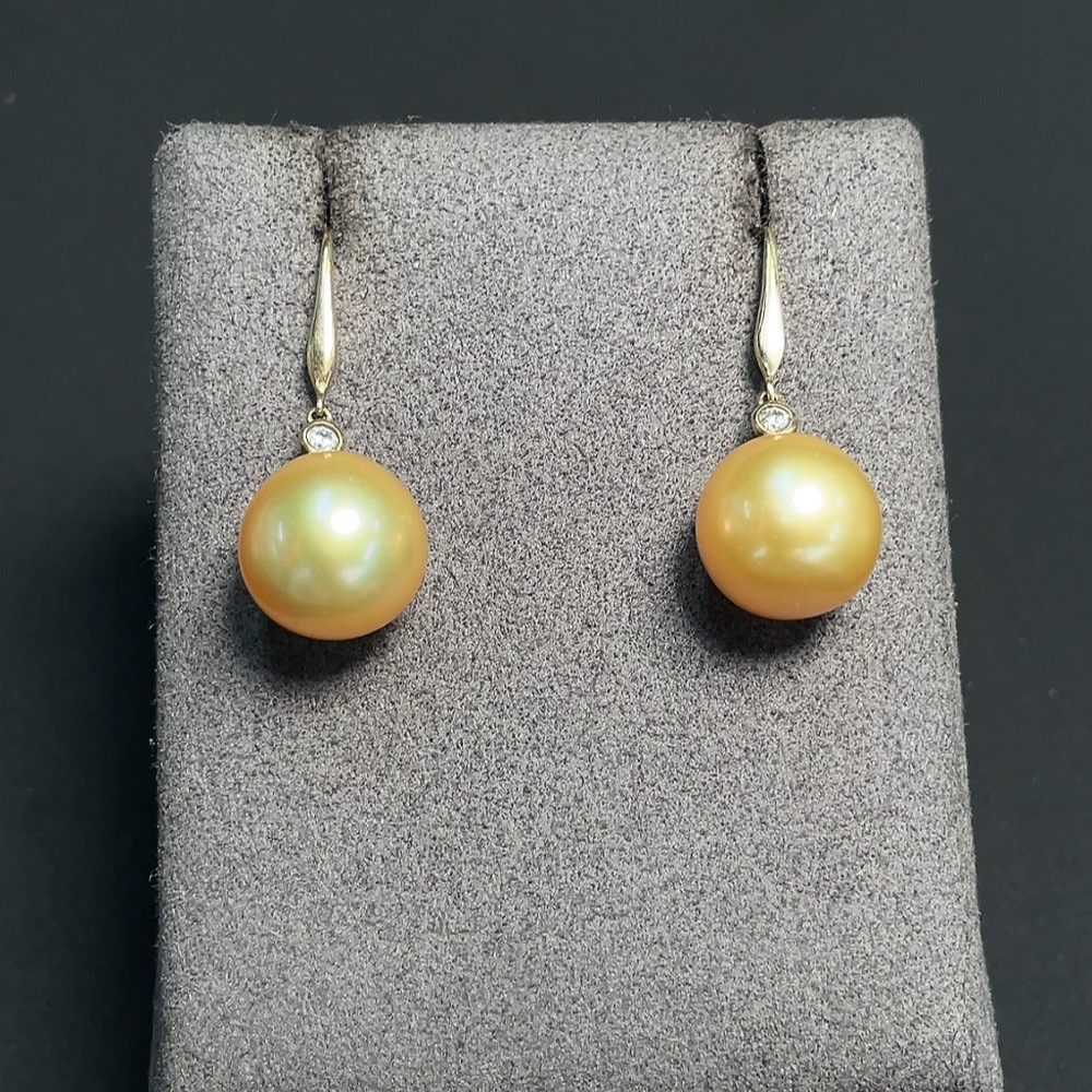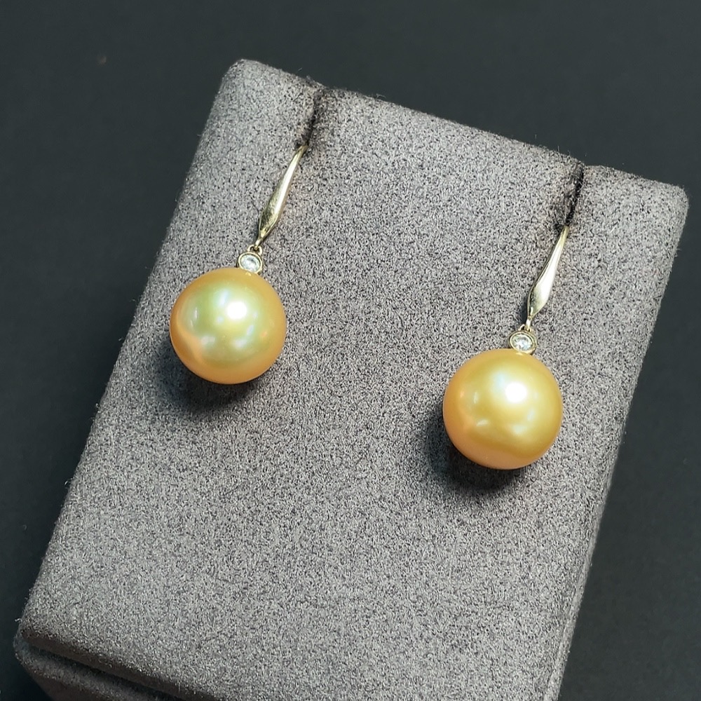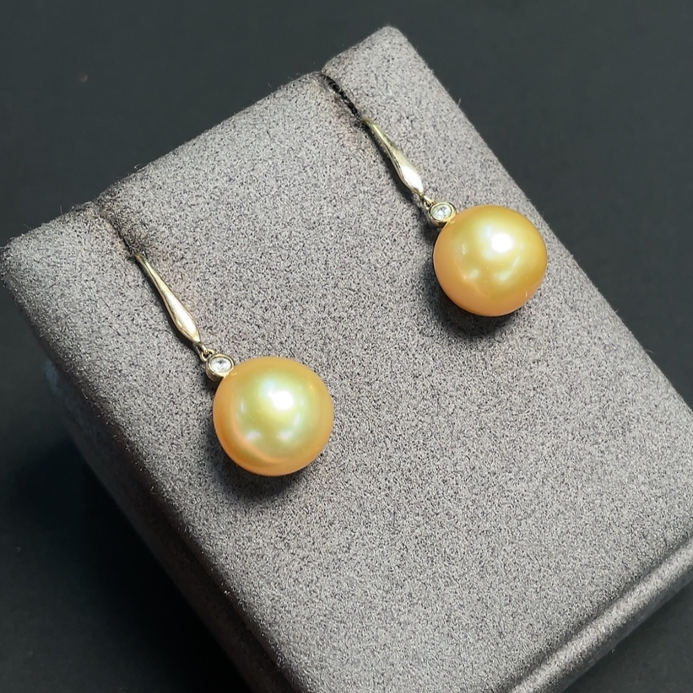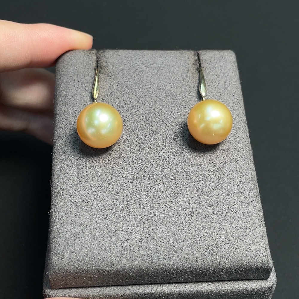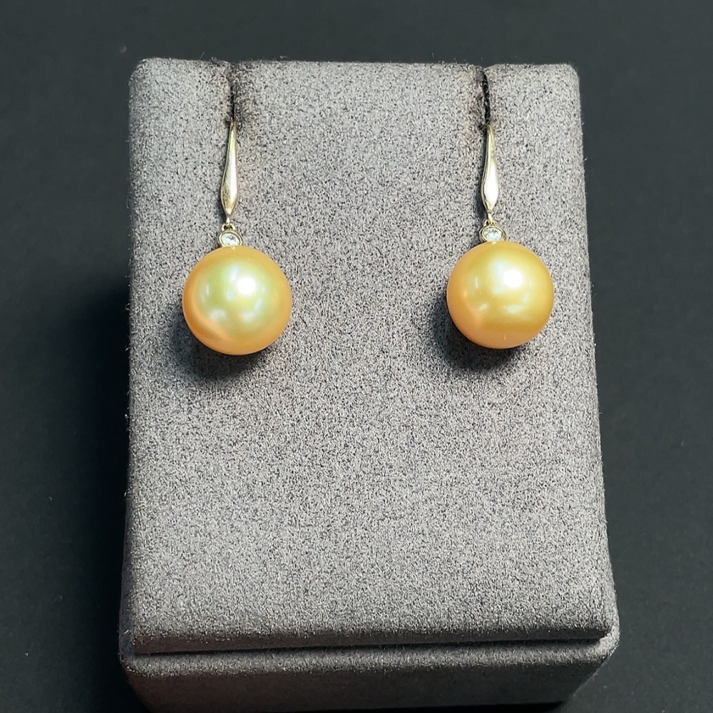 Seawater Pearl Earrings with 36% Gold Content, Approximately 12.4mm, Total Weight About 6.44g, Color Origin Undetermined, Non-Diamond
