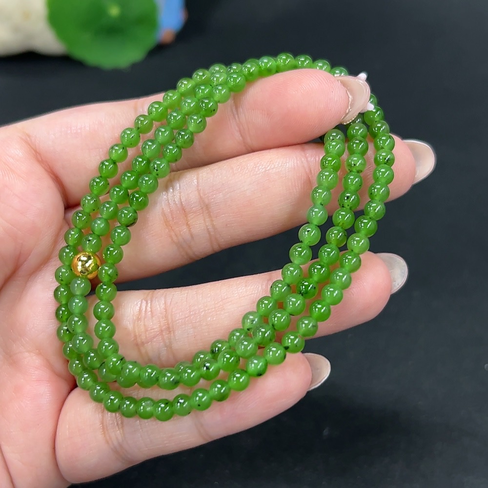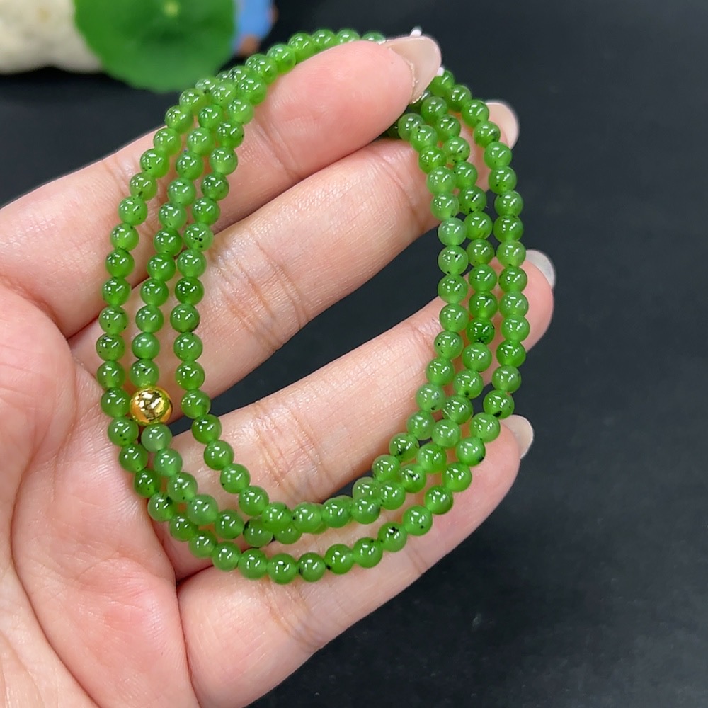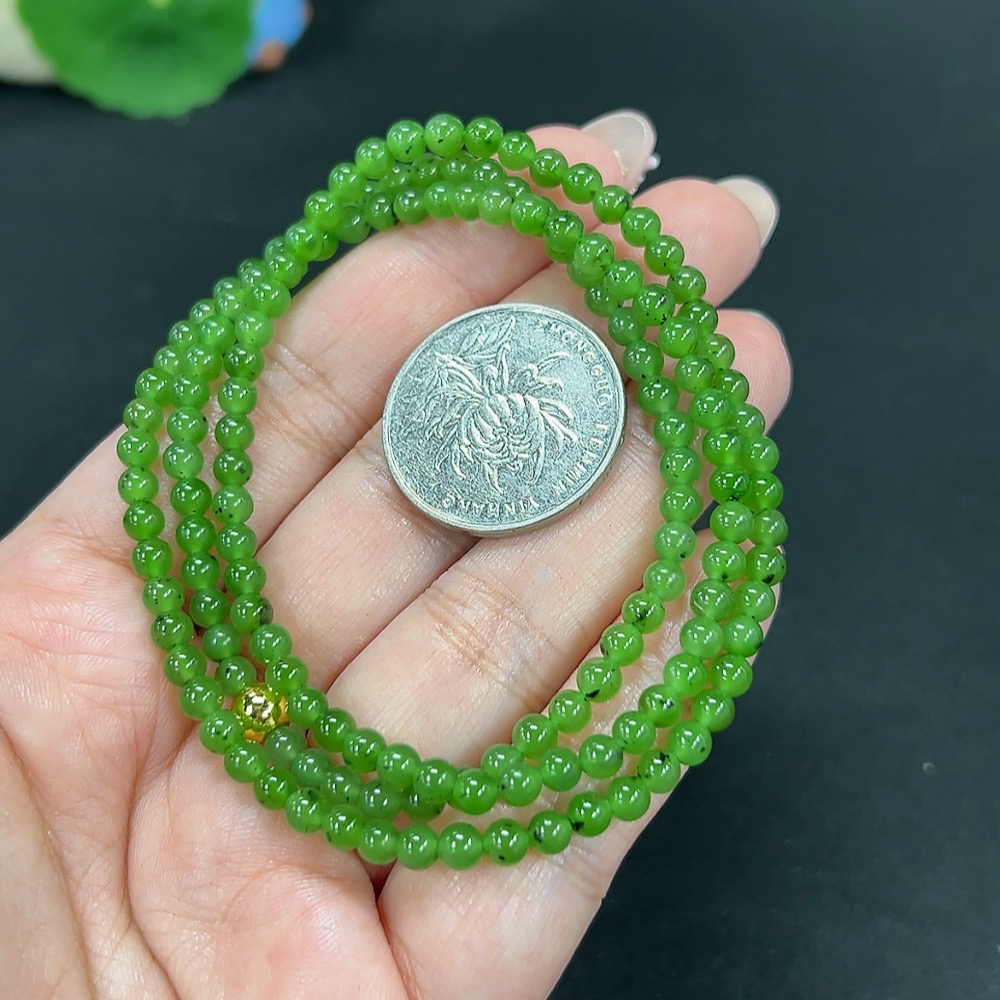 Hetian Jade Bead Necklace, Approx. 4mm, Non-Gold, Total Weight Approx. 16.1g