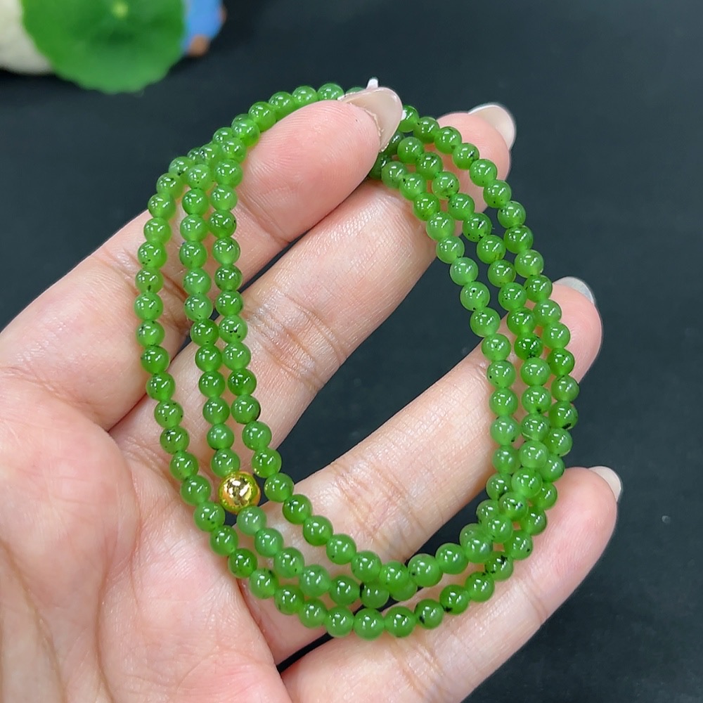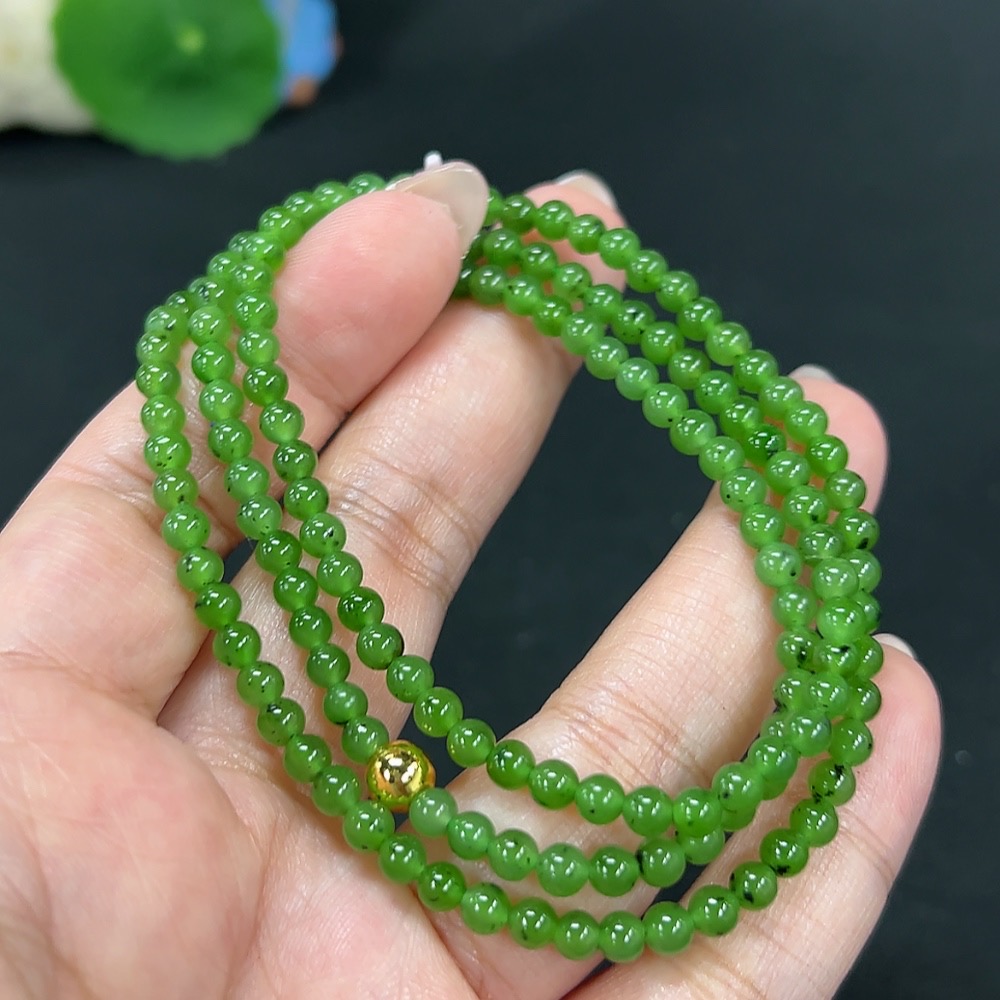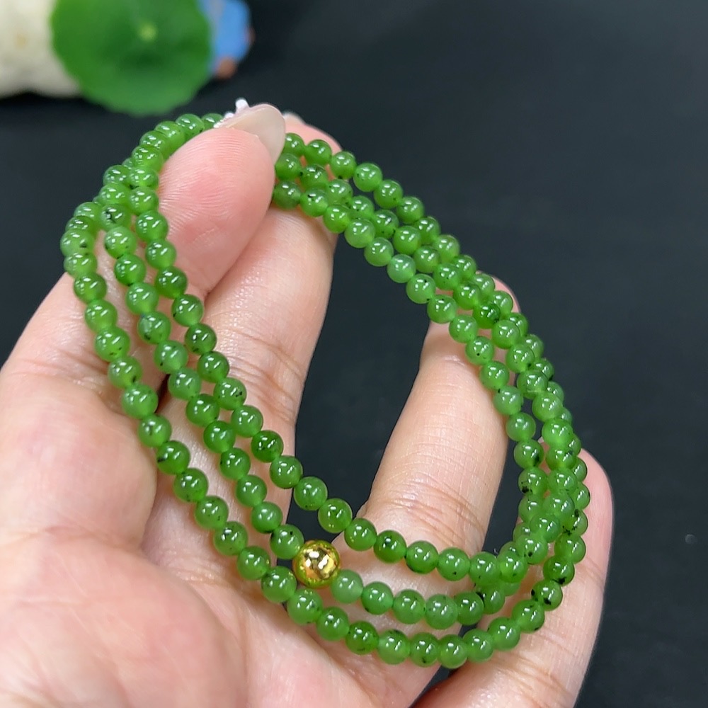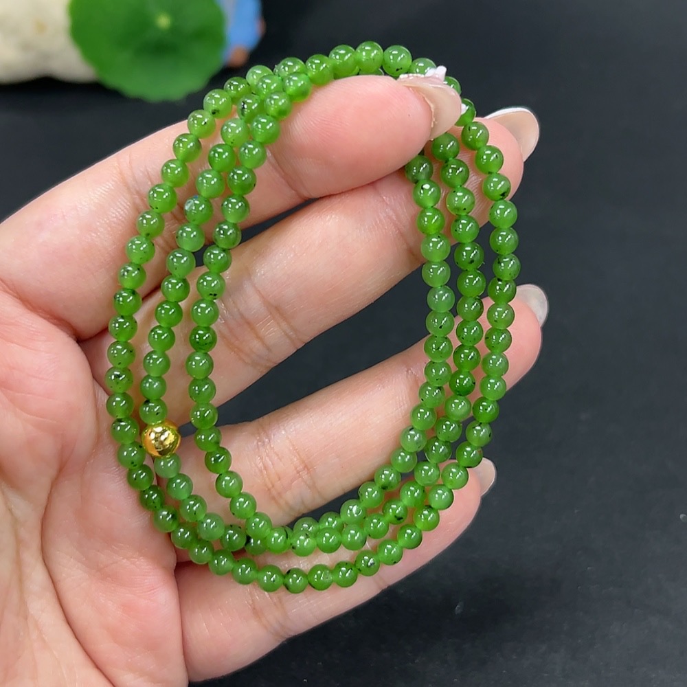 Hetian Jade Bead Necklace, Approx. 4mm, Non-Gold, Total Weight Approx. 16.1g