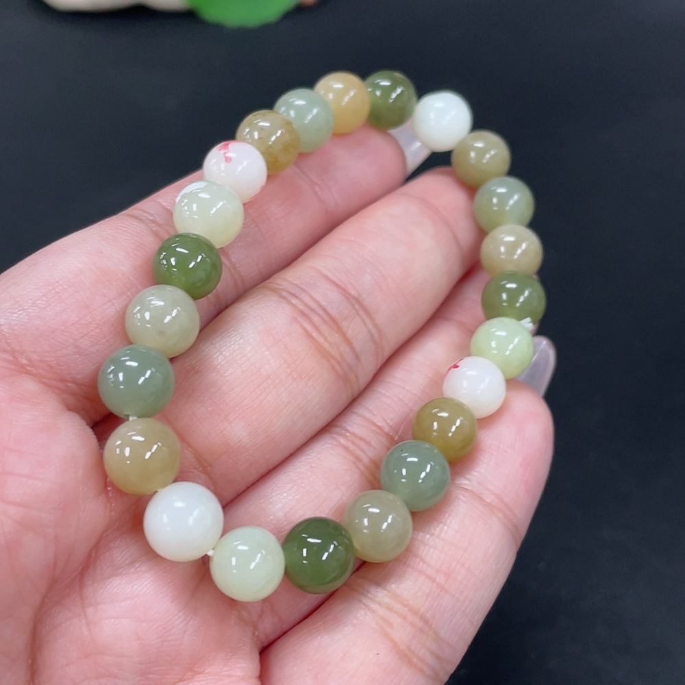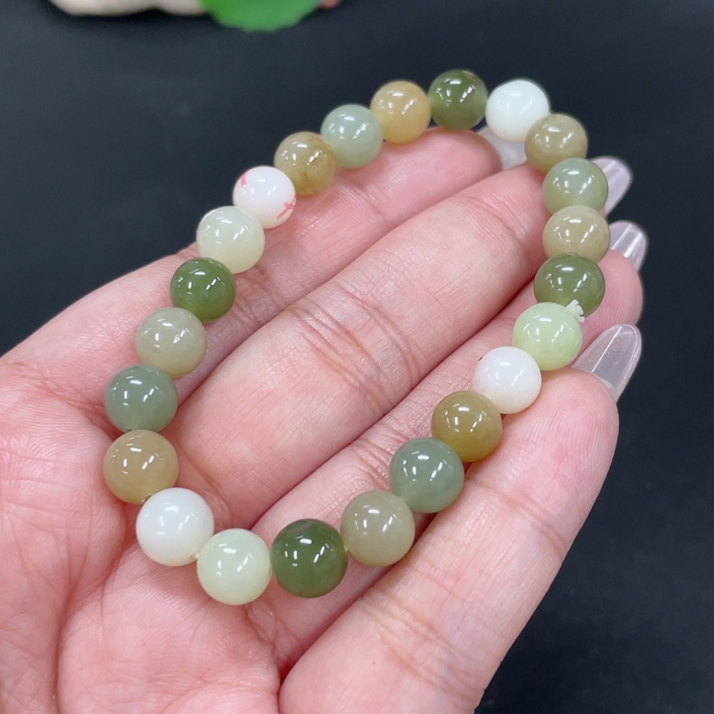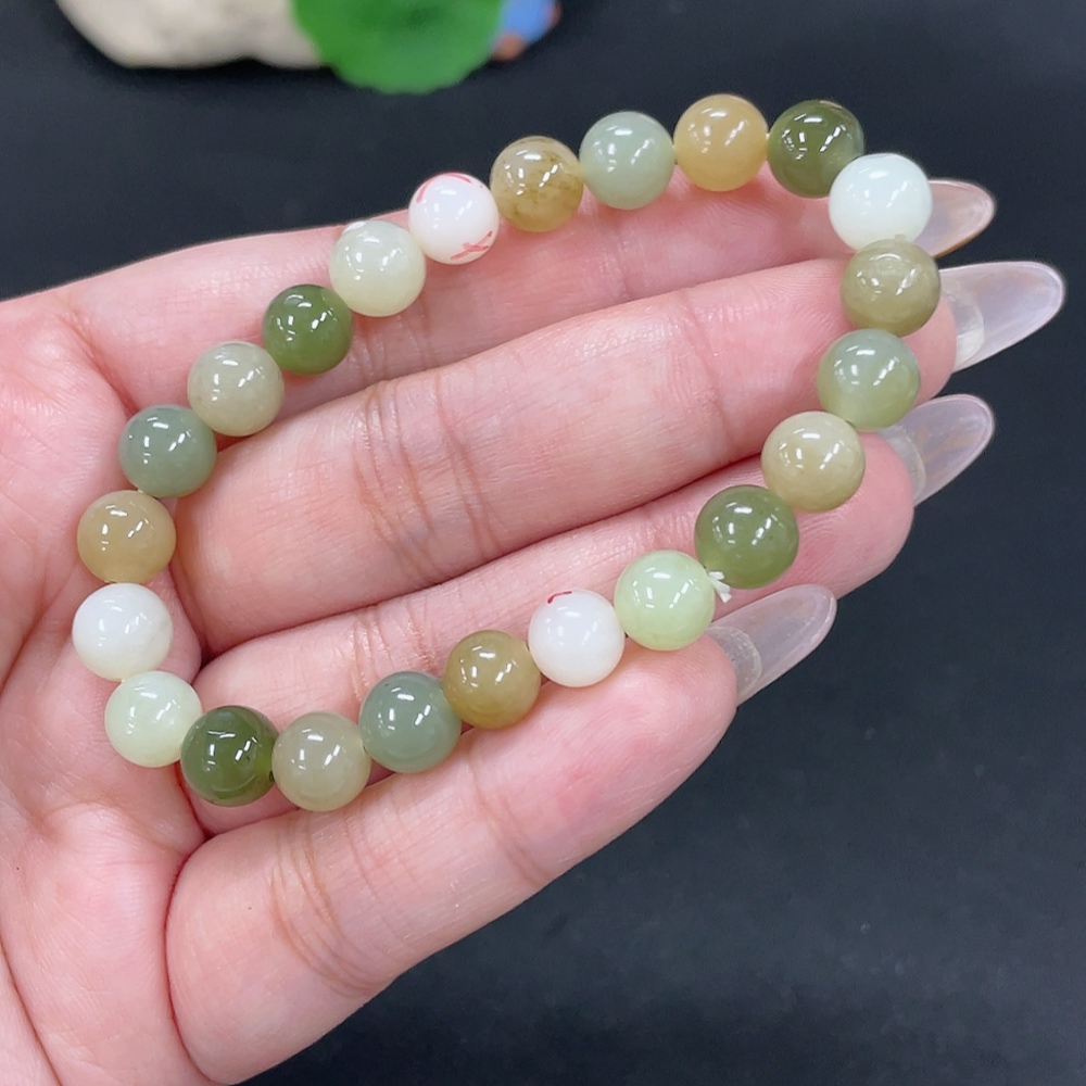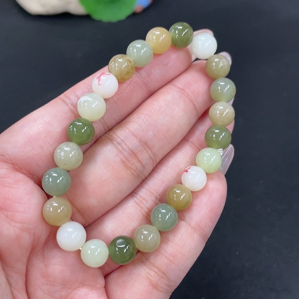 Hetian Jade Bracelet, Approx. 8mm Beads, Total Weight About 17.9g, Non-Hetian Jade Beads Included, With Impurities