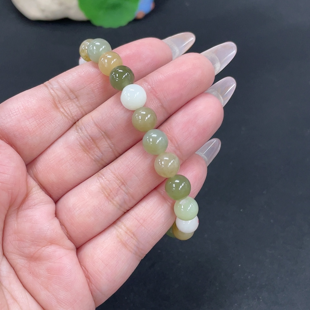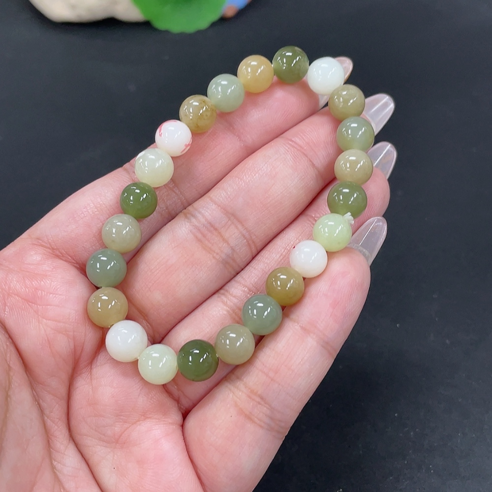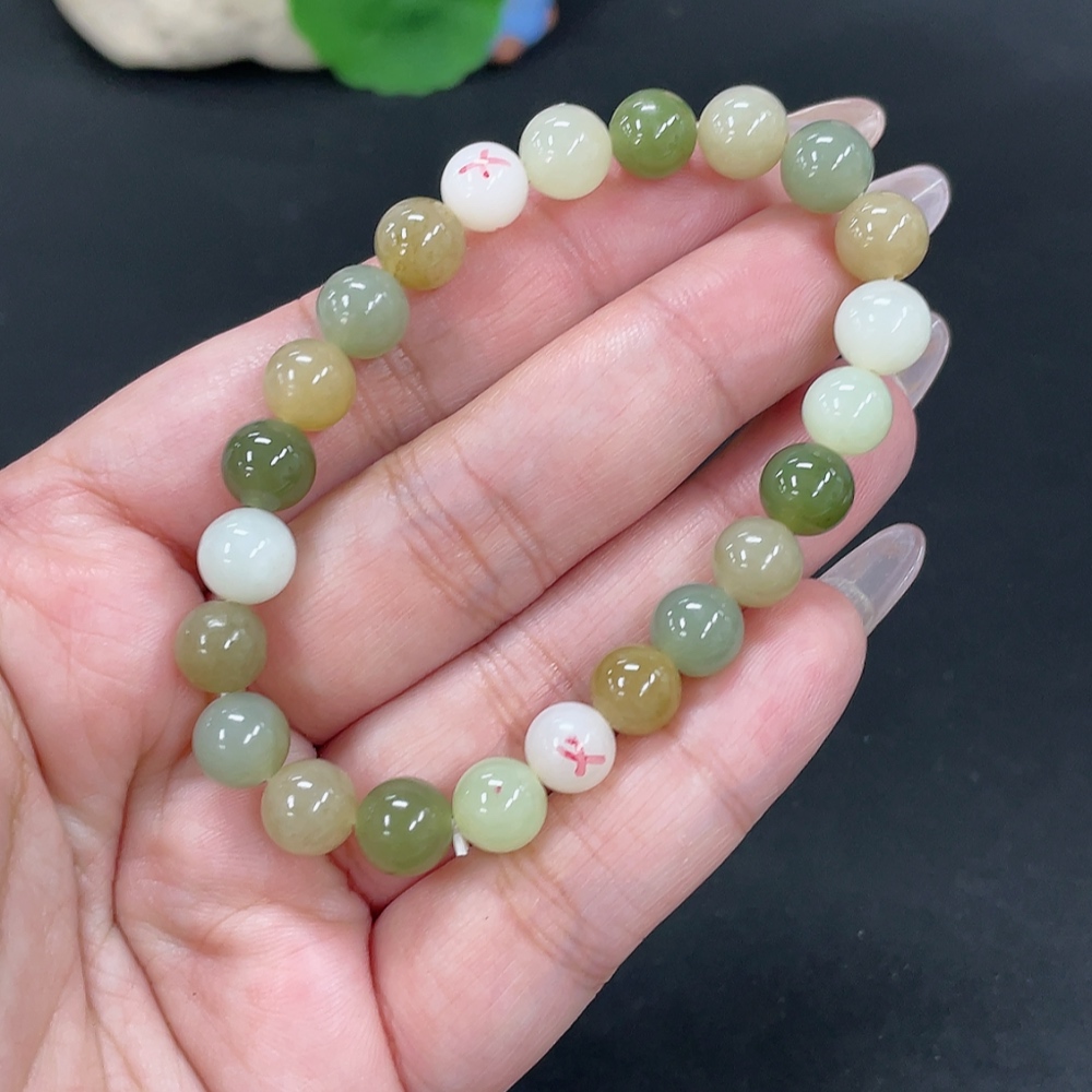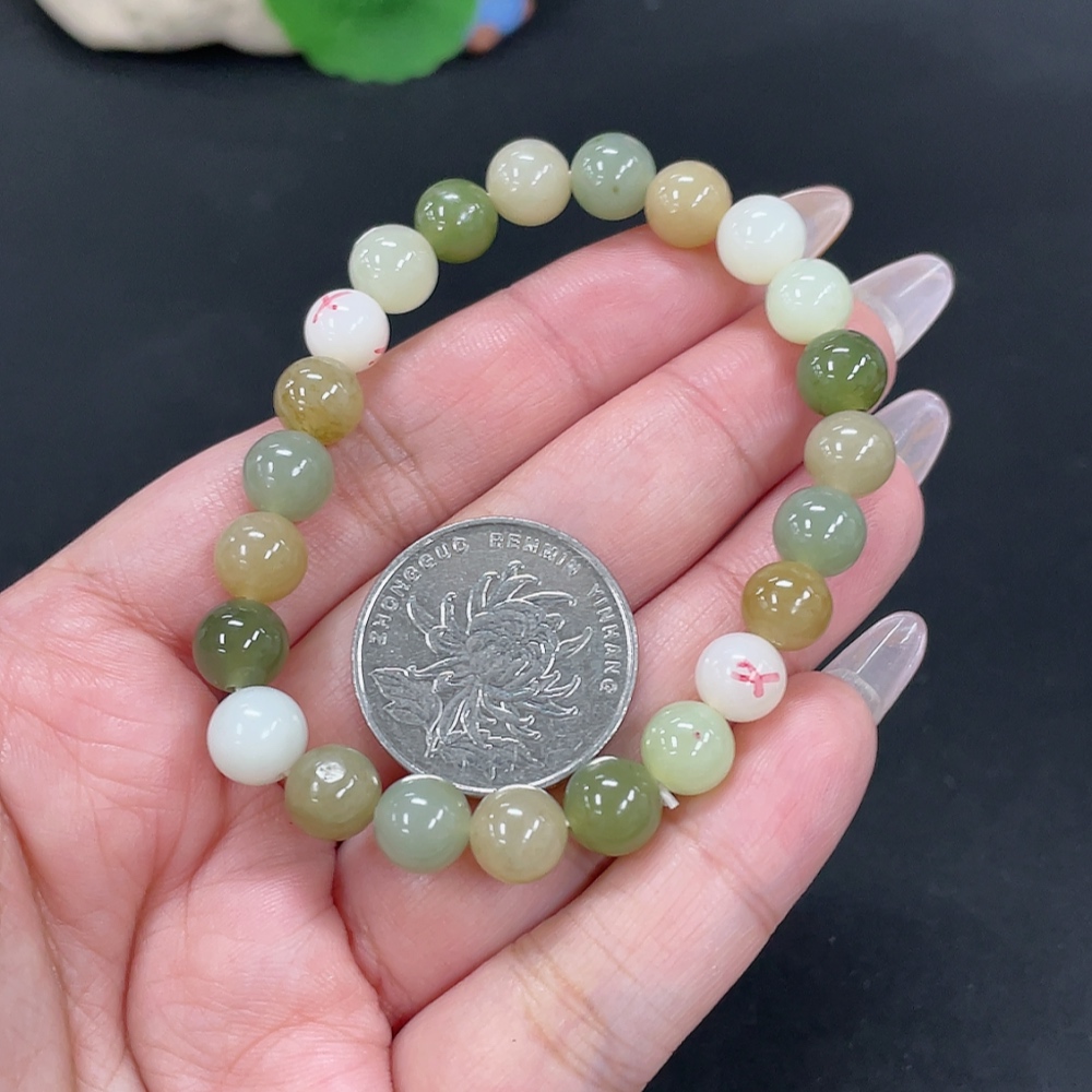 Hetian Jade Bracelet, Approx. 8mm Beads, Total Weight About 17.9g, Non-Hetian Jade Beads Included, With Impurities
