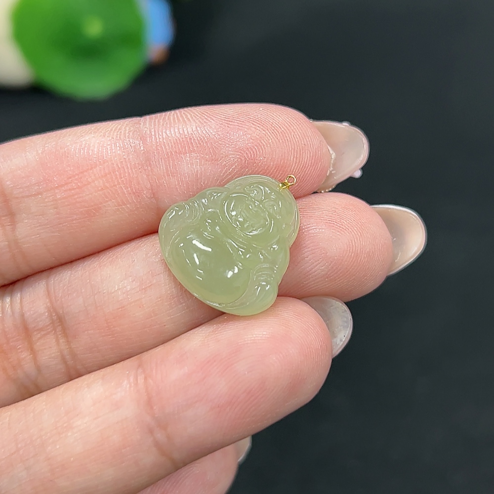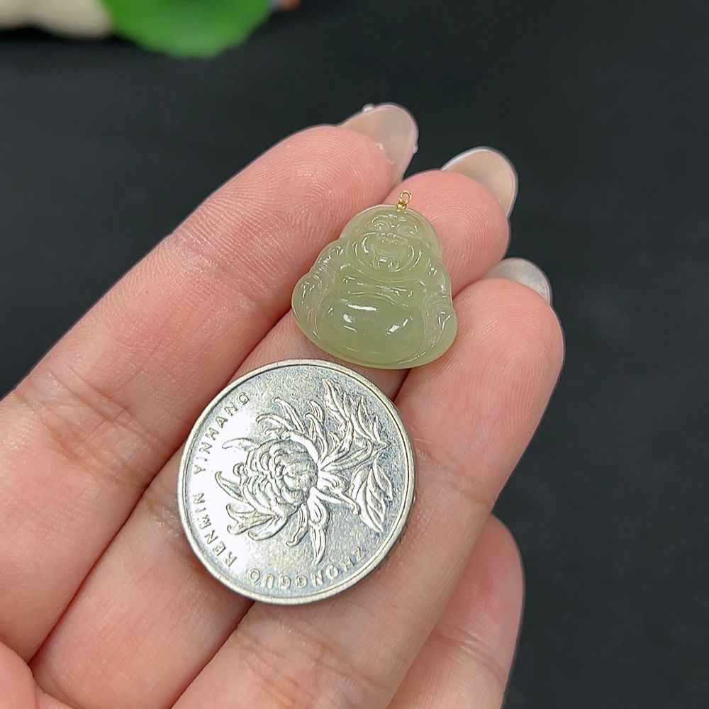 Hetian Jade Pendant - Buddha, No Stamp, Gold Content 75%, Total Weight Approx. 2.3g