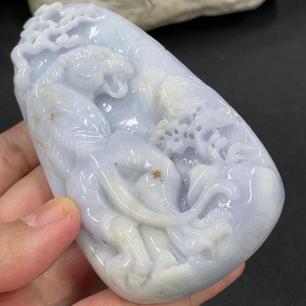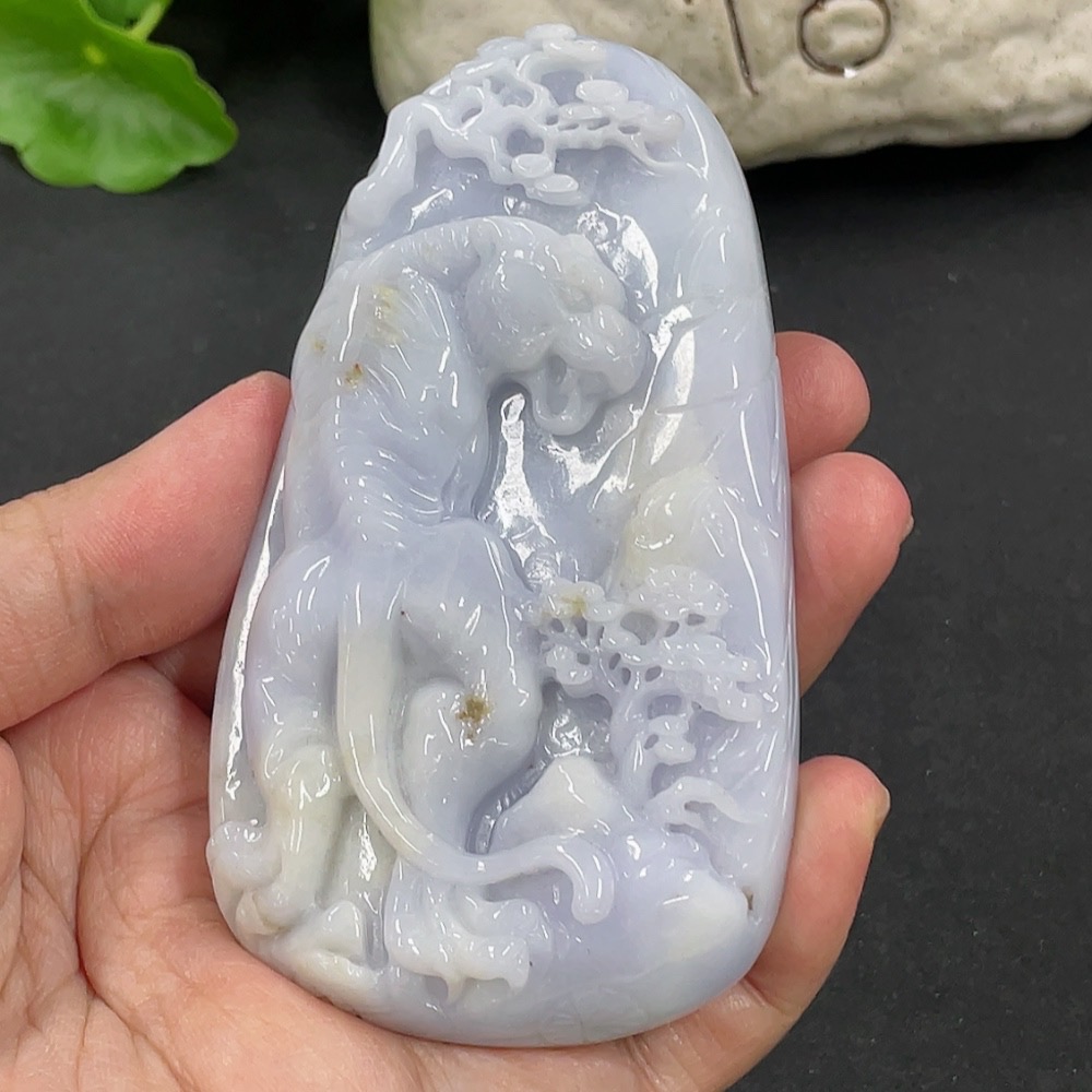 Jadeite Fierce Tiger Climbing Mountain Pendant, Total Weight Approximately 178.8g