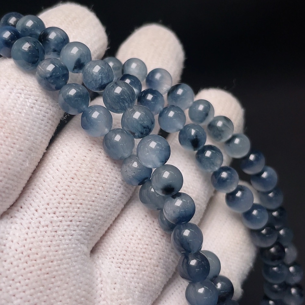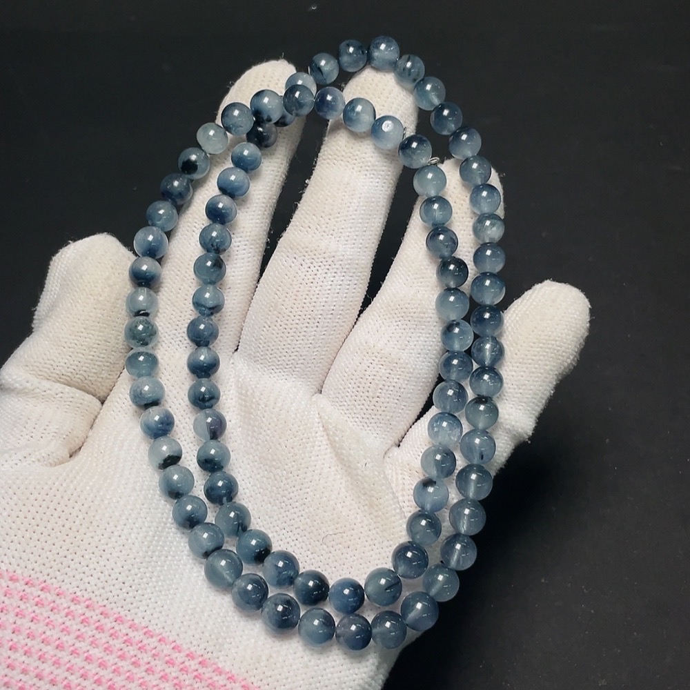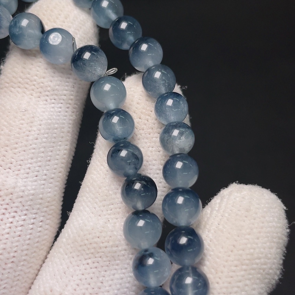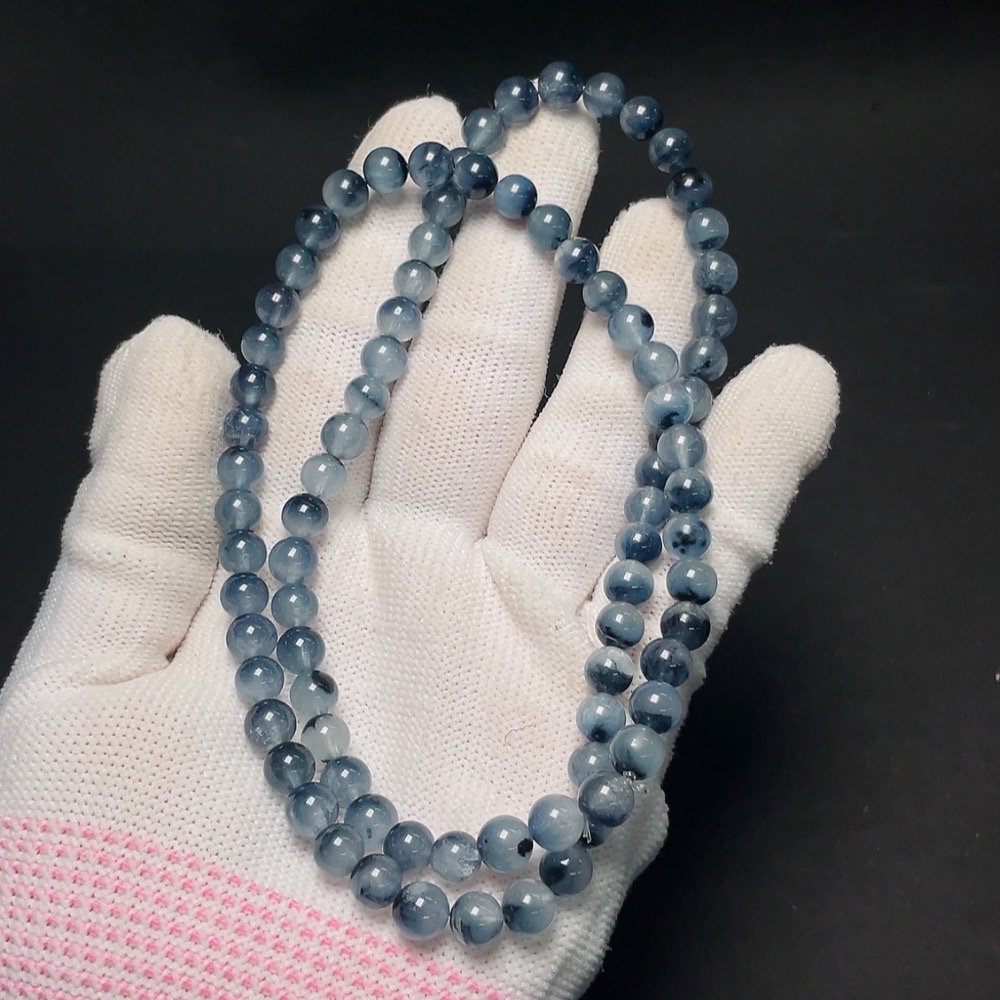 Crystal Bead Chain with Visible Organic Inclusions, Total Weight Approx. 33.1g, 6.6mm Beads
