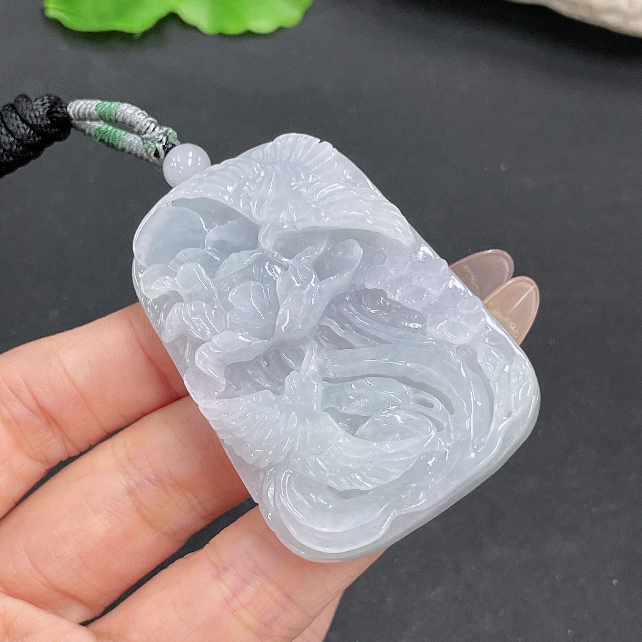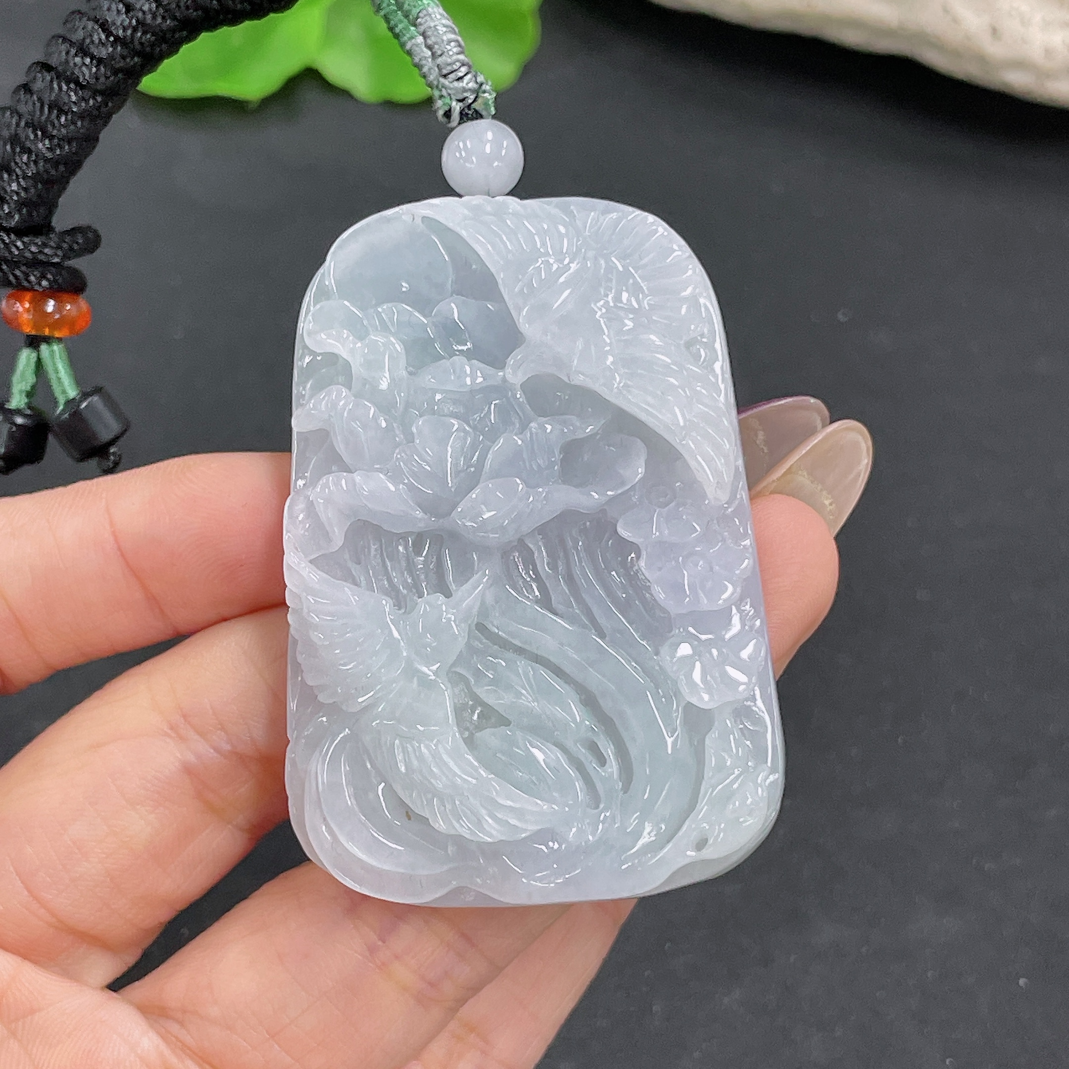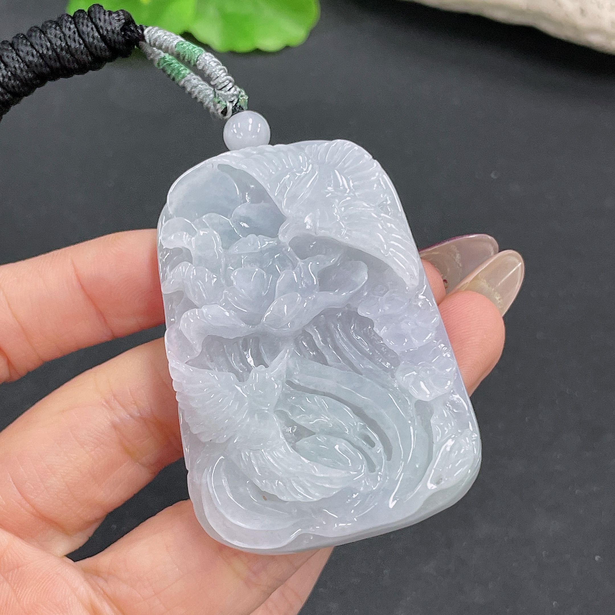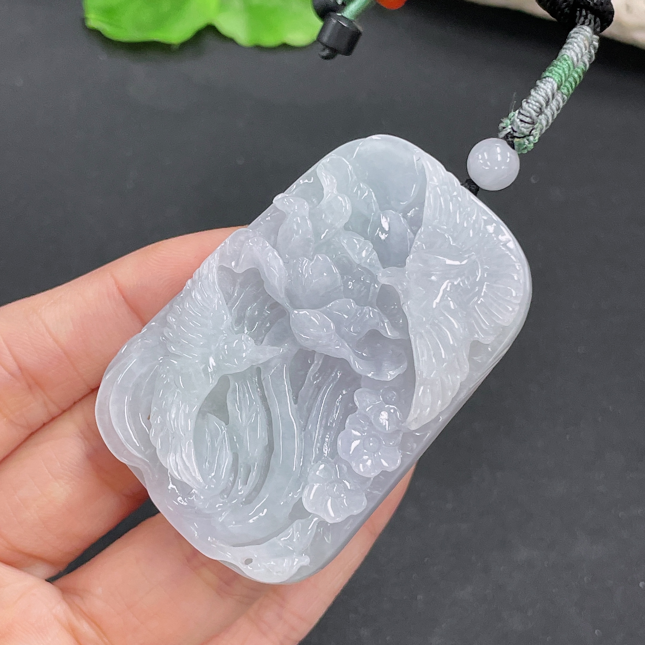 Jadeite Pendant Phoenix and Peony Design with Cord Total Weight Approx.50.72g