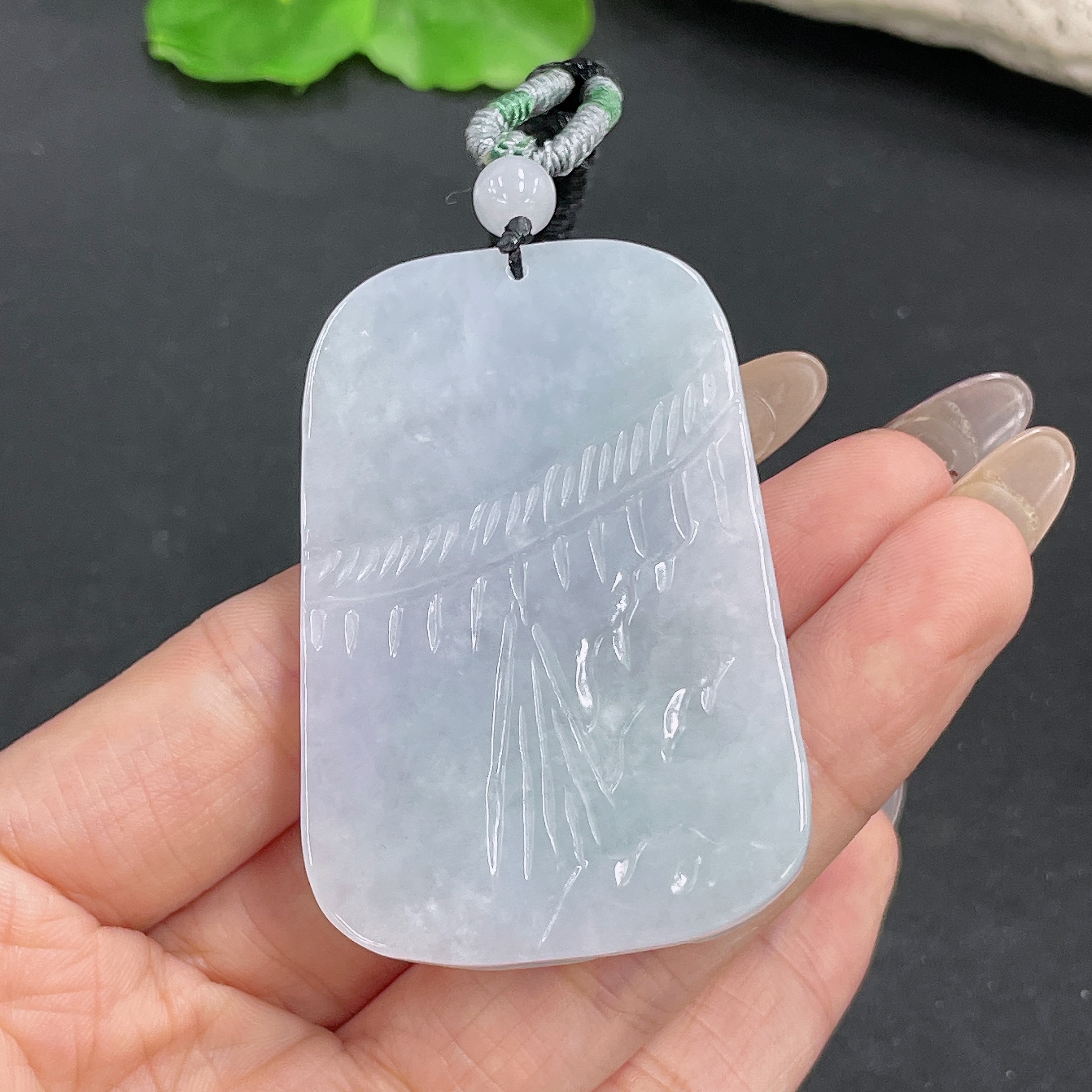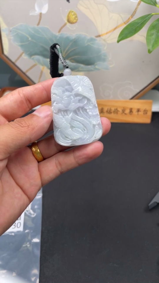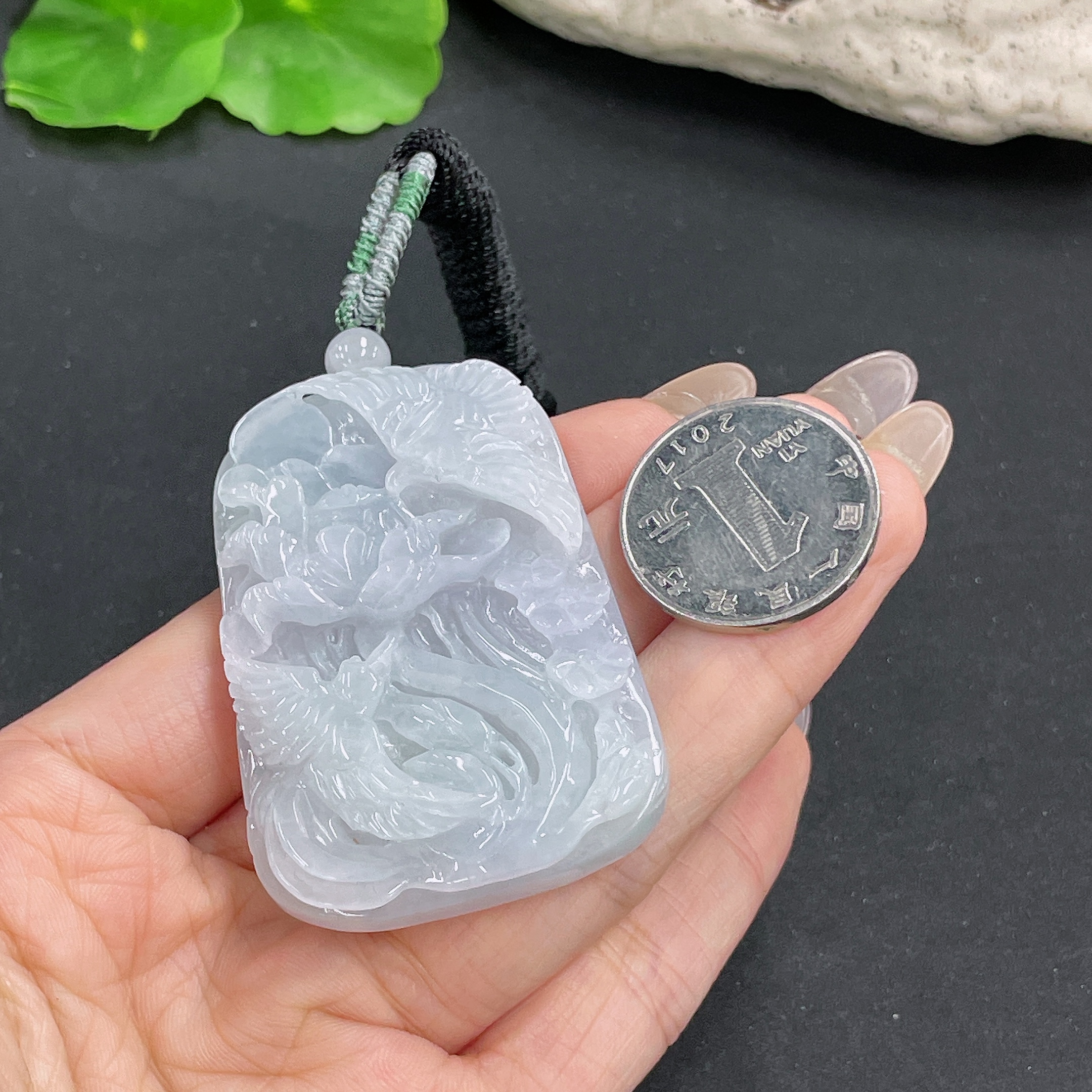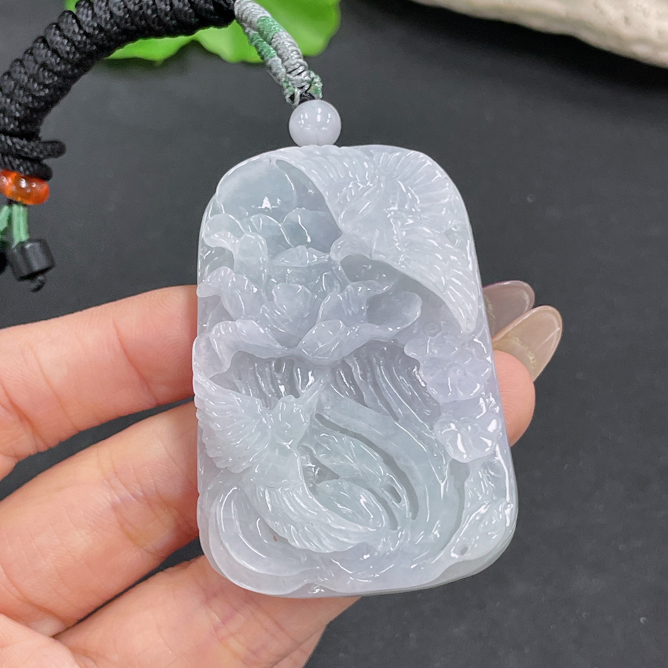 Jadeite Pendant Phoenix and Peony Design with Cord Total Weight Approx.50.72g