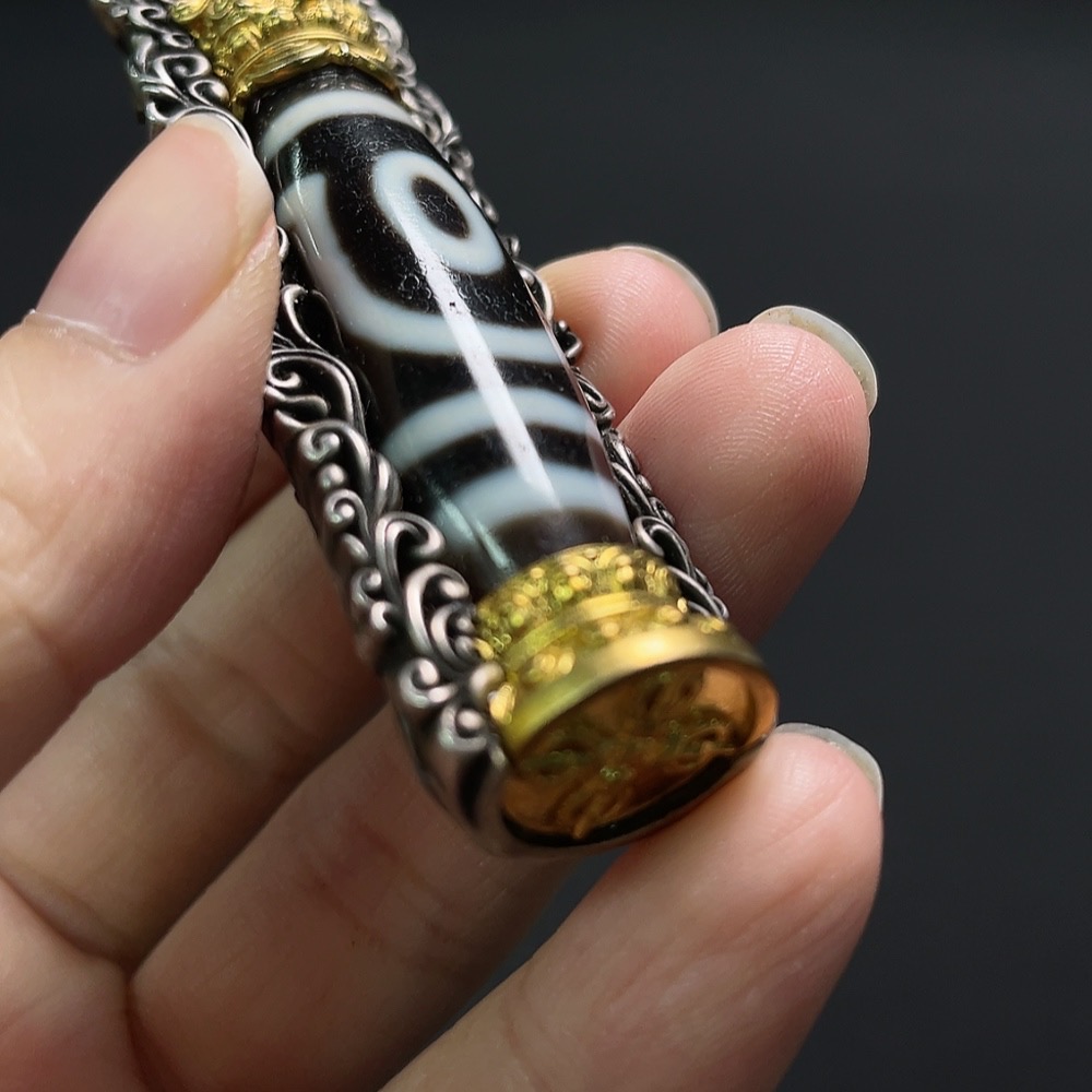Dzi Bead Pendant (Total weight approx. 35.3g, approx. 12mm in diameter)