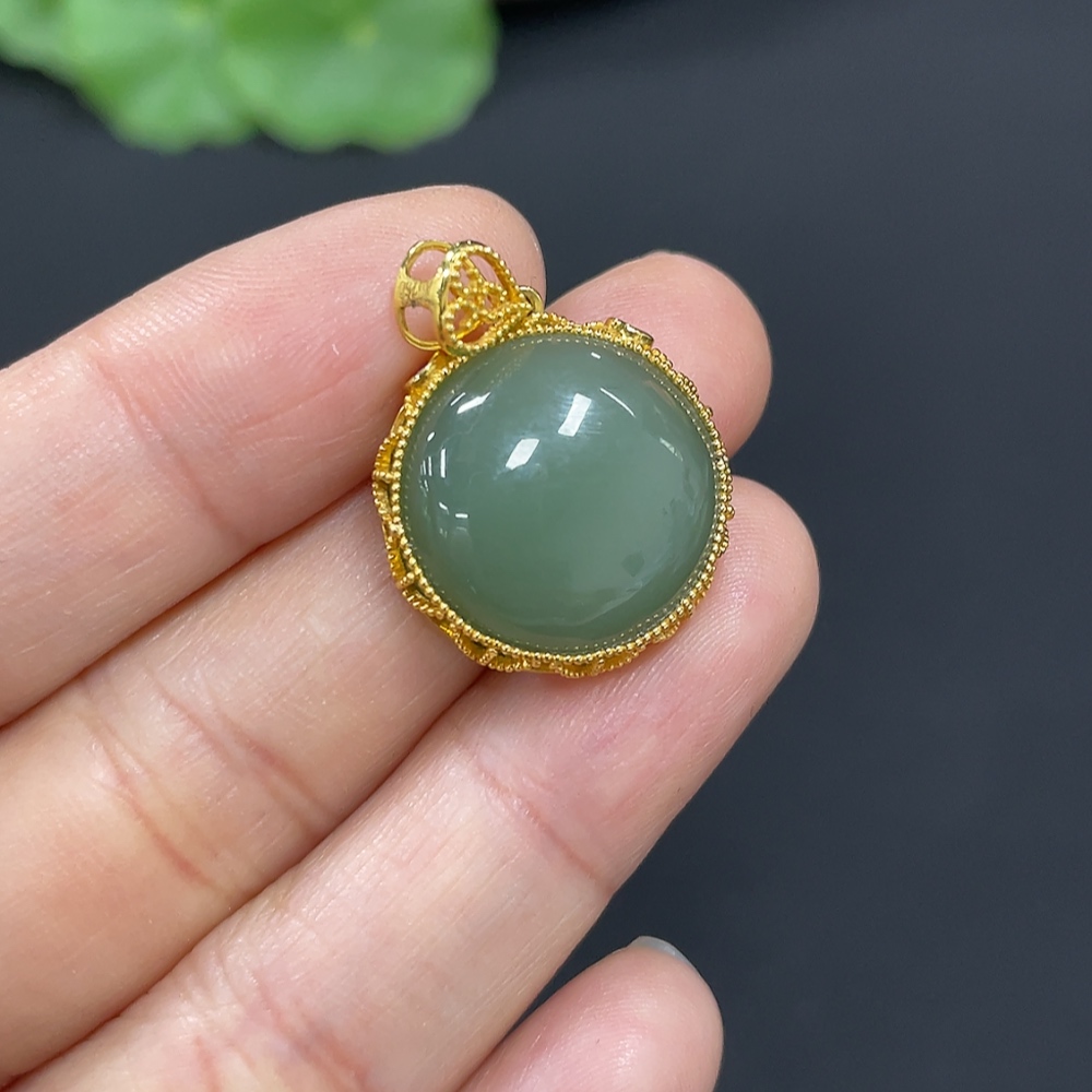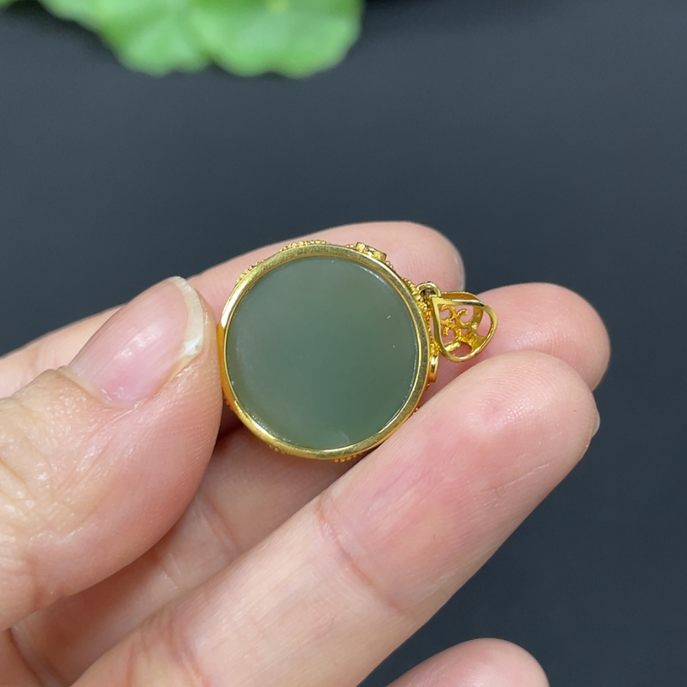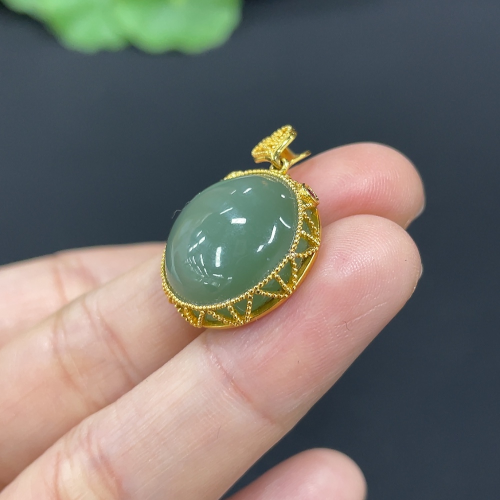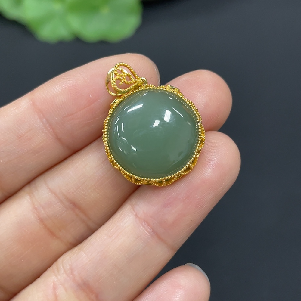 Hetian Jade Cabochon Pendant with 18K Gold, Total Weight Approx. 4.4g