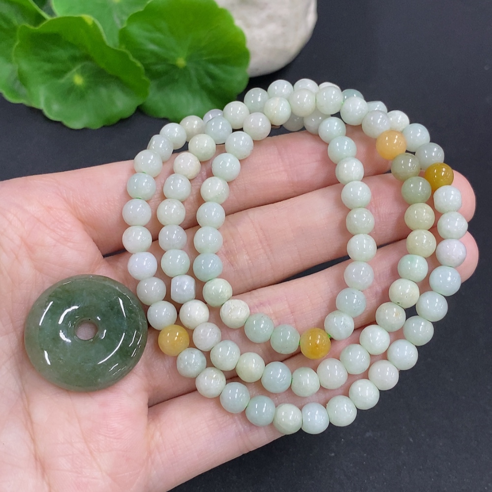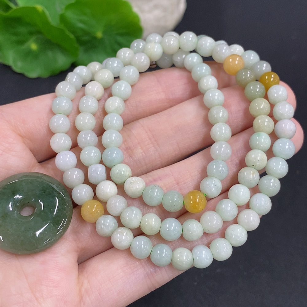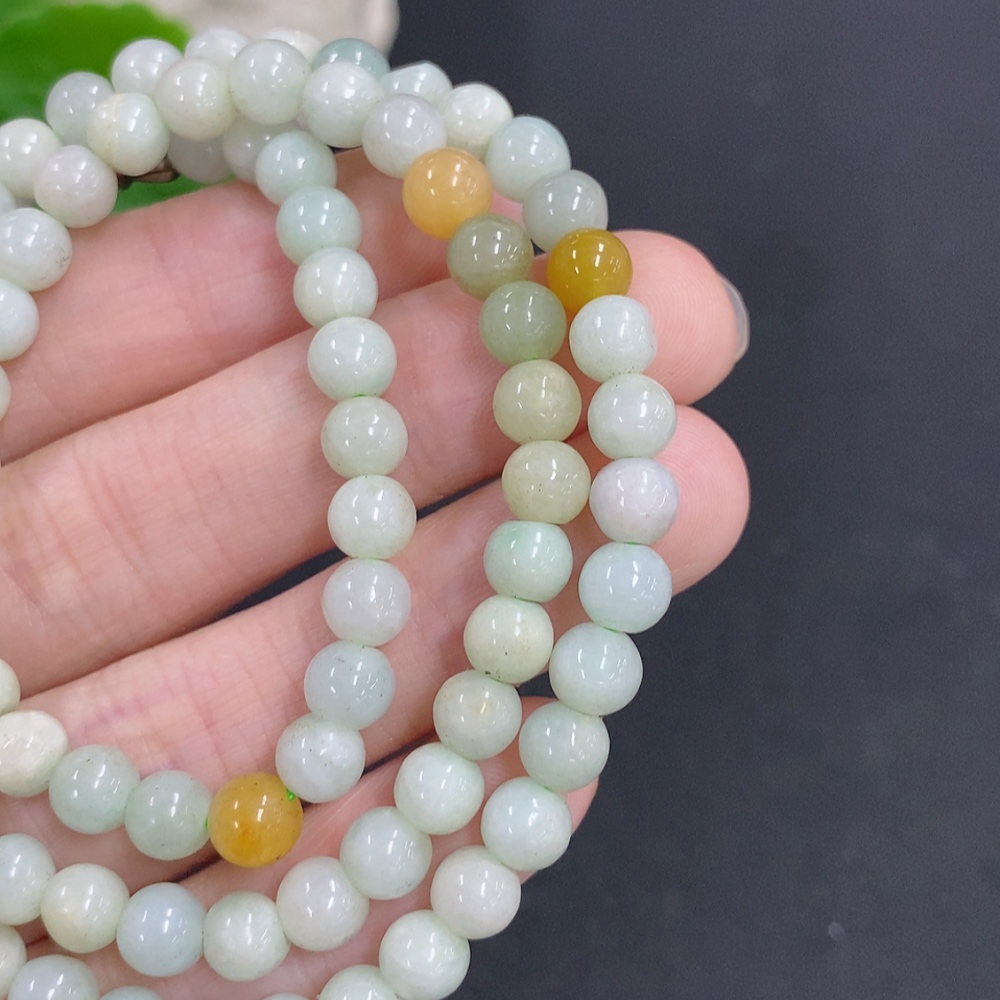 Jadeite Bead Necklace with Peace Buckle Sell as a Lot Approx 5.7mm Non-Gold (Yellow Beads Non-A)