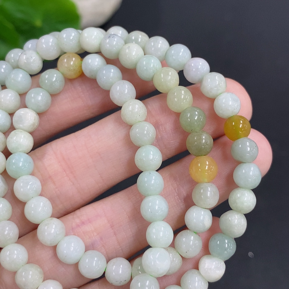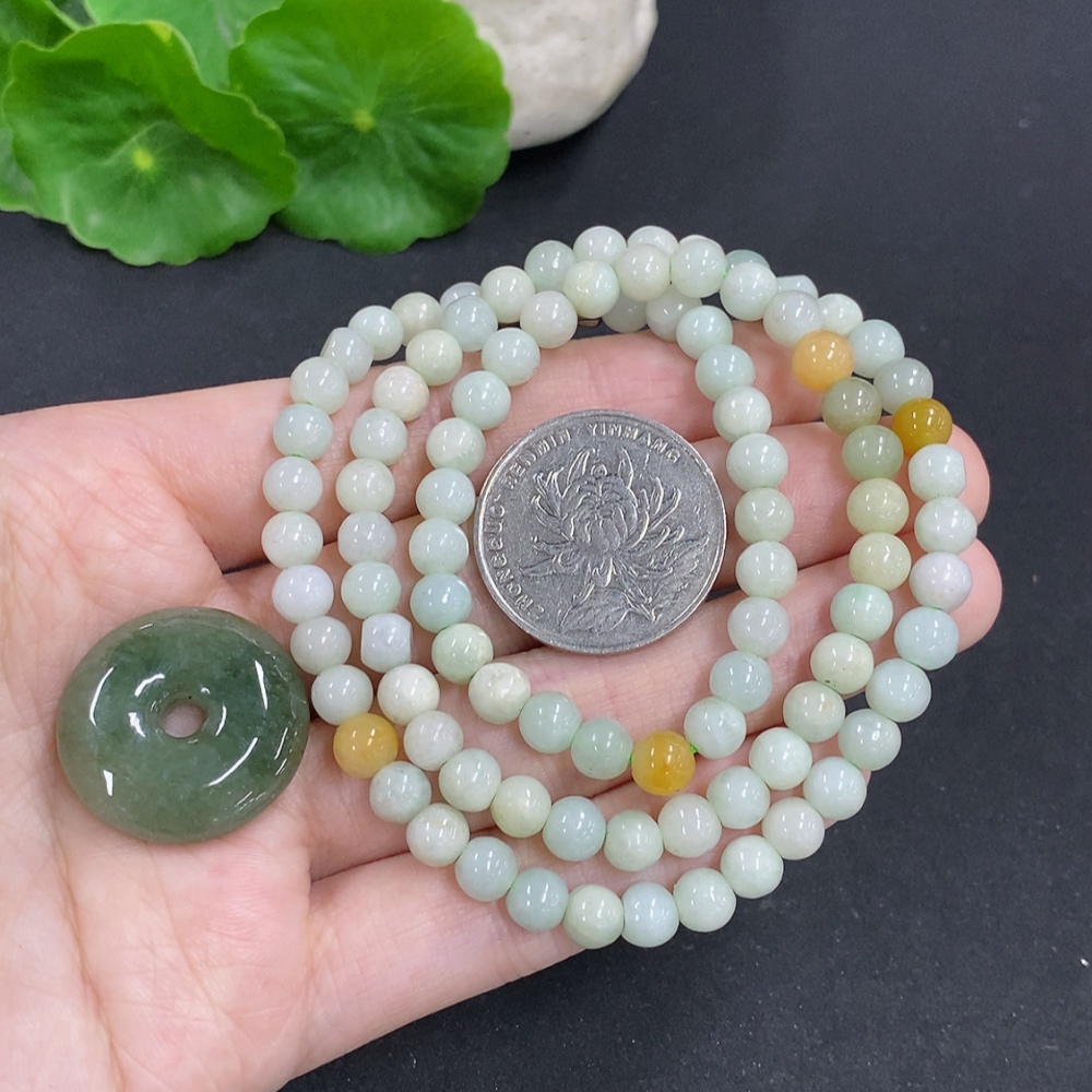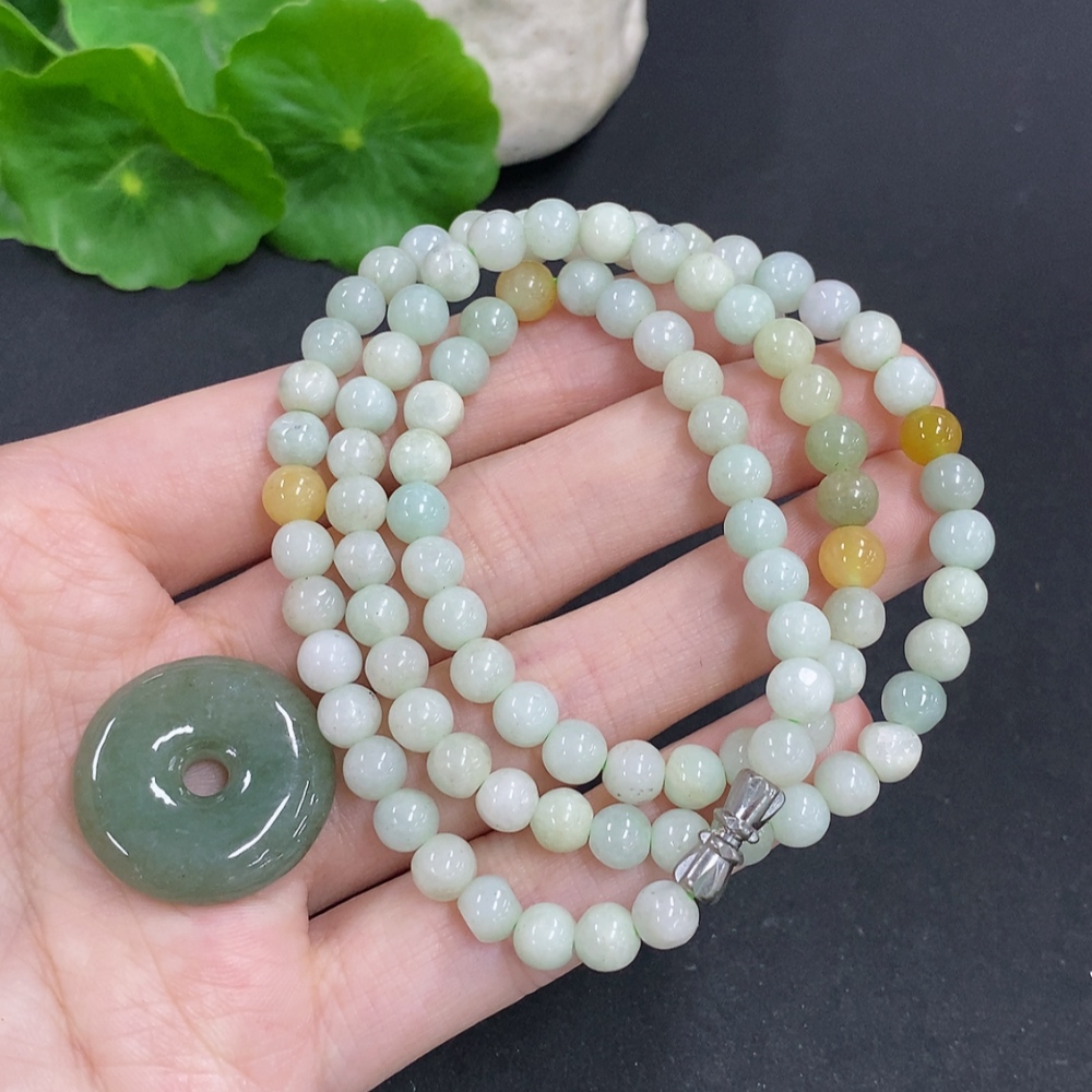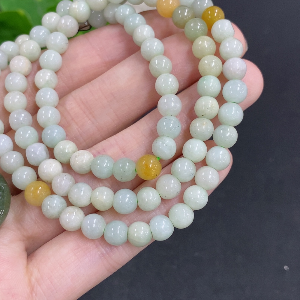 Jadeite Bead Necklace with Peace Buckle Sell as a Lot Approx 5.7mm Non-Gold (Yellow Beads Non-A)