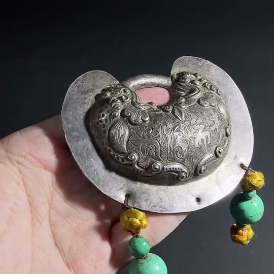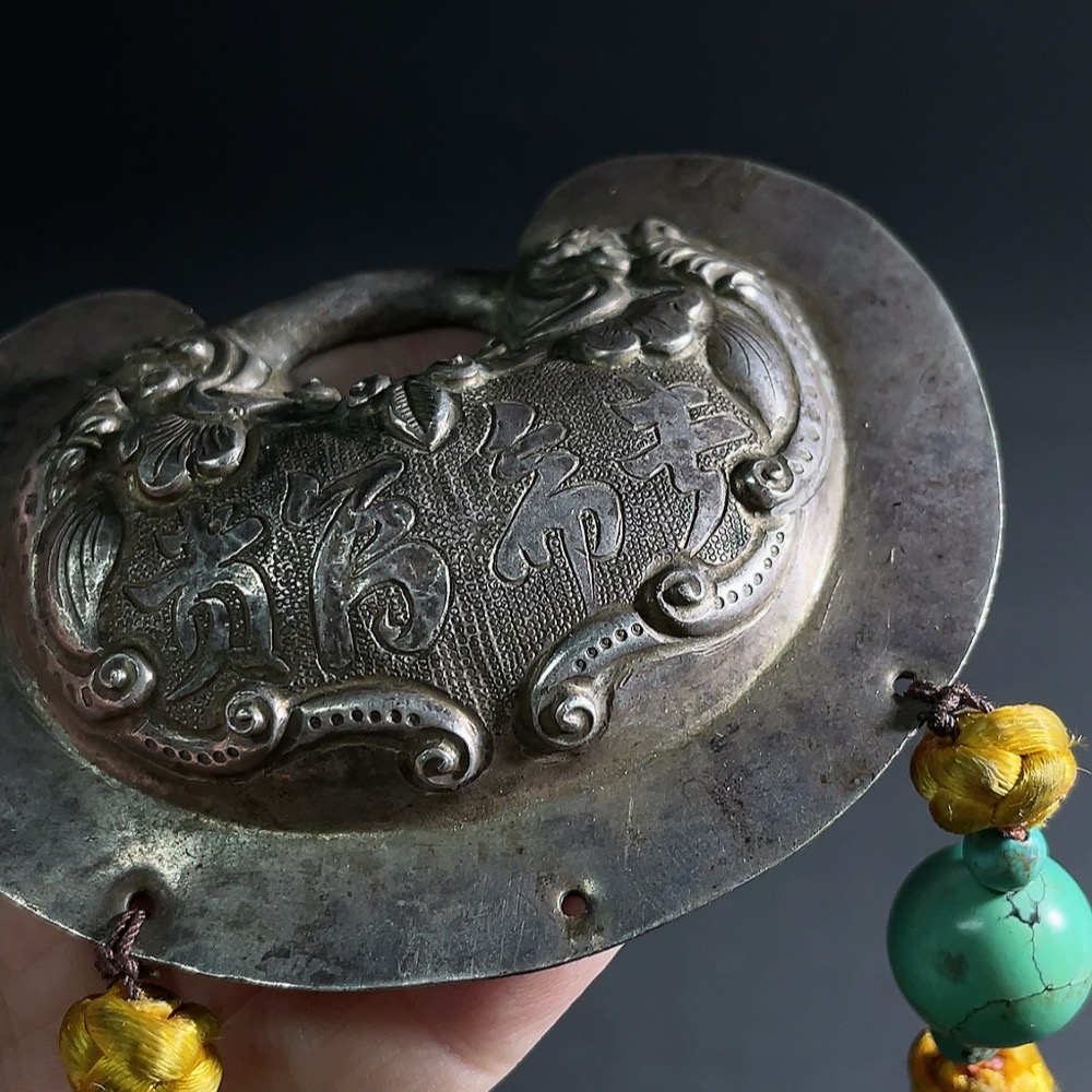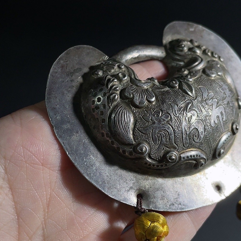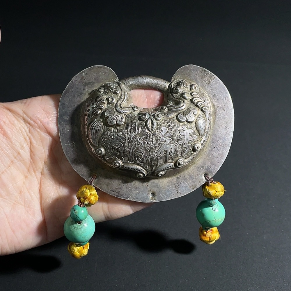Doubtful Late Qing to Republic Period Old Silver Lock Fish-to-Dragon Design Heavy Silver Miscellaneous