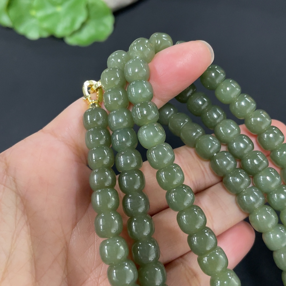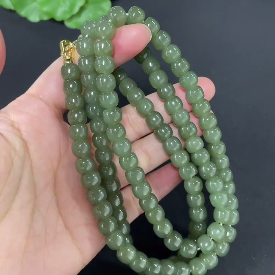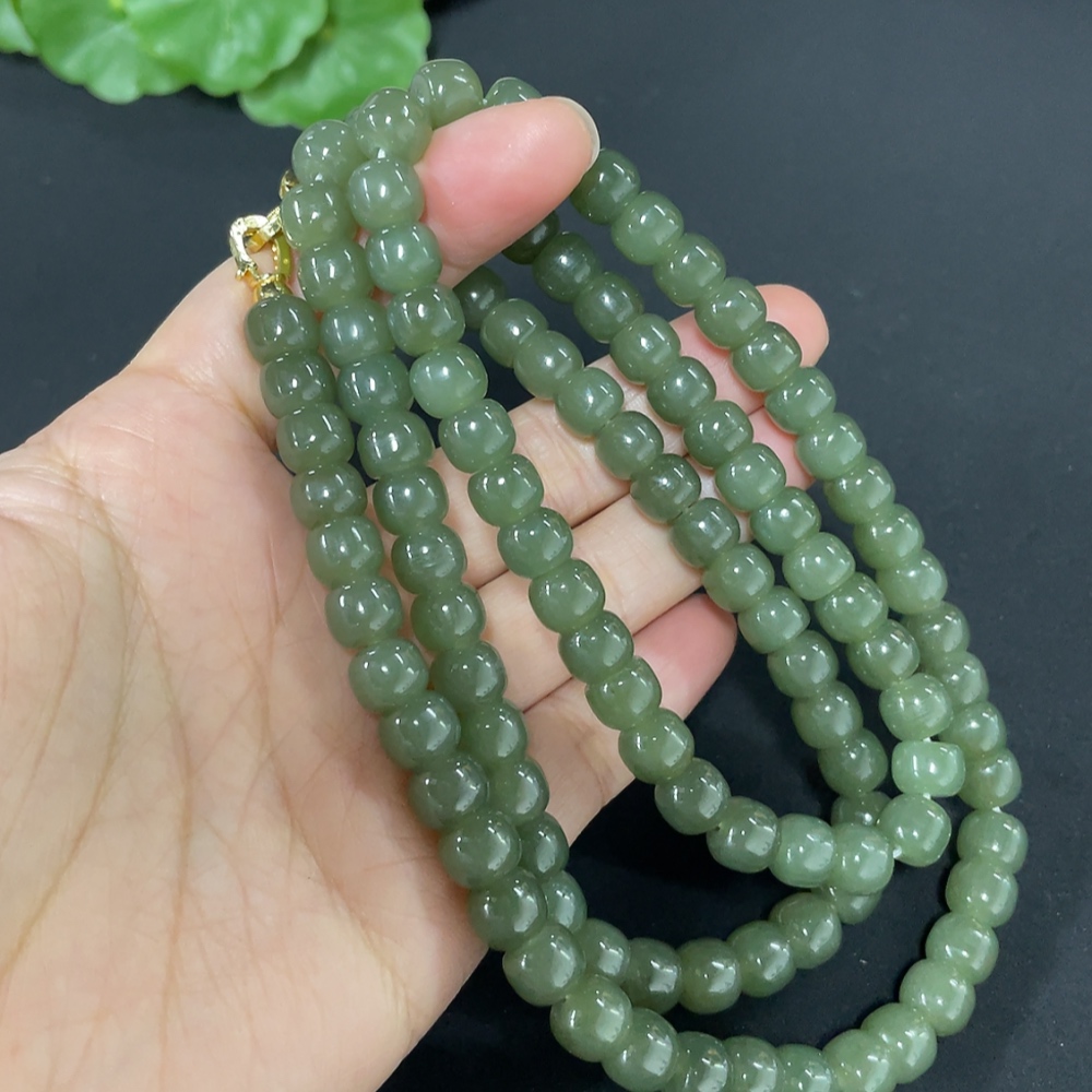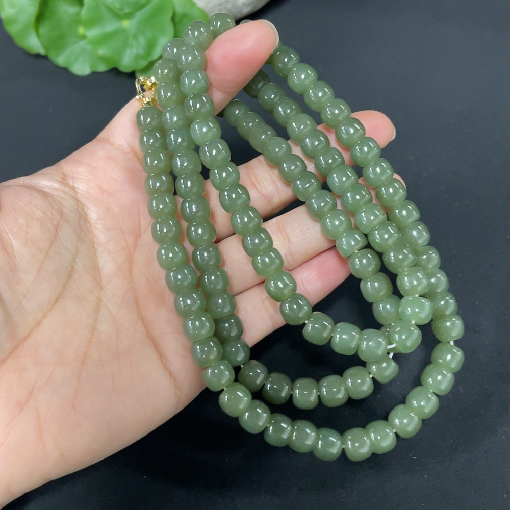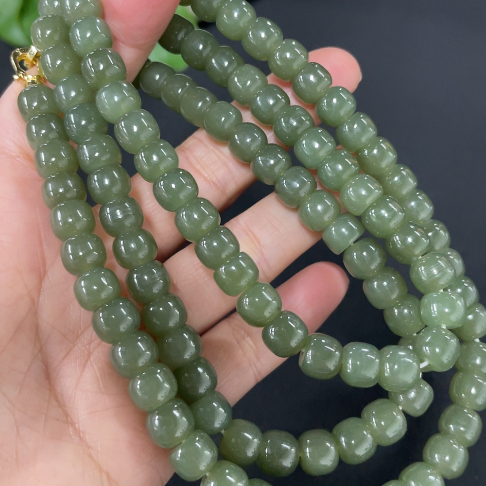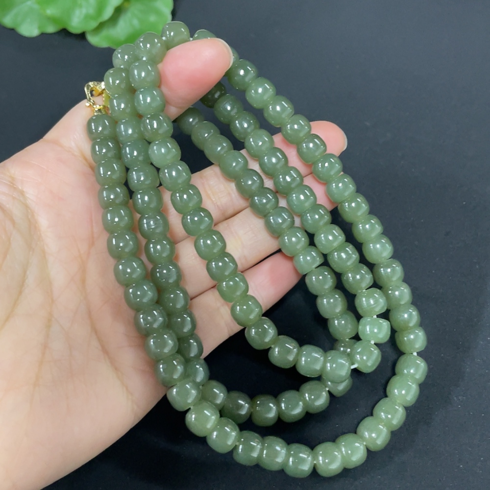 Hetian Jade Bead Necklace Approx. 7.5mm Non-Gold-Inlaid Total Weight Approx. 87.2g