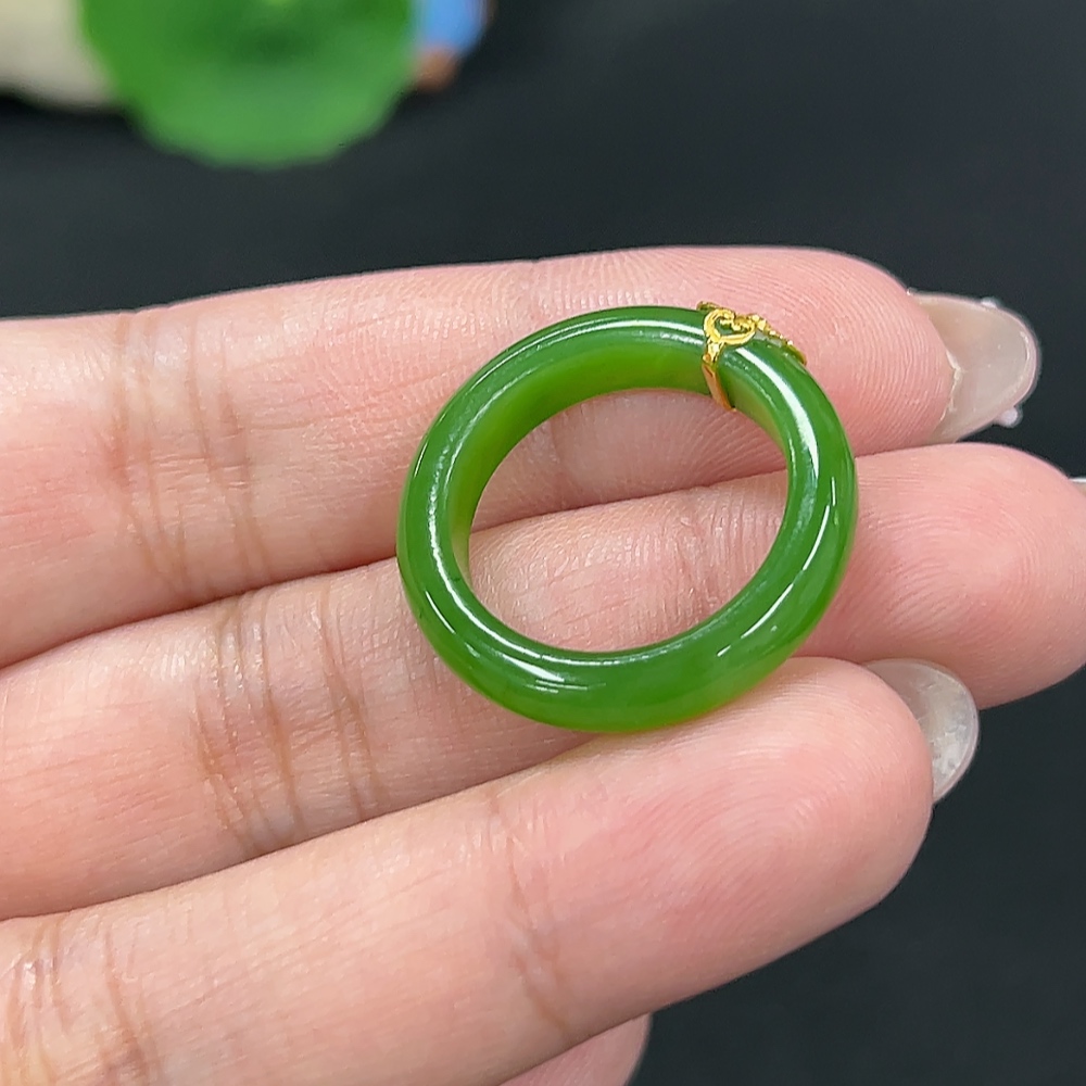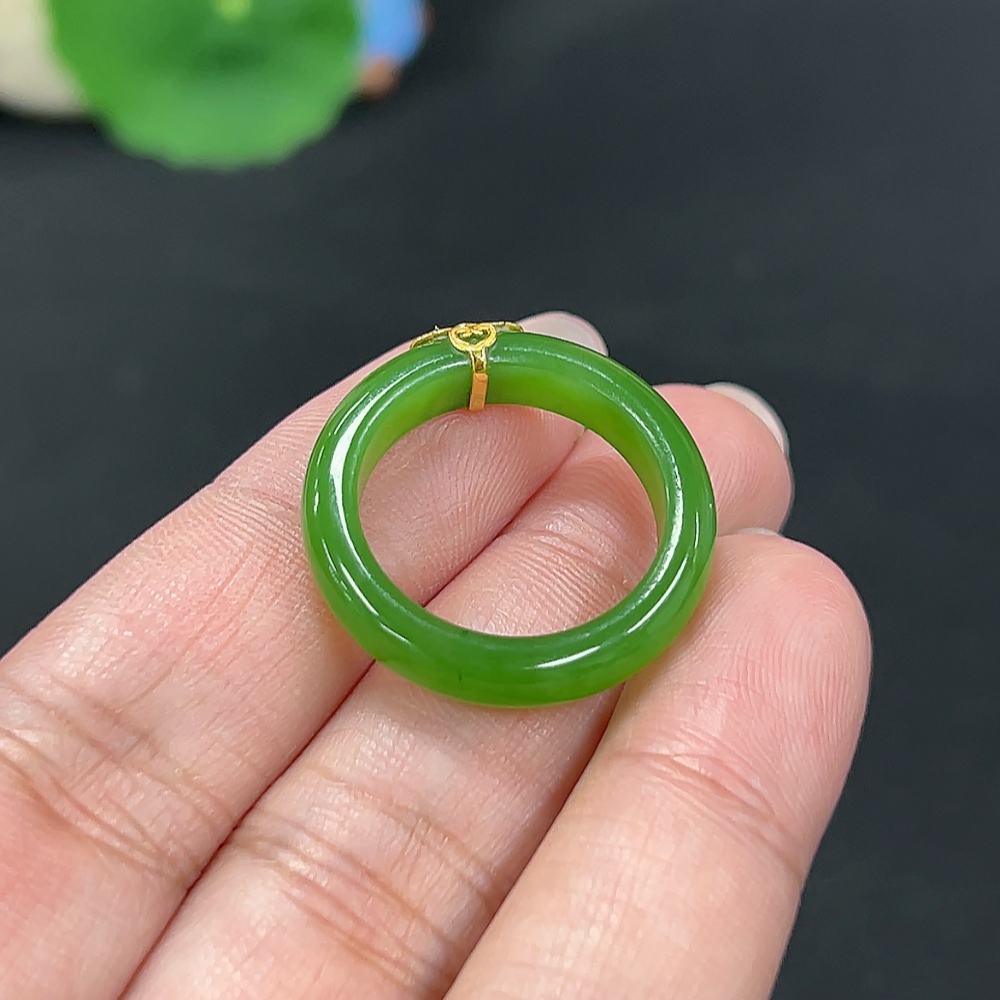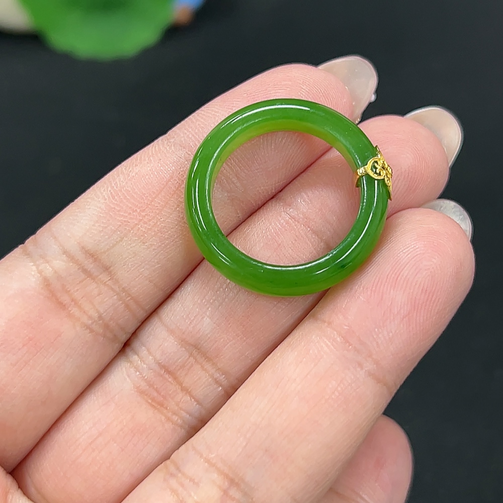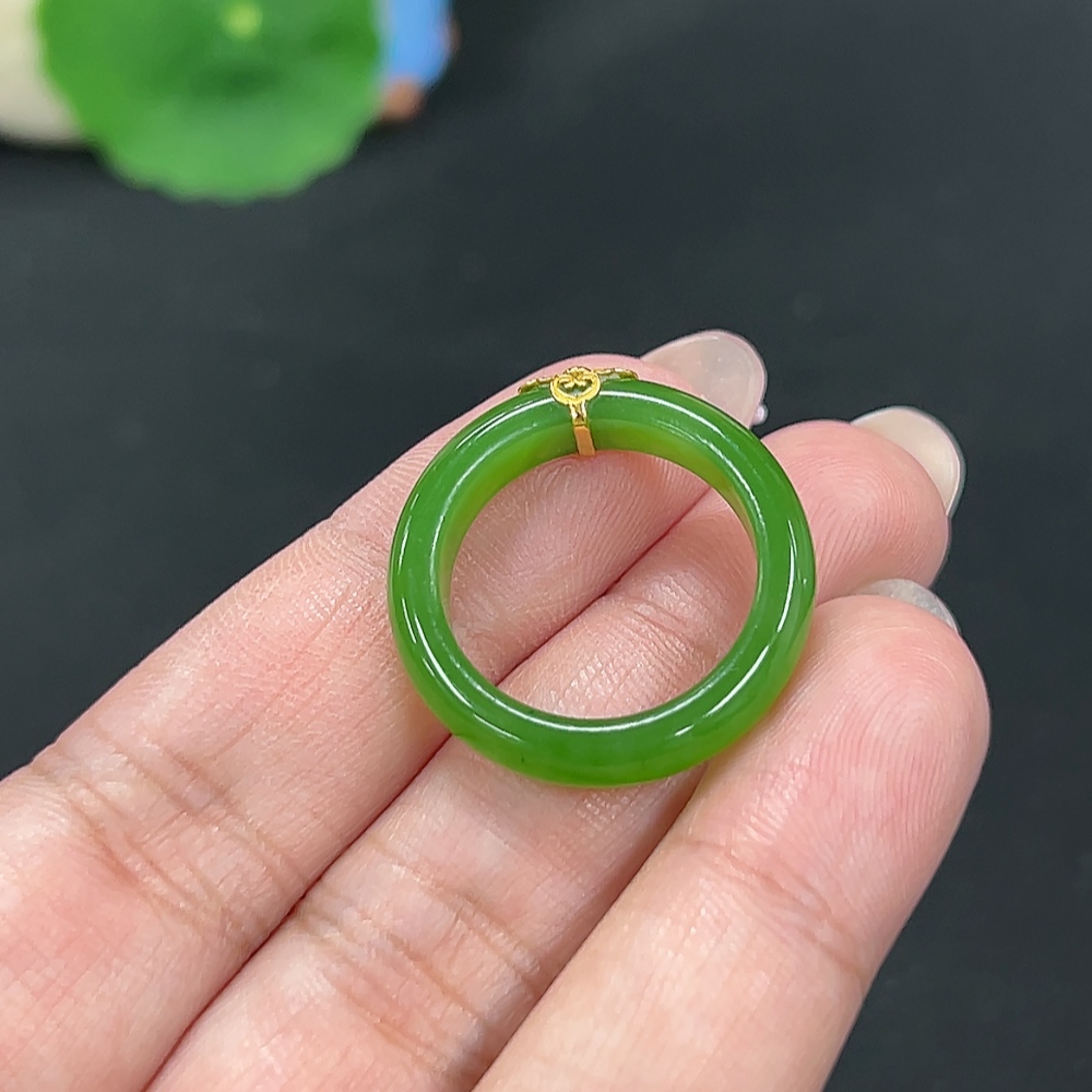 Hetian Jade Jasper Inlaid Ring Size 17 Total Weight Approx. 3.2g 18k