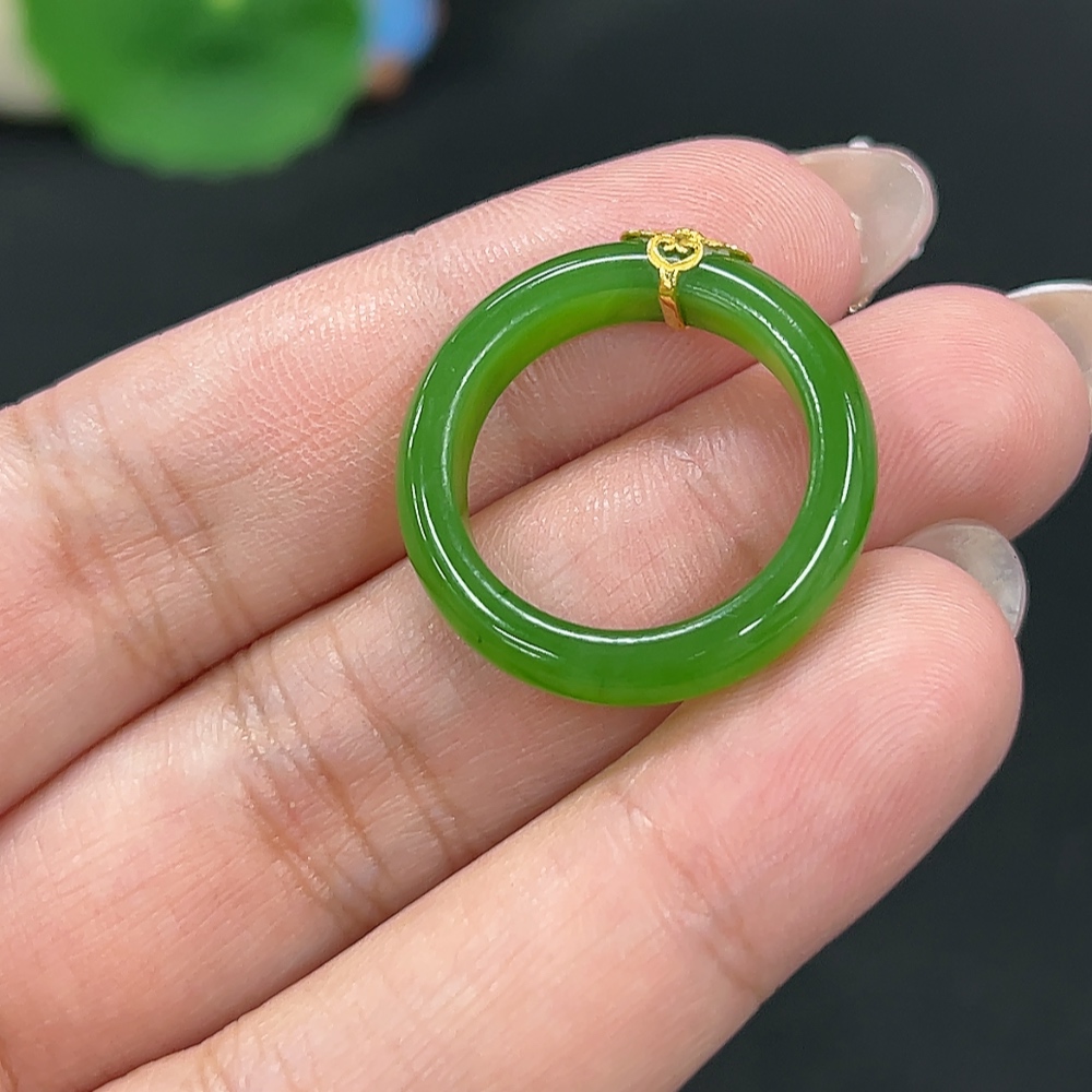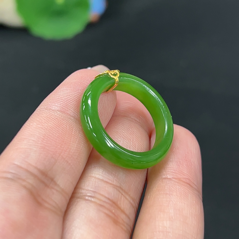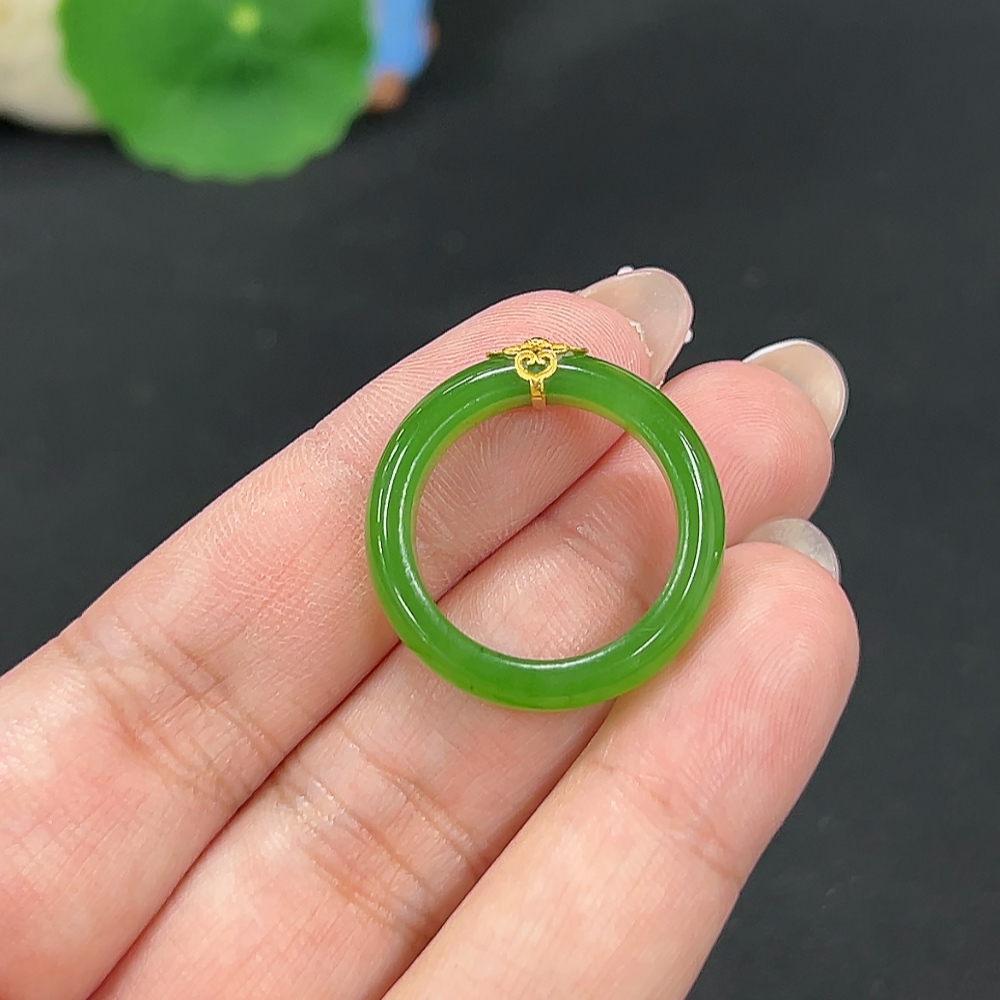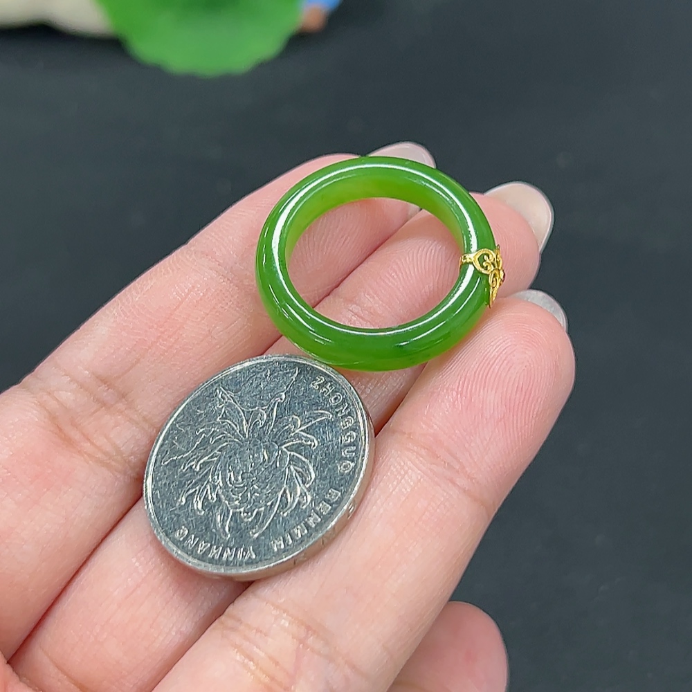 Hetian Jade Jasper Inlaid Ring Size 17 Total Weight Approx. 3.2g 18k