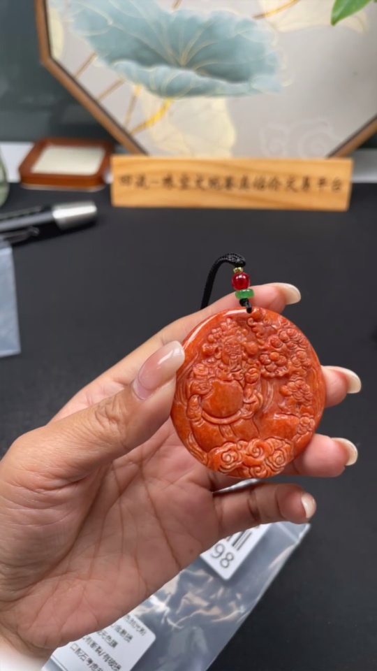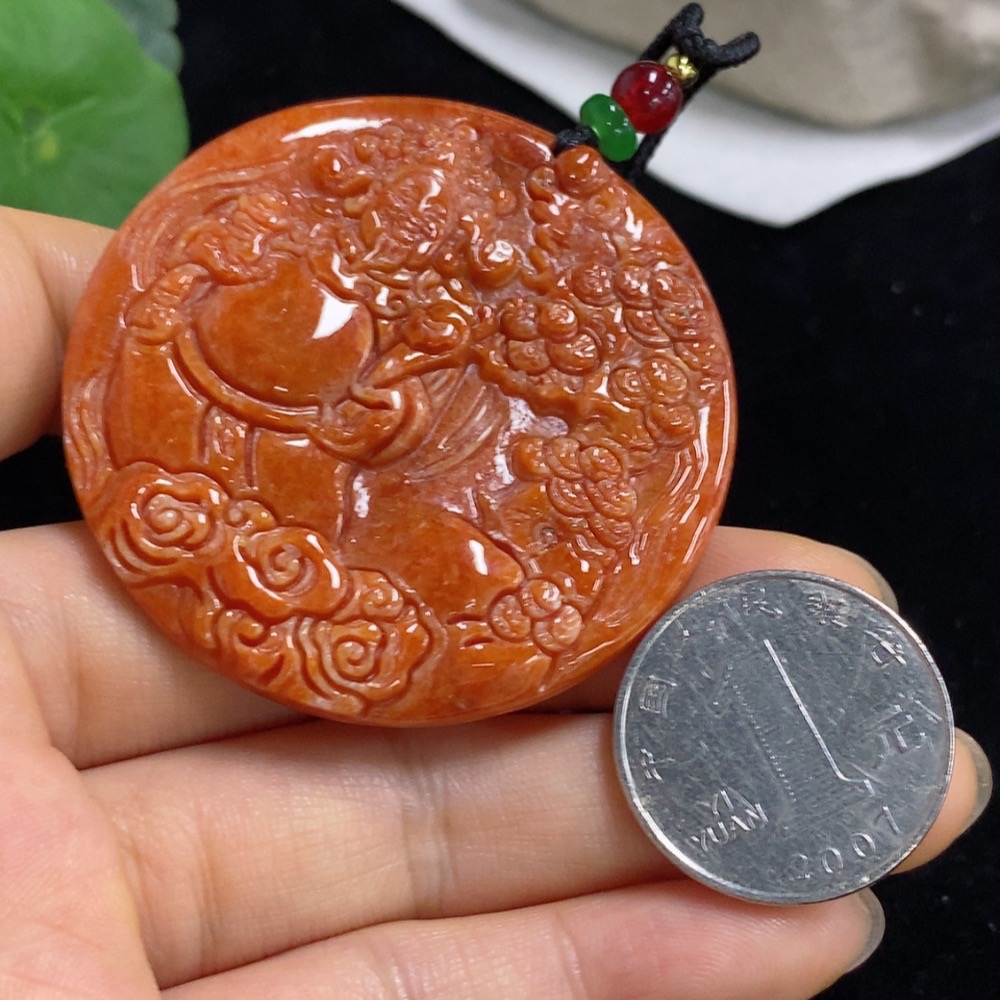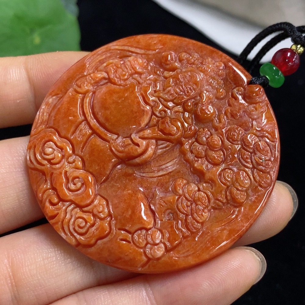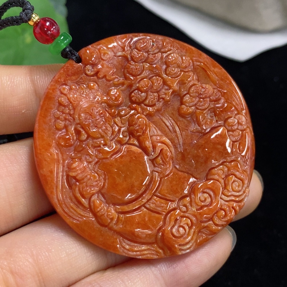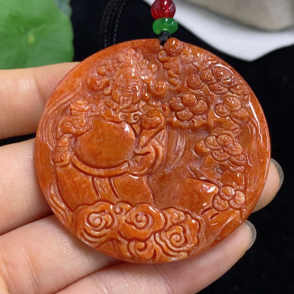 Jadeite God of Wealth Pendant Total Weight Approx. 33.4g (including rope weight) With Non-Grade A Beads