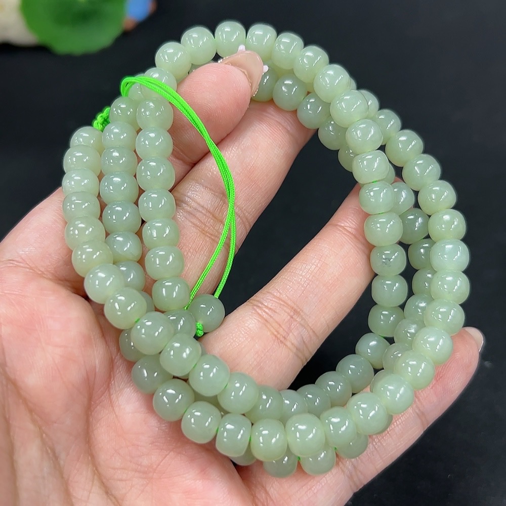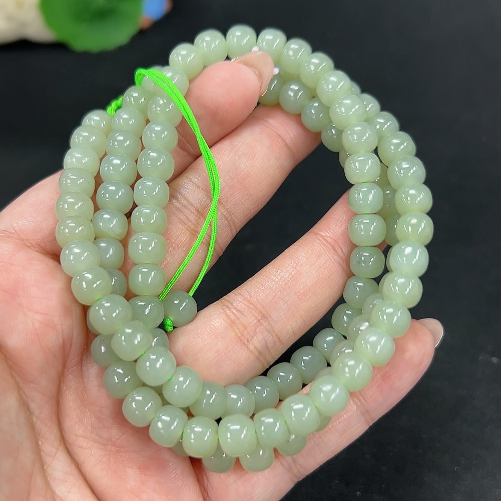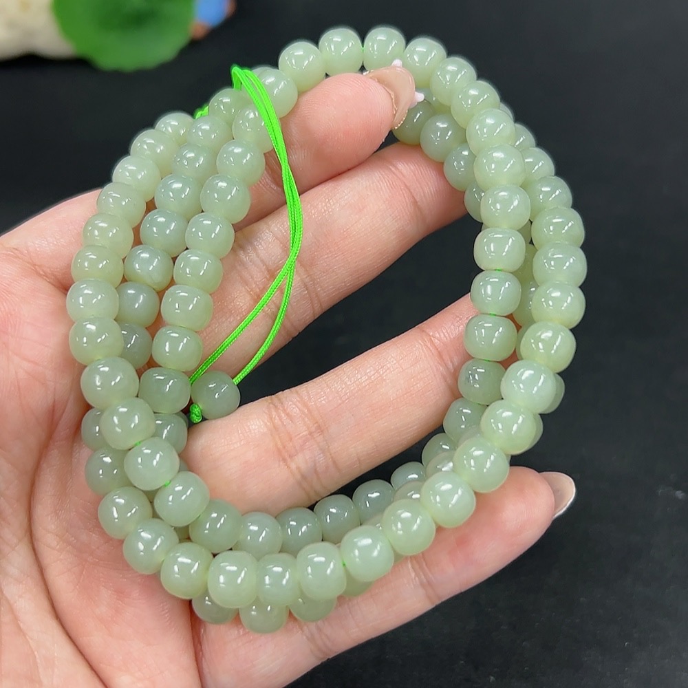 Hetian Jade Bead Necklace, Approx. 7.3mm, Total Weight Approx. 66.6g