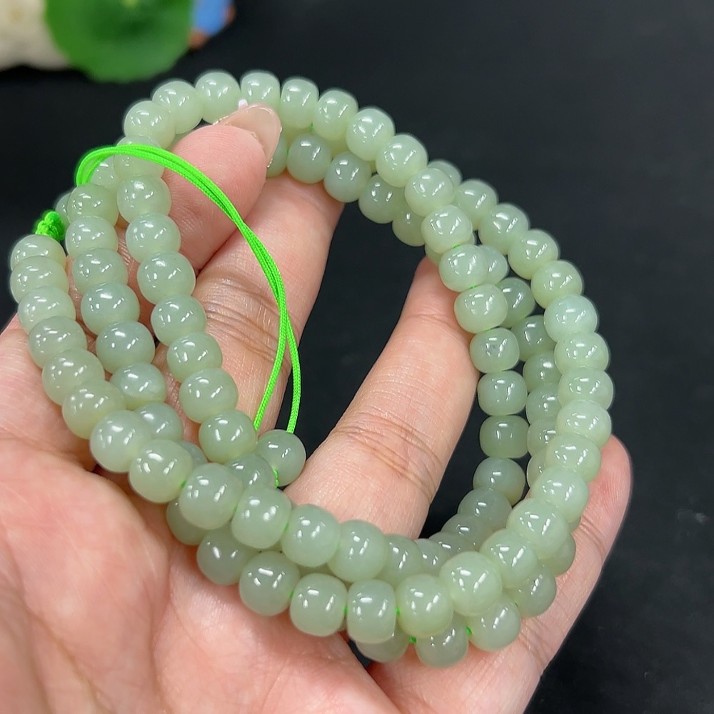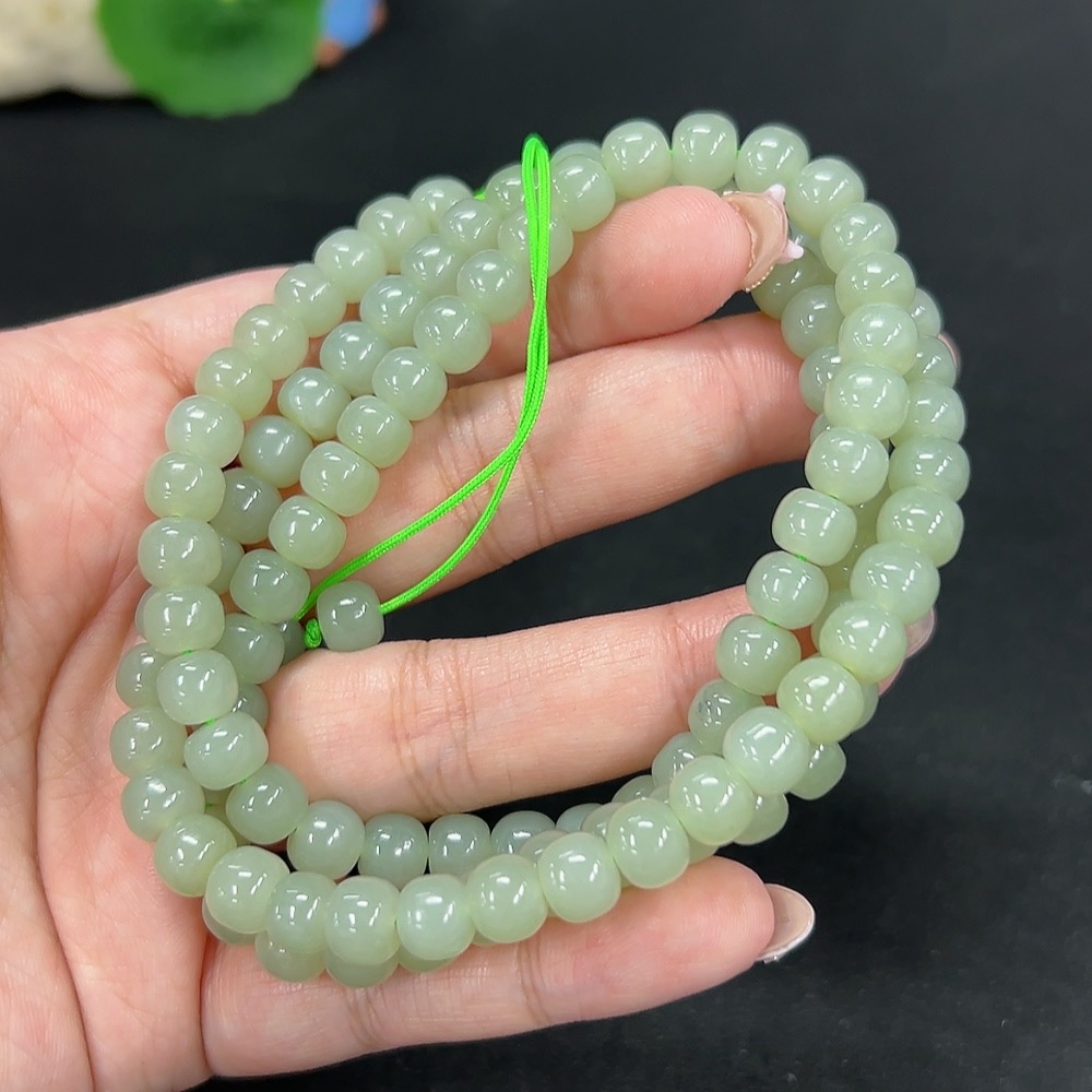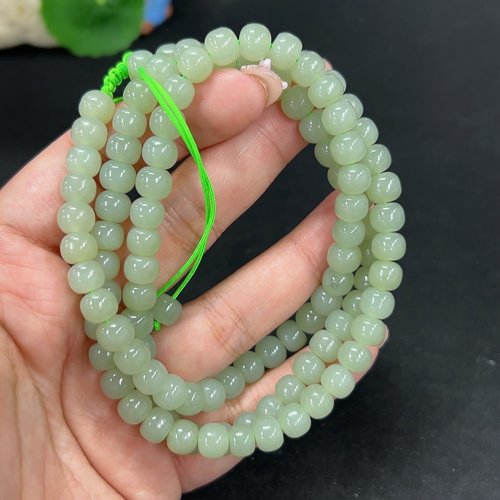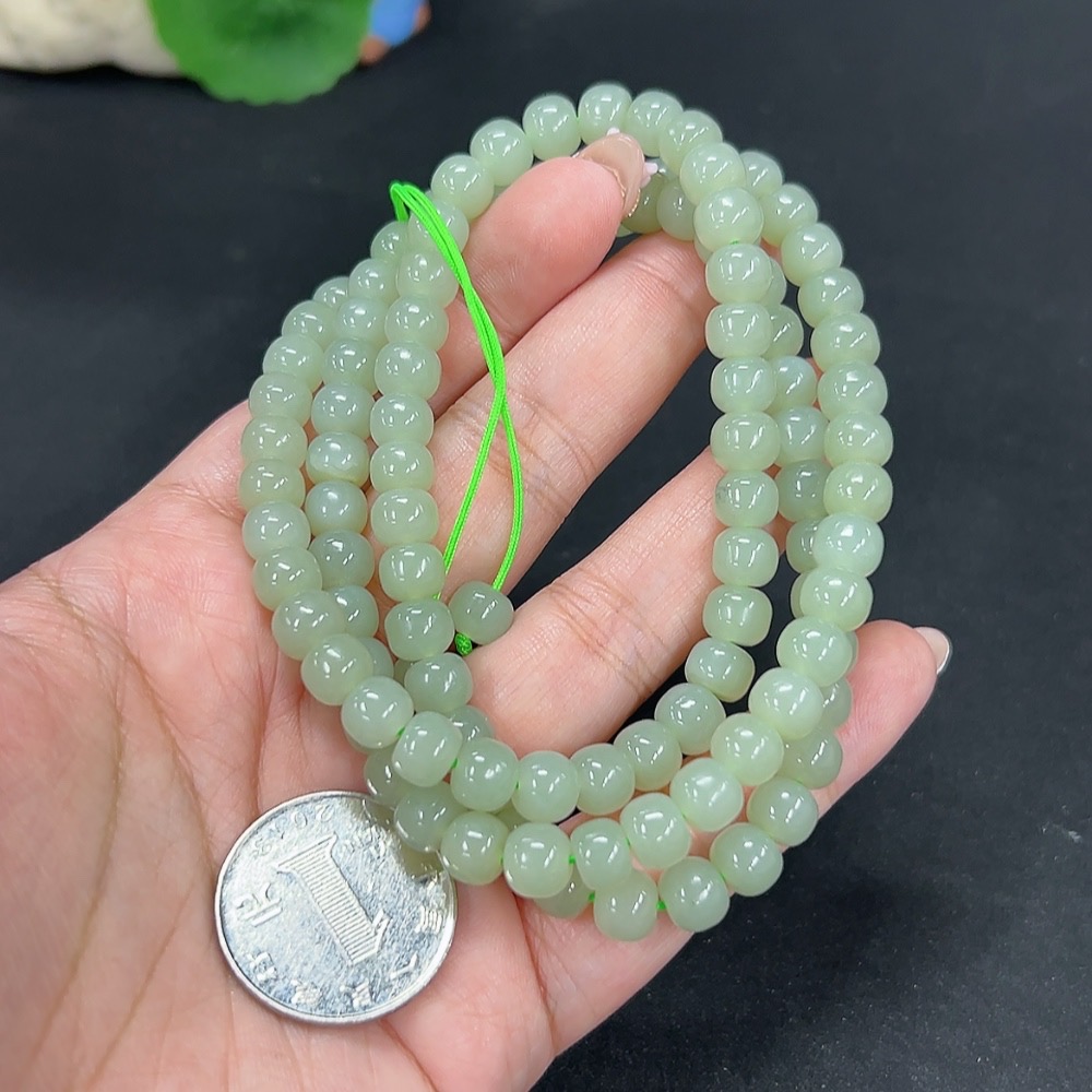 Hetian Jade Bead Necklace, Approx. 7.3mm, Total Weight Approx. 66.6g