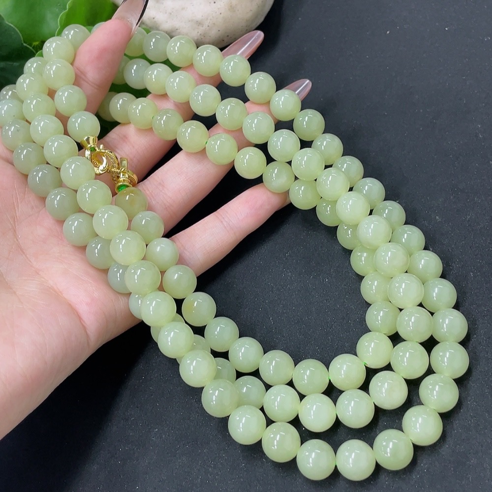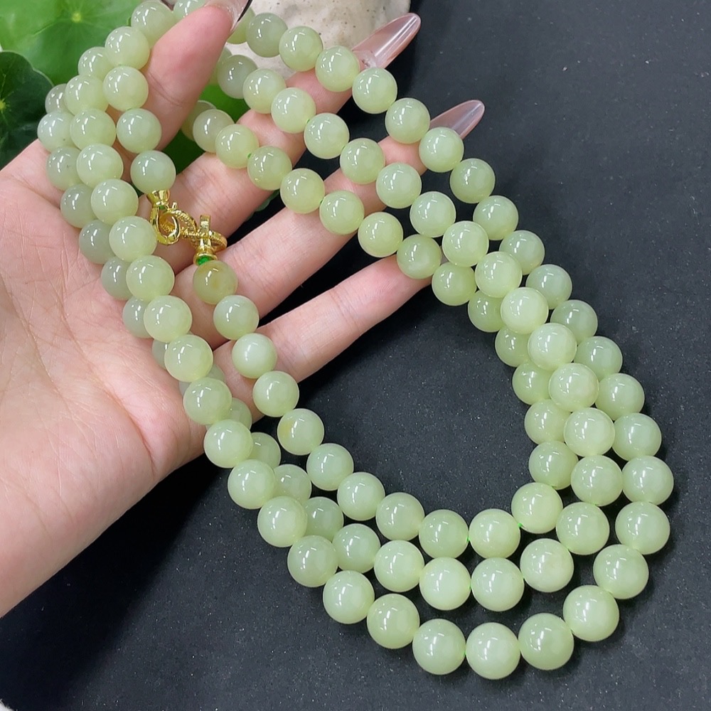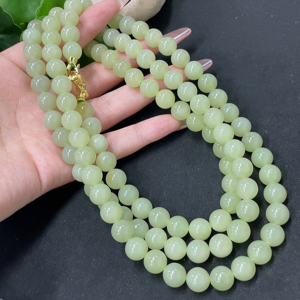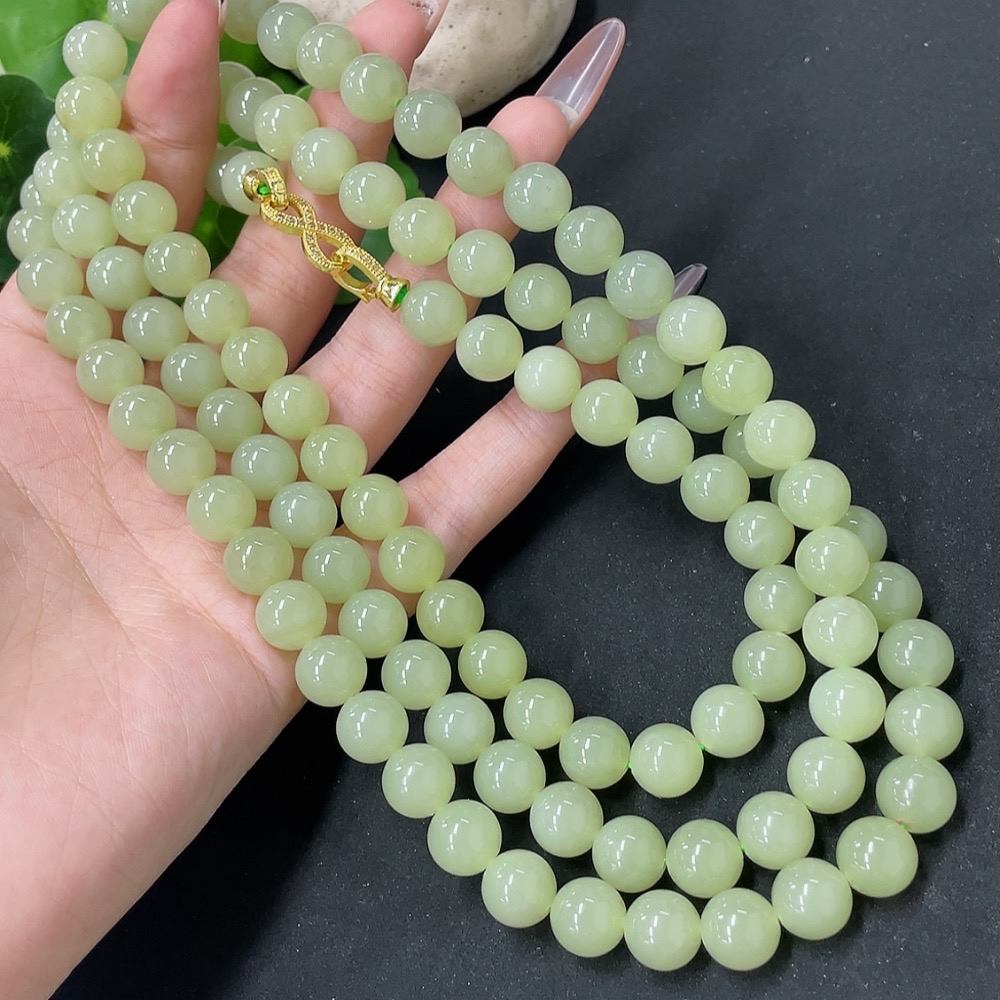 Hetian Jade Bead Necklace Non-Gold Approx. 9.6mm Total Weight Approx. 163.6g