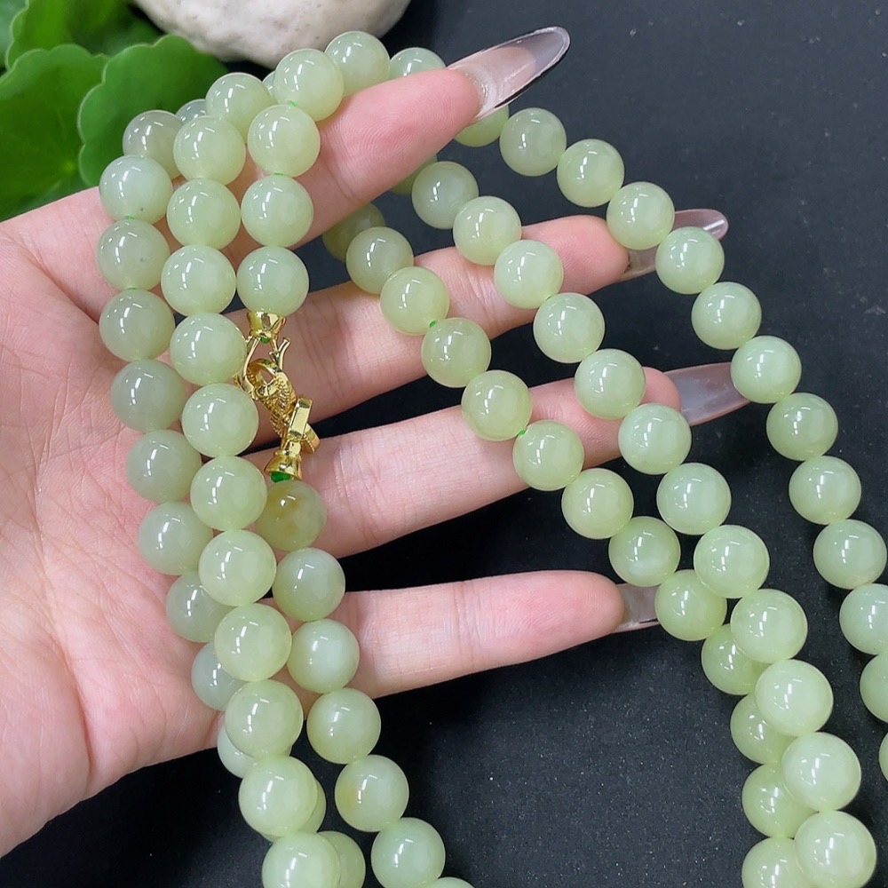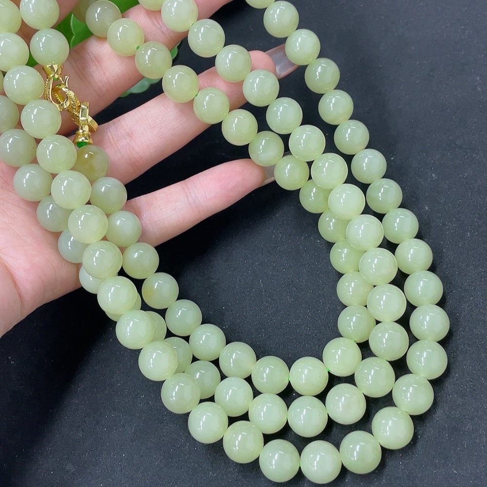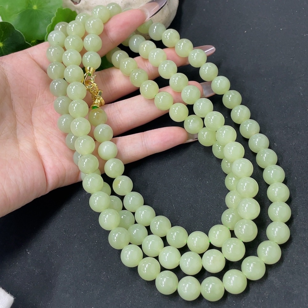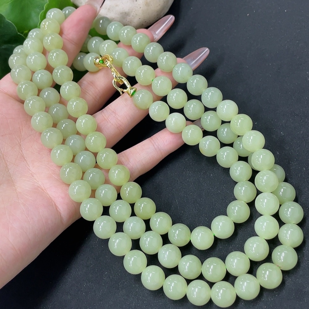 Hetian Jade Bead Necklace Non-Gold Approx. 9.6mm Total Weight Approx. 163.6g