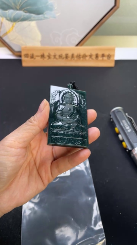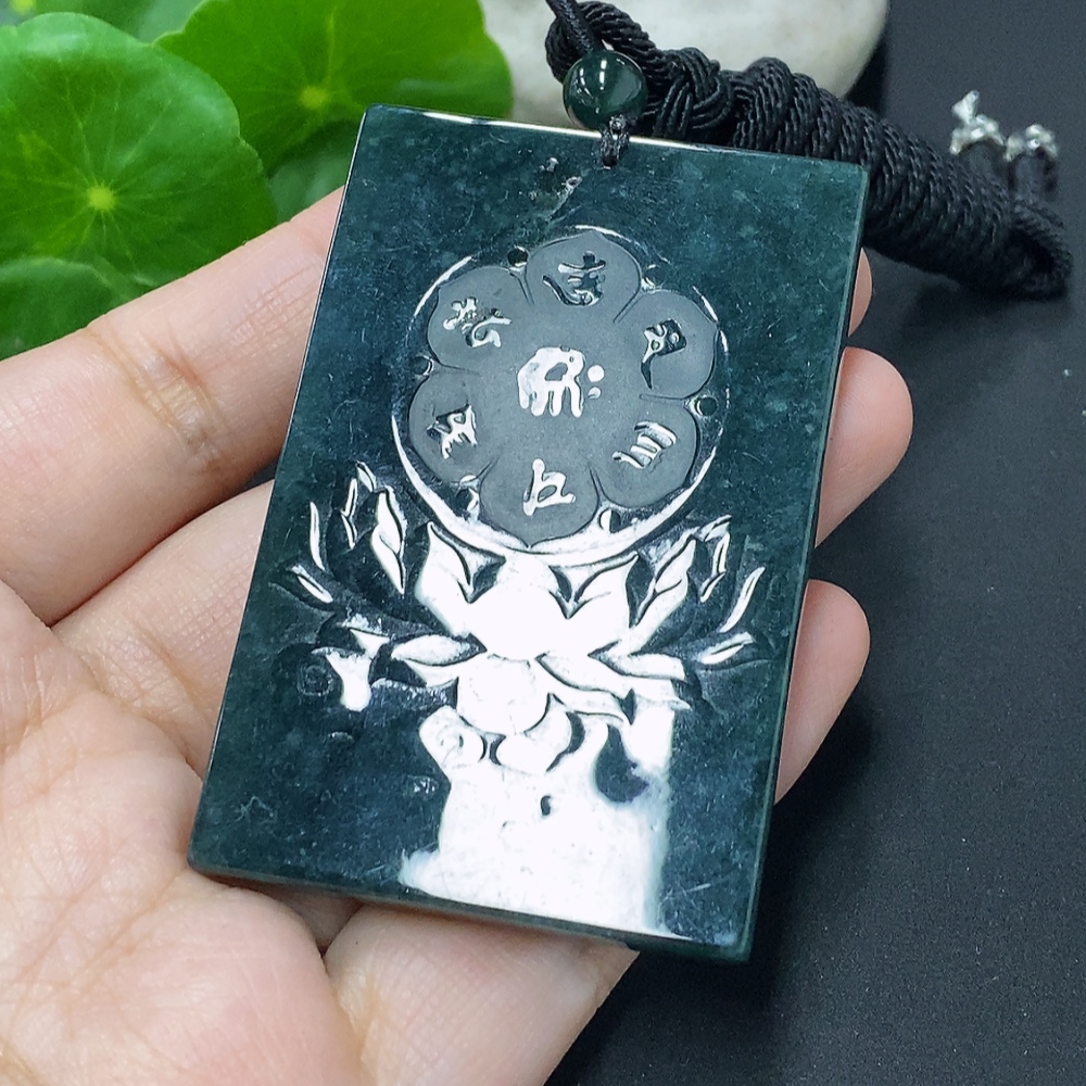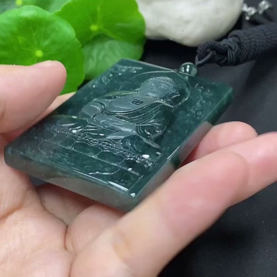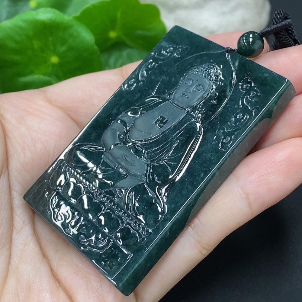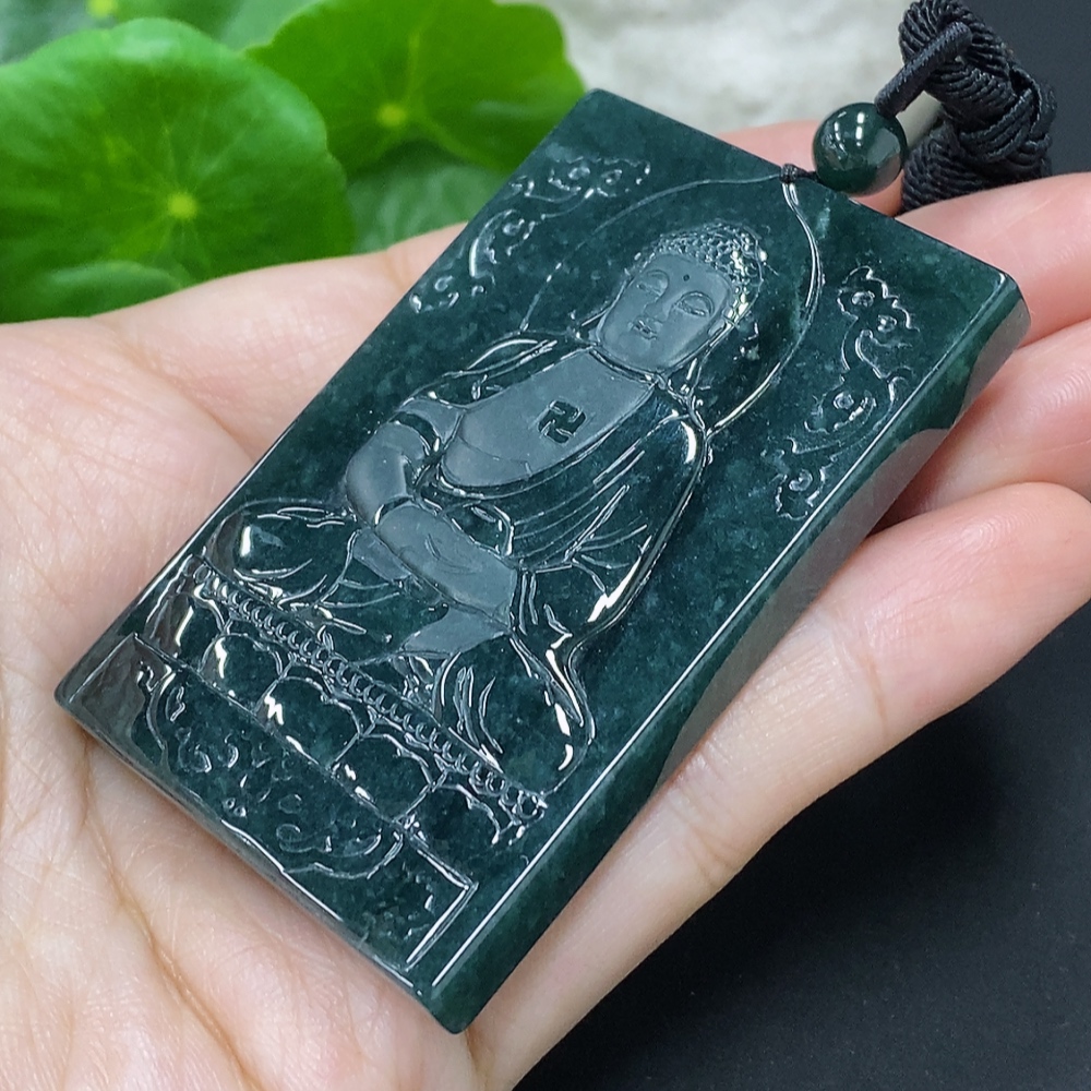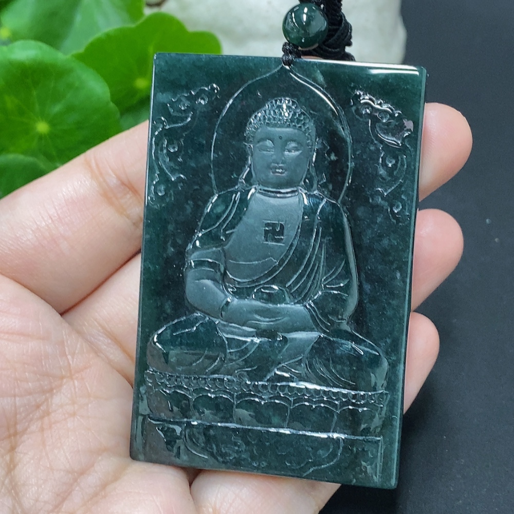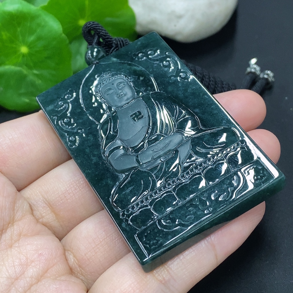 Jadeite Great Sun Tathagata Pendant, total weight including cord approximately 62.4 grams