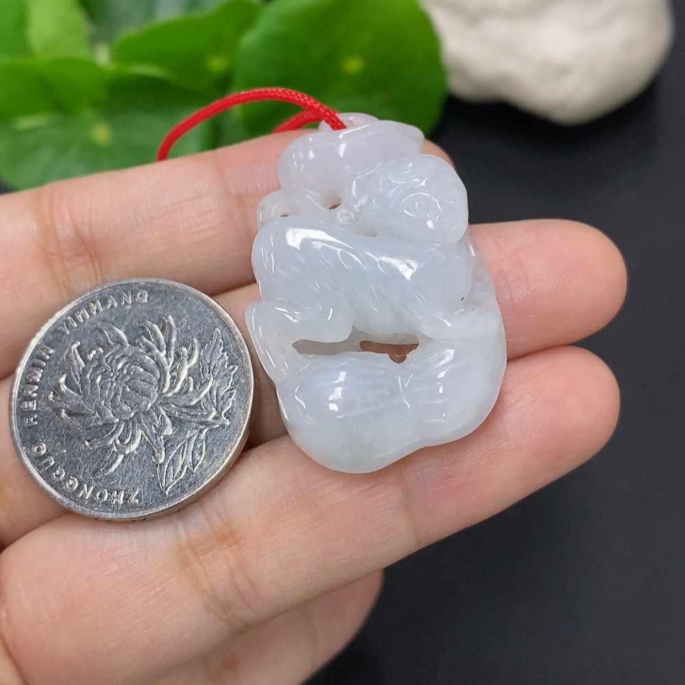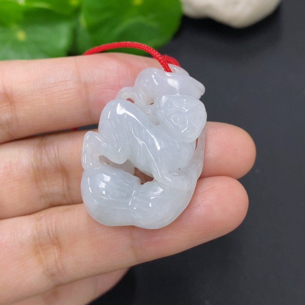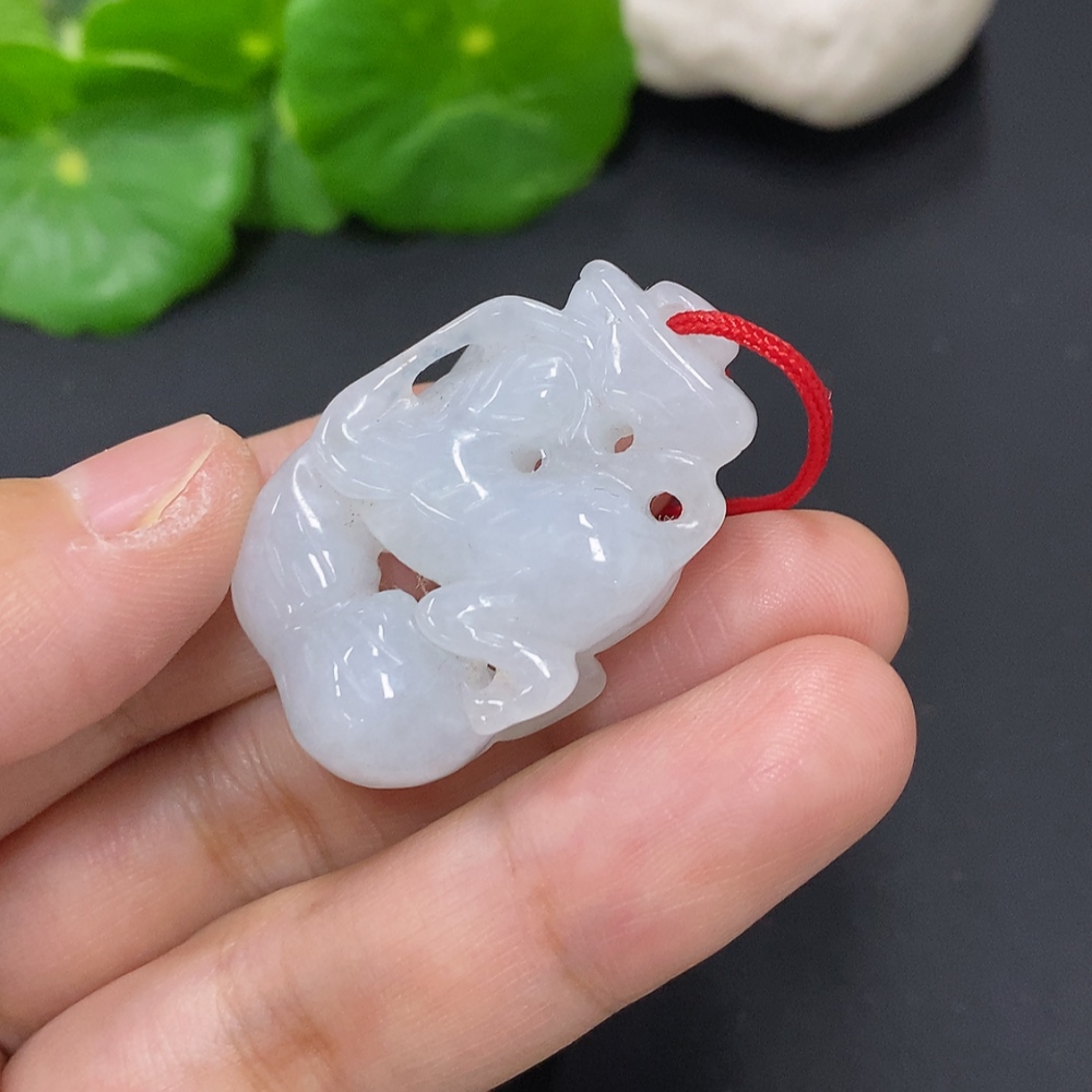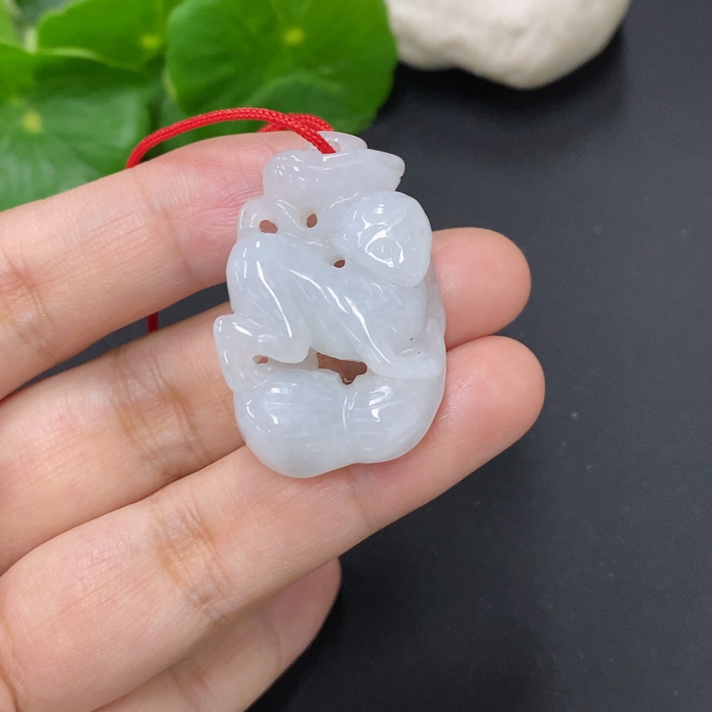 Jadeite Monkey Pendant, Total Weight Including Rope Approximately 14.6g