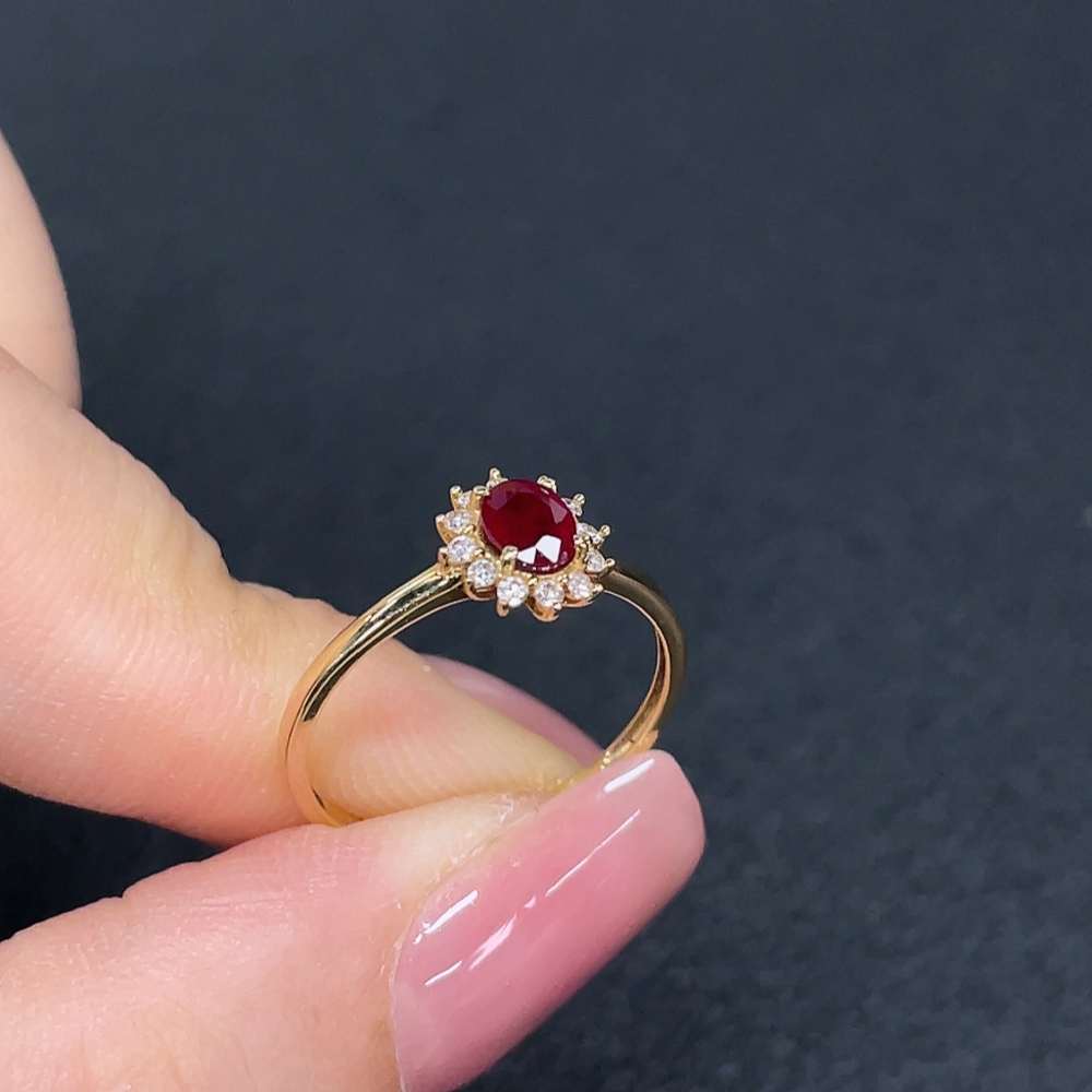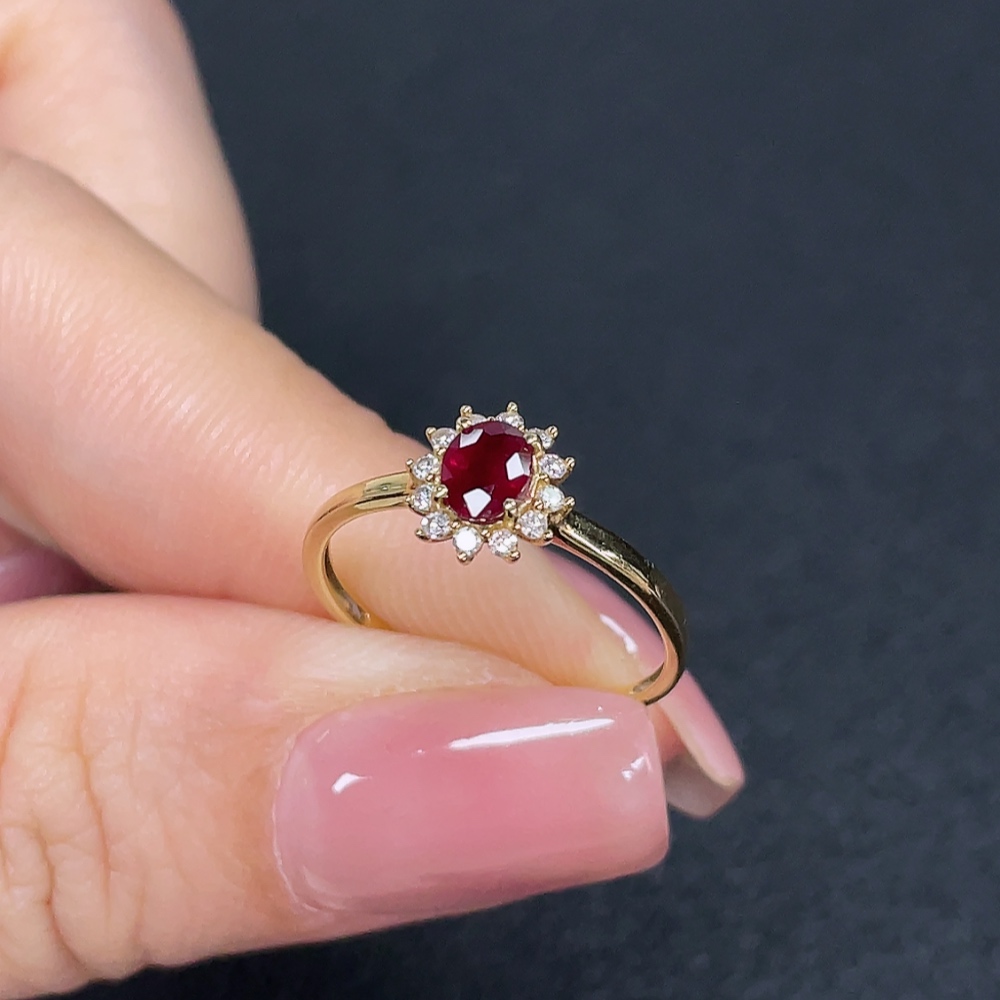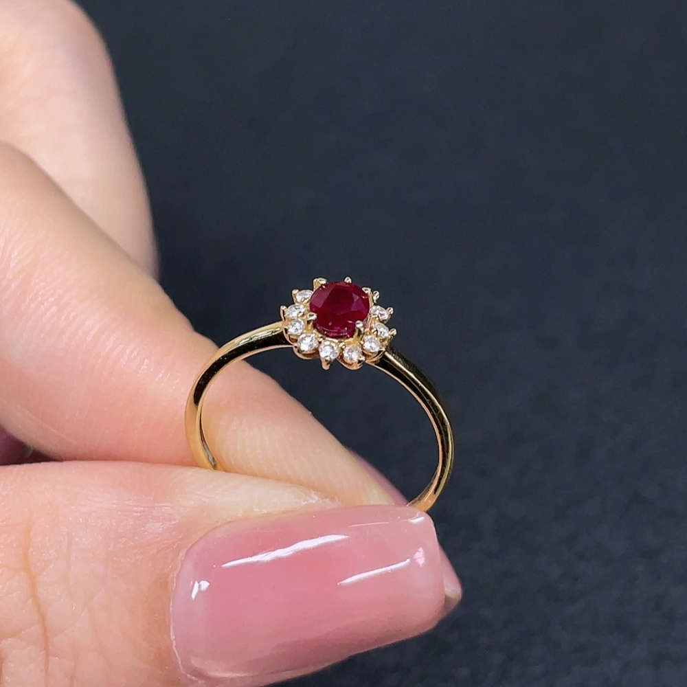 18K Ruby Ring Filled with Diamond Accents Total Weight Approx. 1.29g Size 13