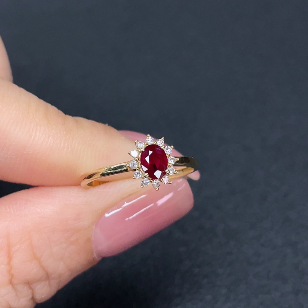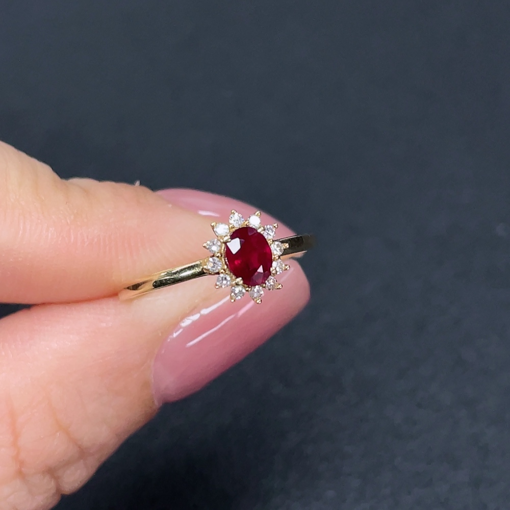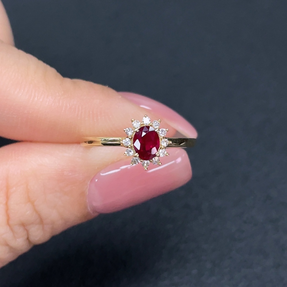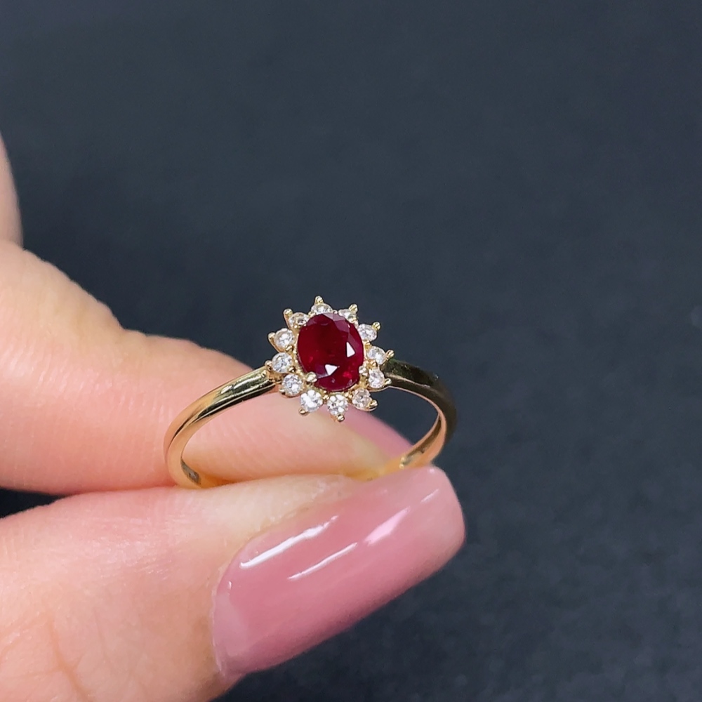 18K Ruby Ring Filled with Diamond Accents Total Weight Approx. 1.29g Size 13