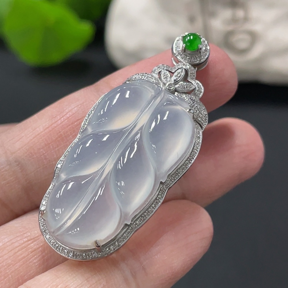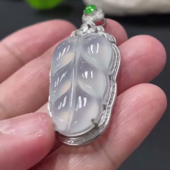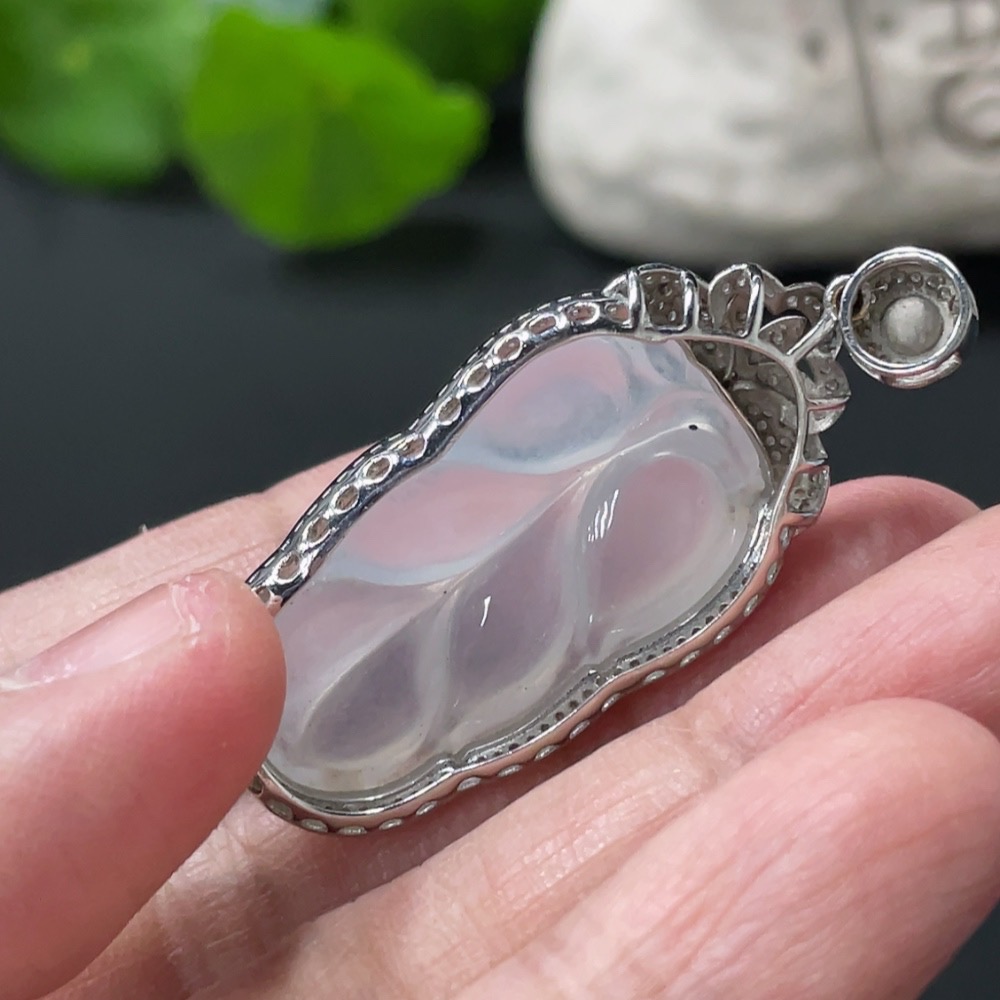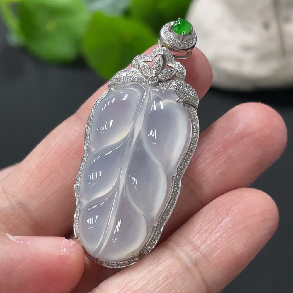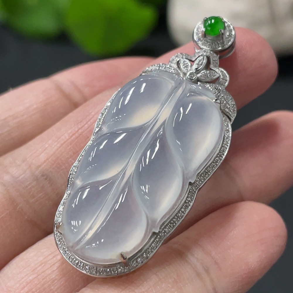 Jadeite Leaf Inlaid Pendant 18k Gold Setting with Diamond Accent Approx. 7.49g Without Cord Weight