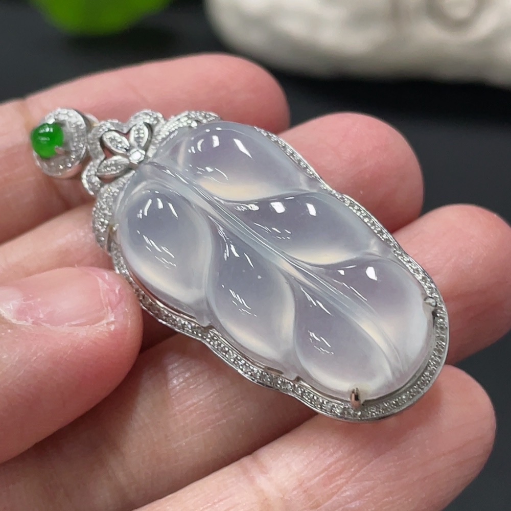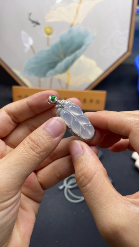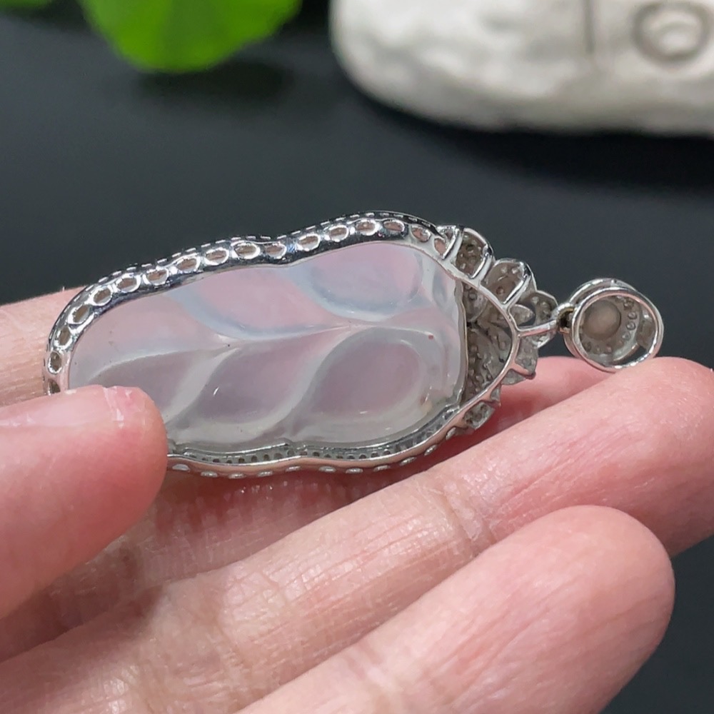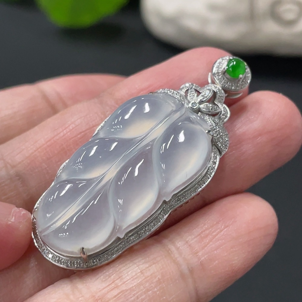 Jadeite Leaf Inlaid Pendant 18k Gold Setting with Diamond Accent Approx. 7.49g Without Cord Weight