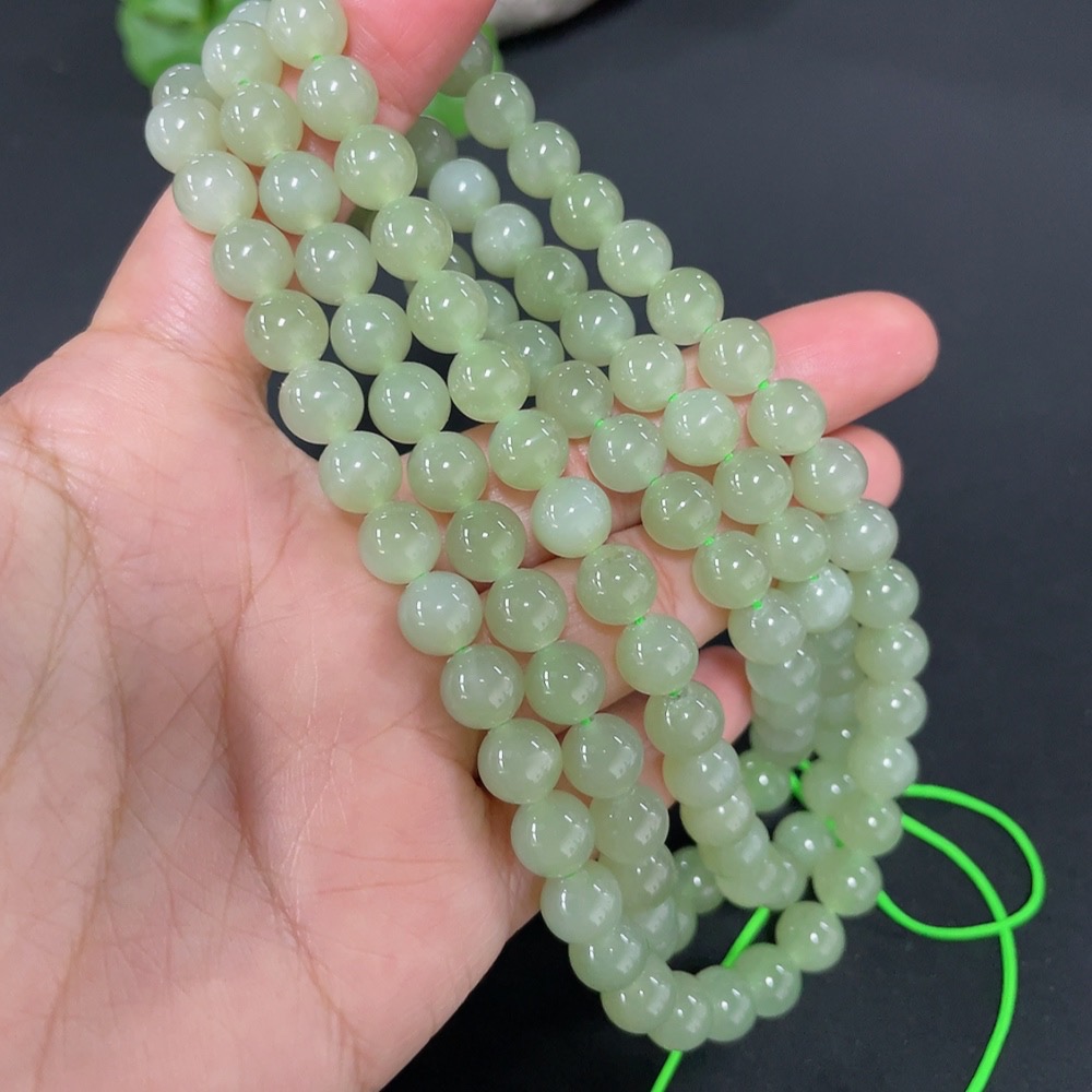 Hetian Jade Bead Necklace, Approx. 7.8mm, Total Weight Approx. 81.8g