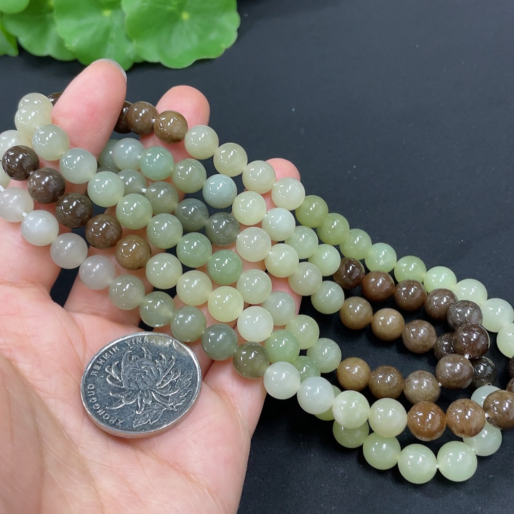 Hetian Jade Bead Necklace, approx. 7.8mm, total weight approx. 83.1g