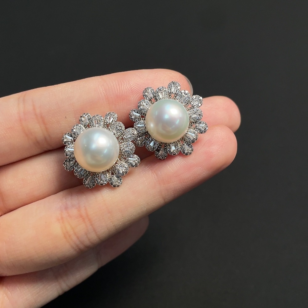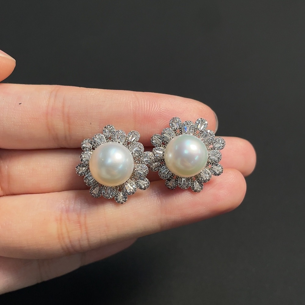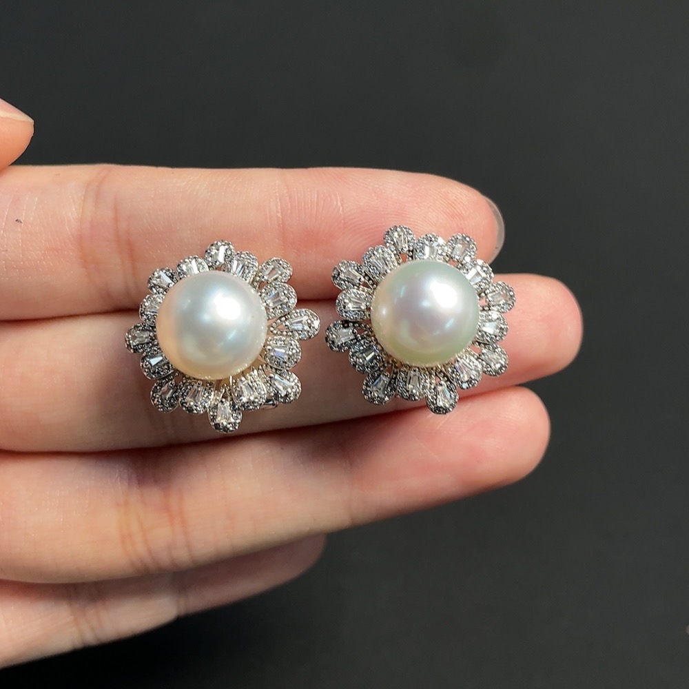 Seawater pearl inlaid earrings, non-gold setting, size approx. 10.9mm, total weight approx. 9.17g
